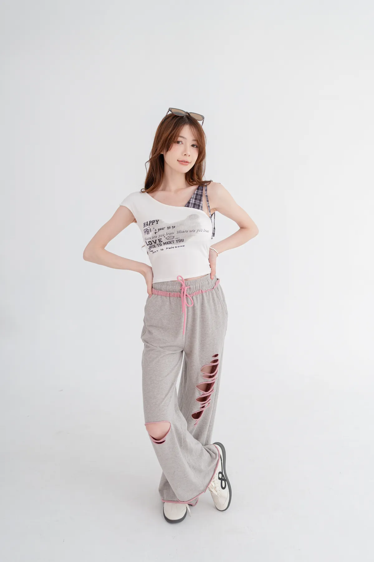 *領口採用斜切式的不規則設計,展現微露鎖骨的精緻感