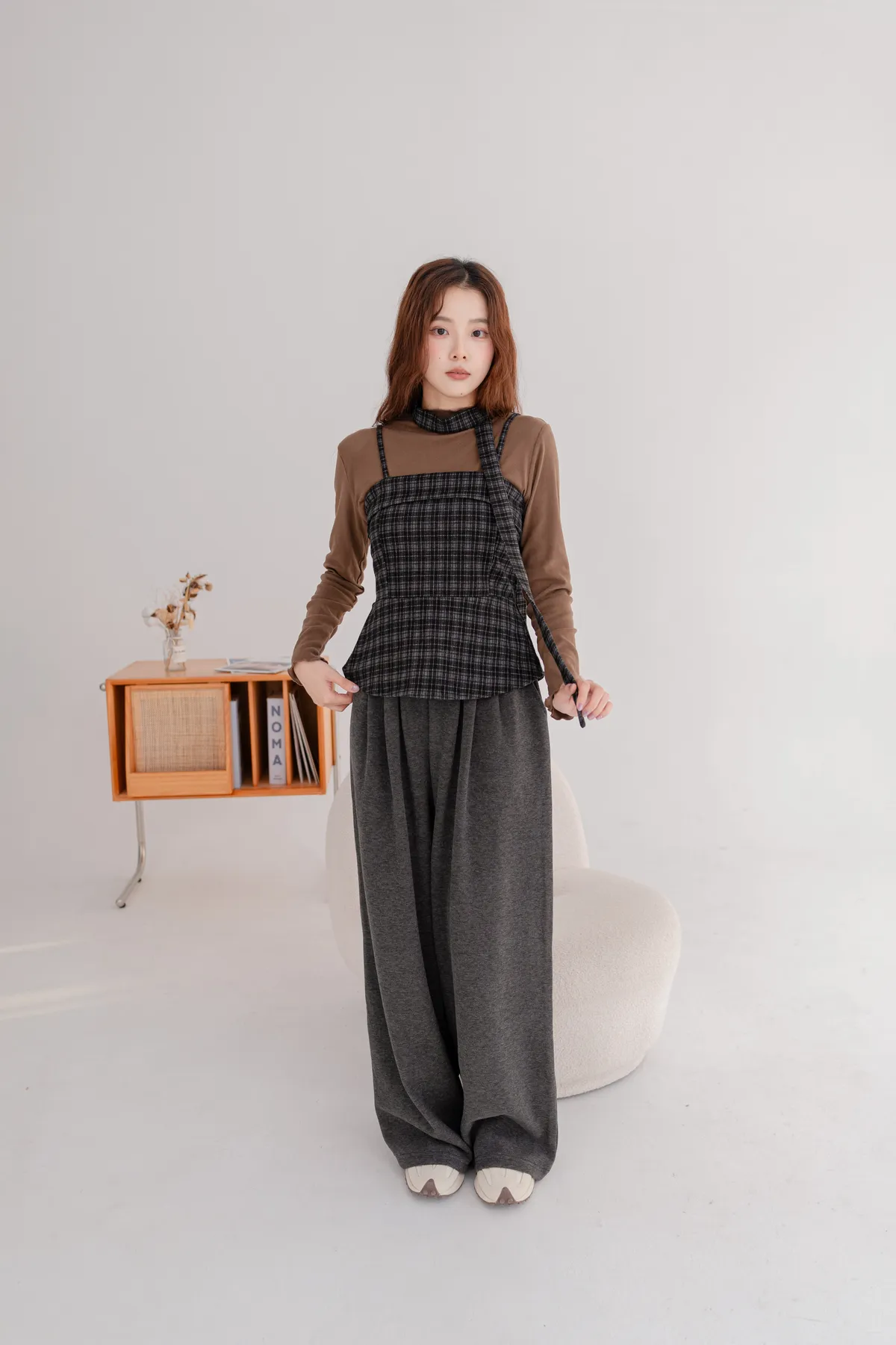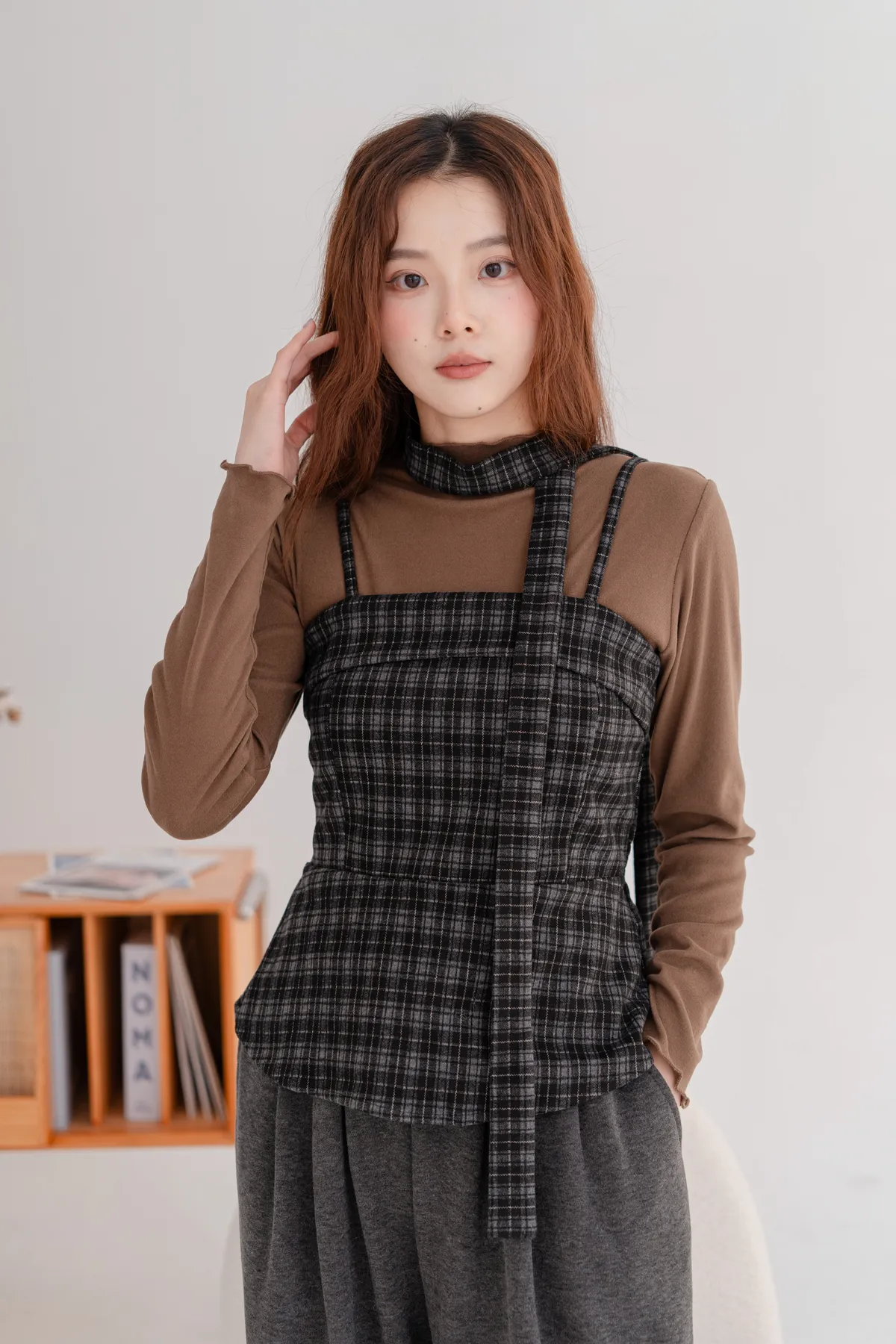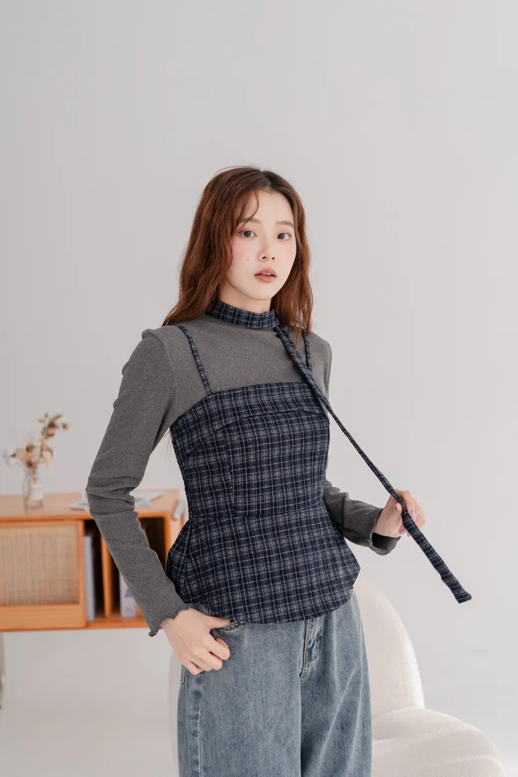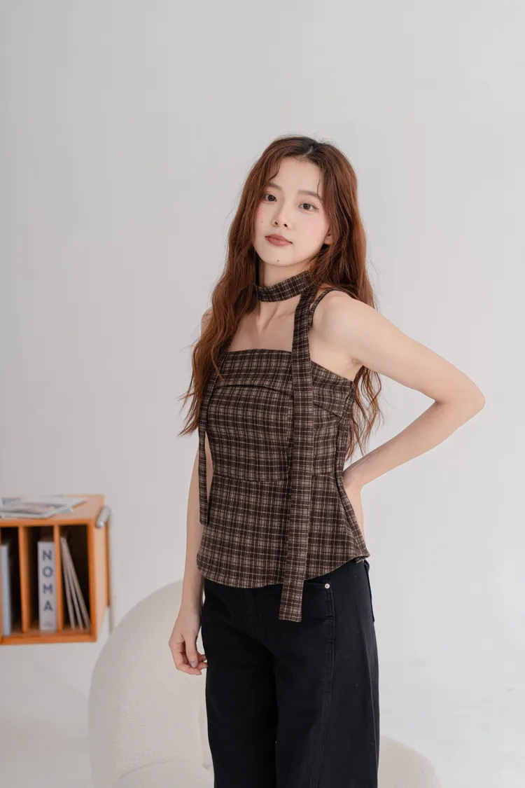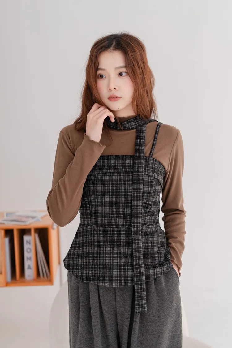 毛料格紋細肩造型背心