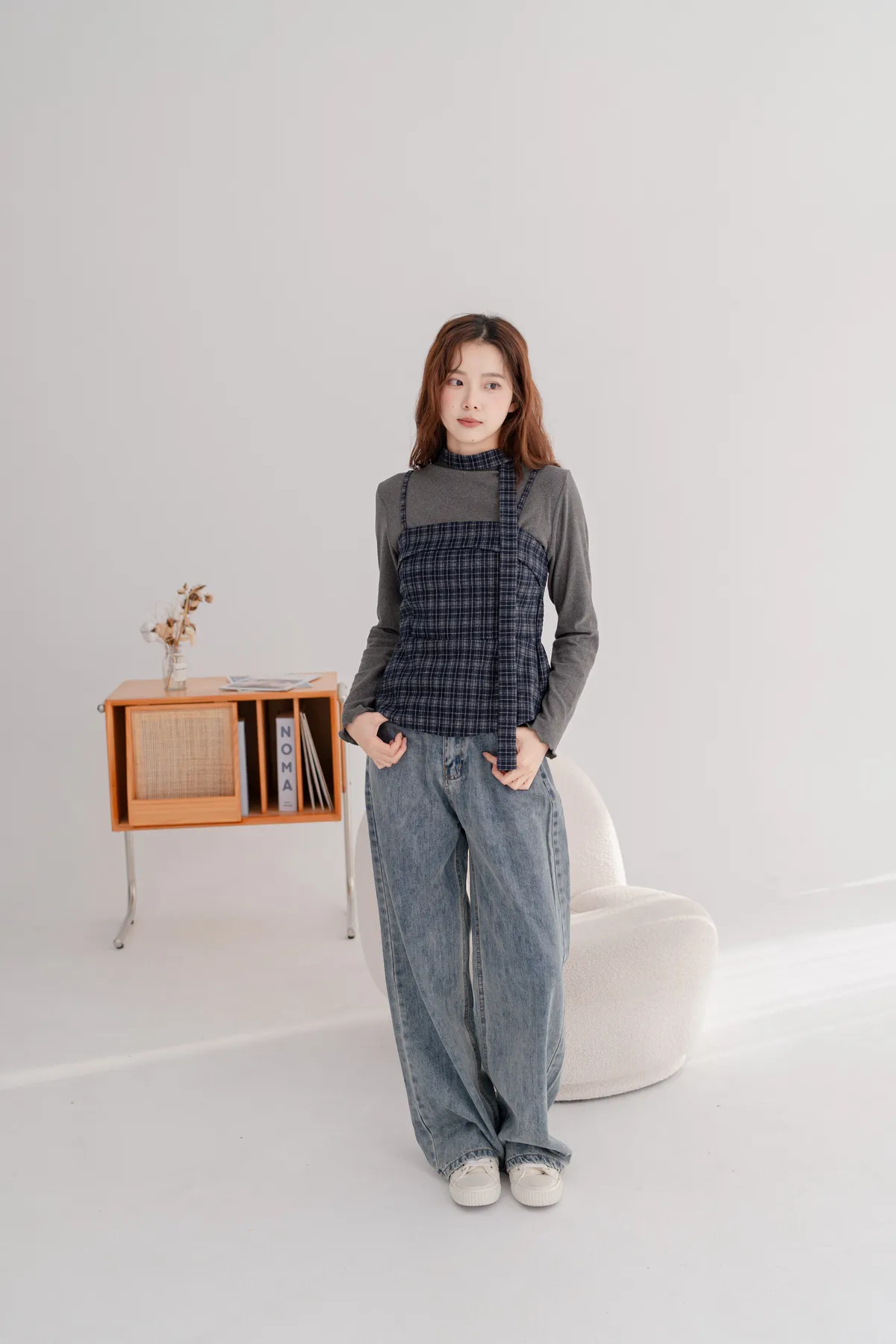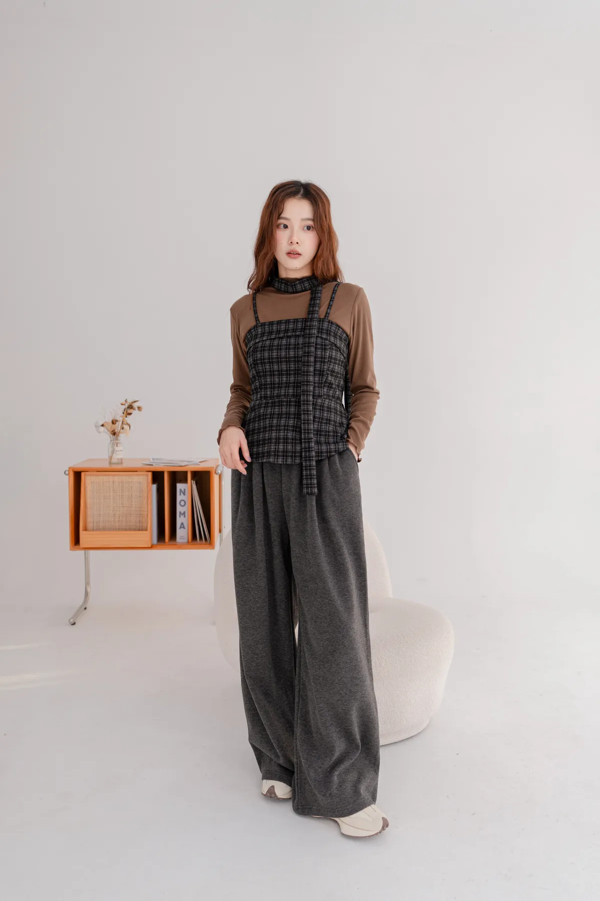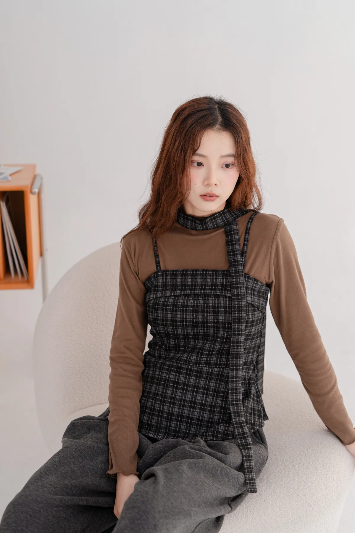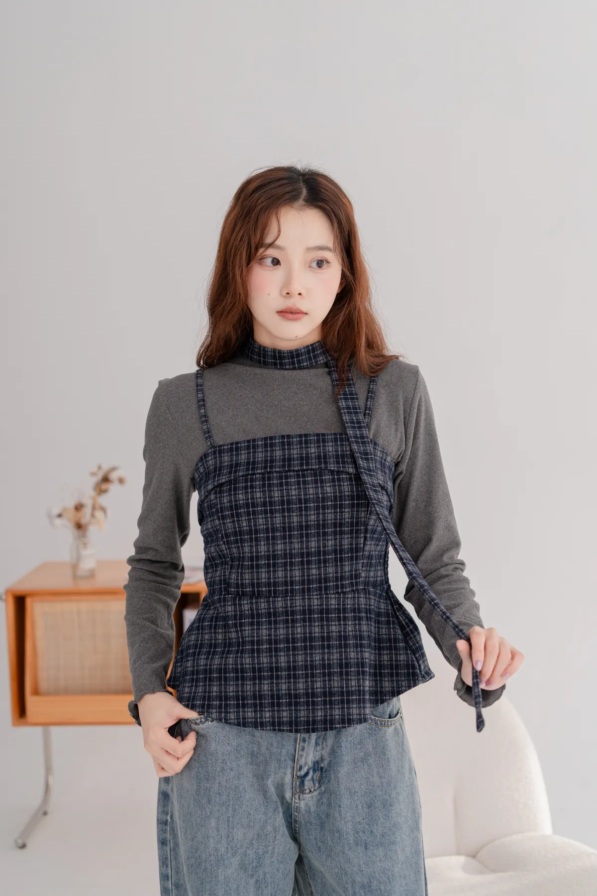 毛料格紋細肩造型背心
