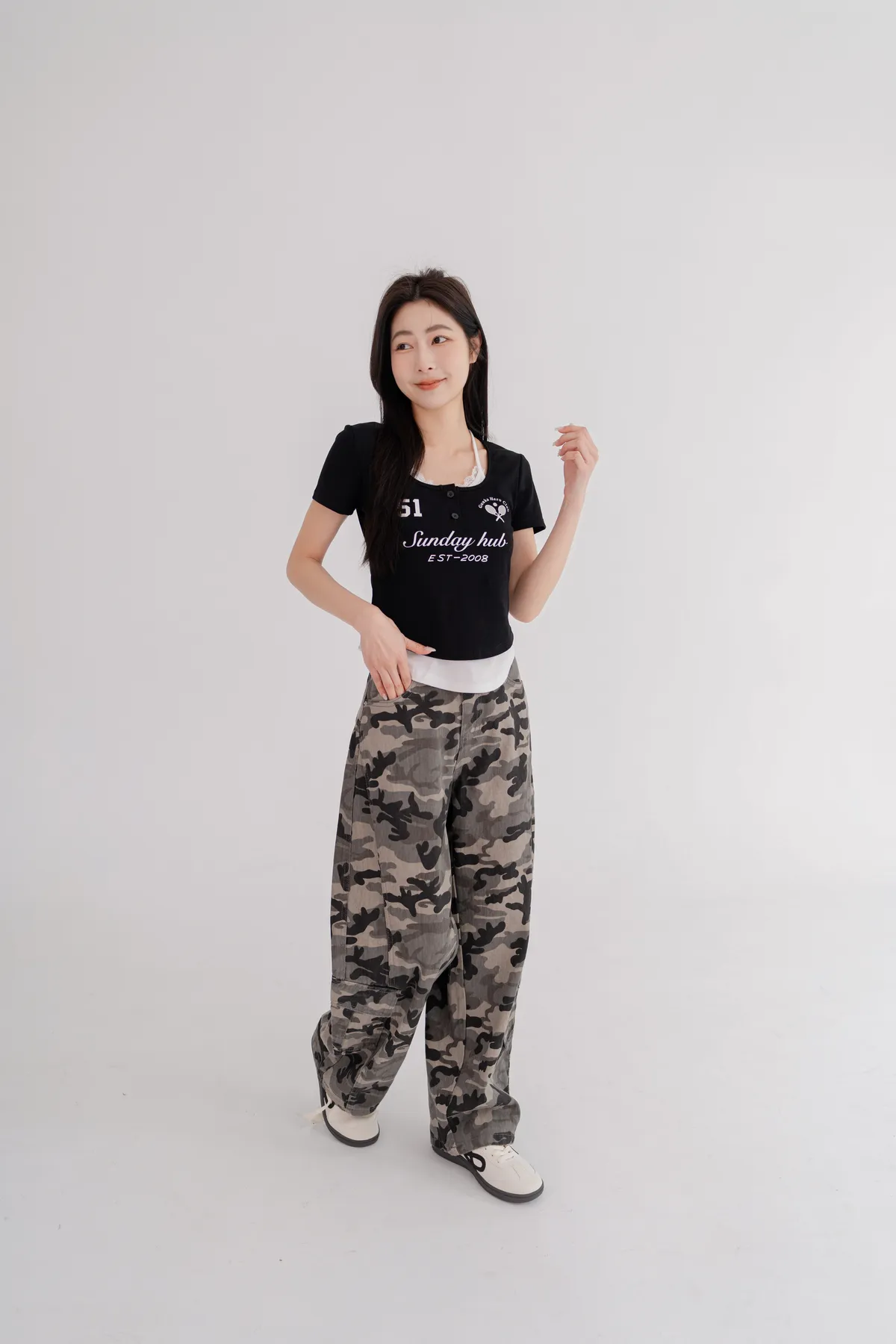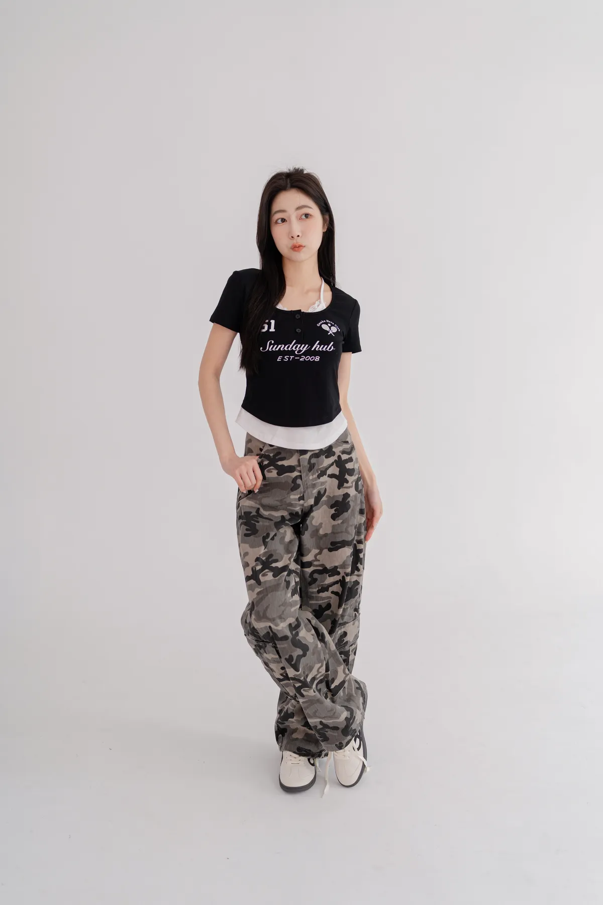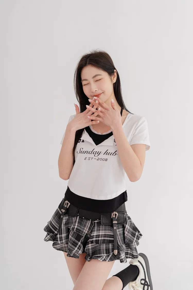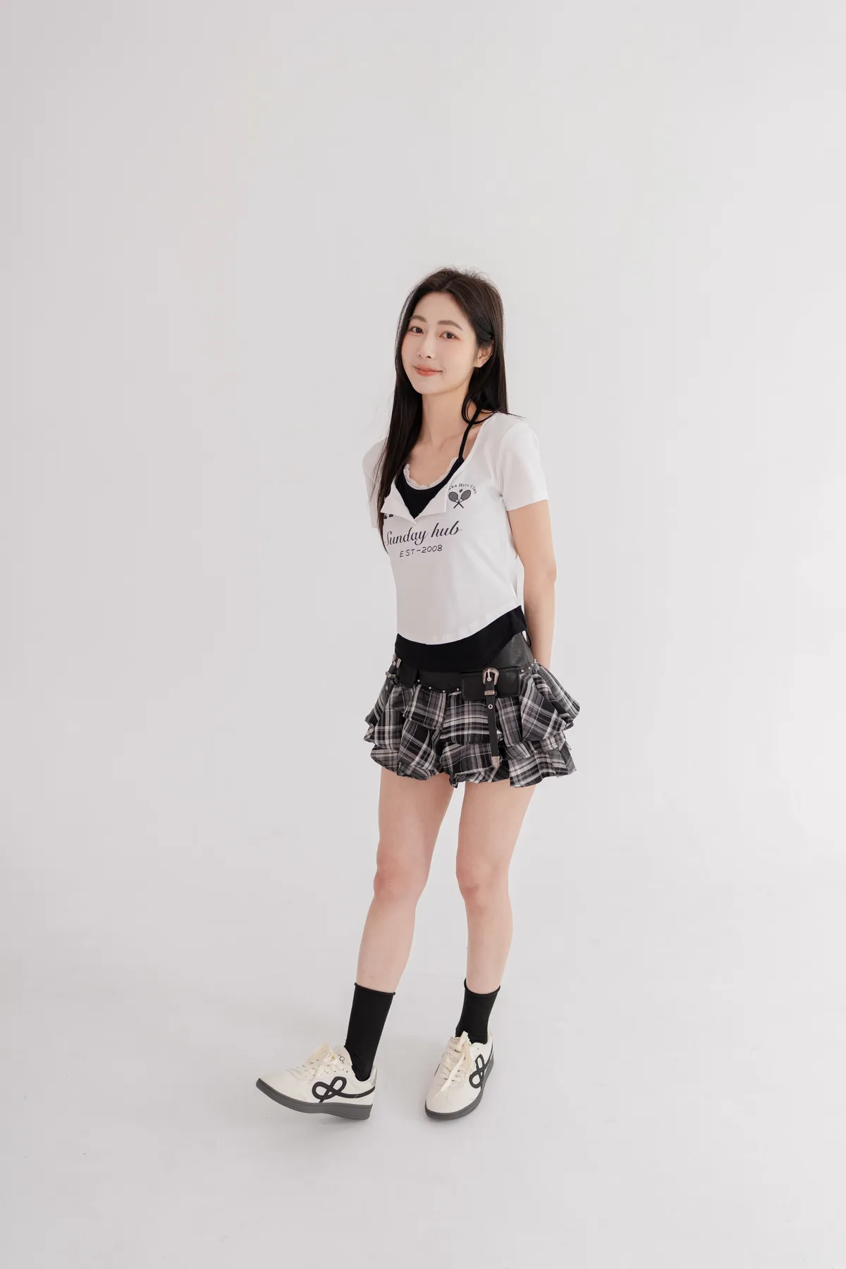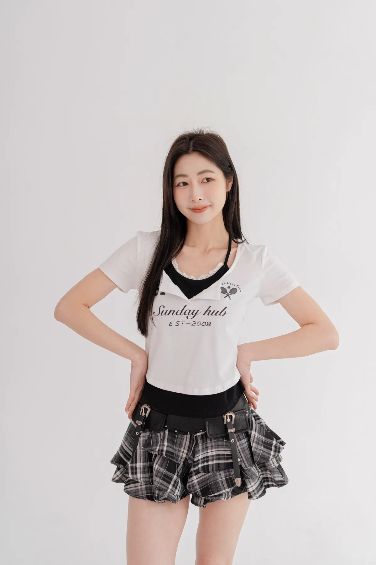 *主題學院印花: 印有「Sunday hub」字母與網球拍圖樣,強化美式復古校園氛圍。