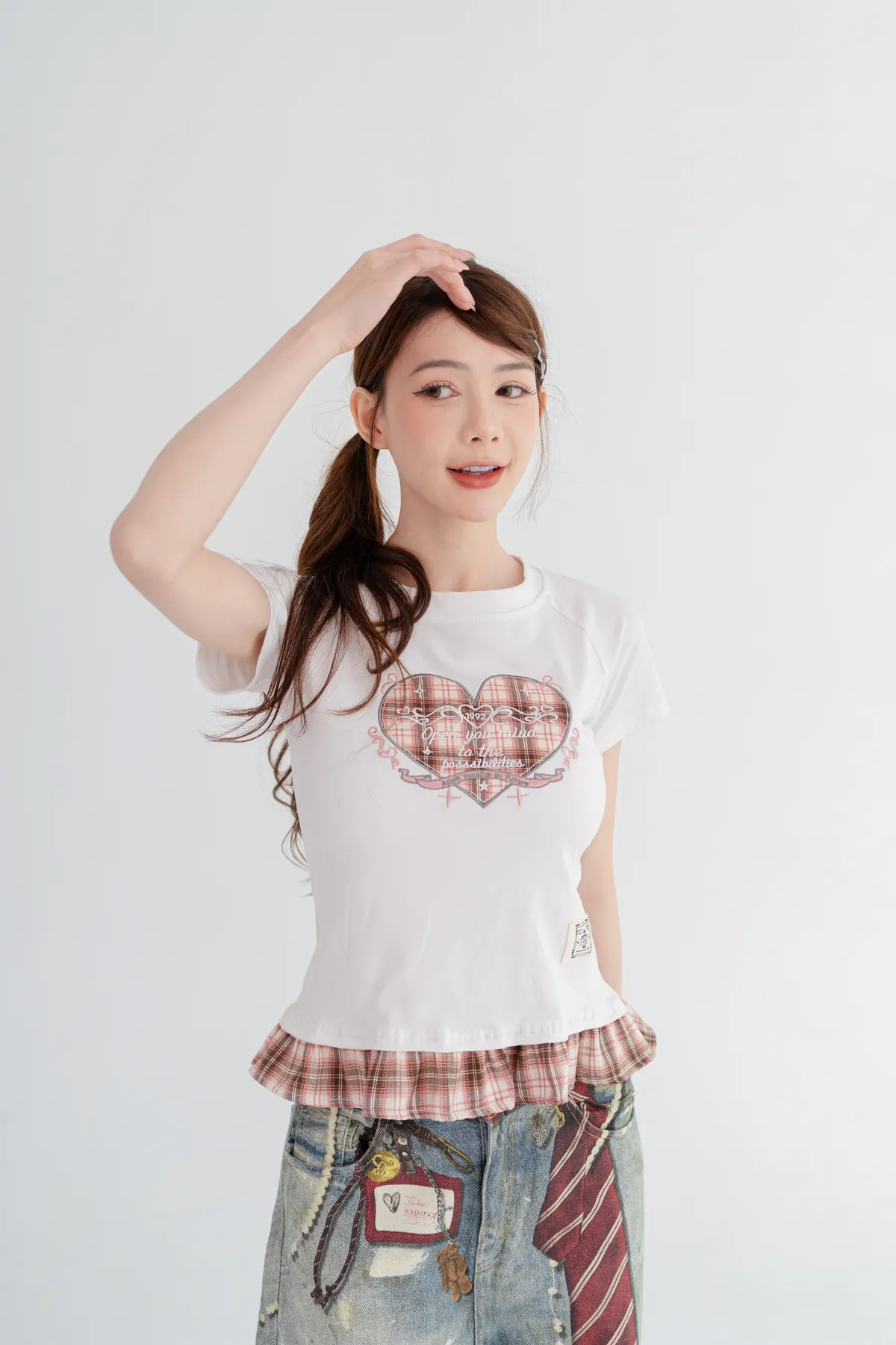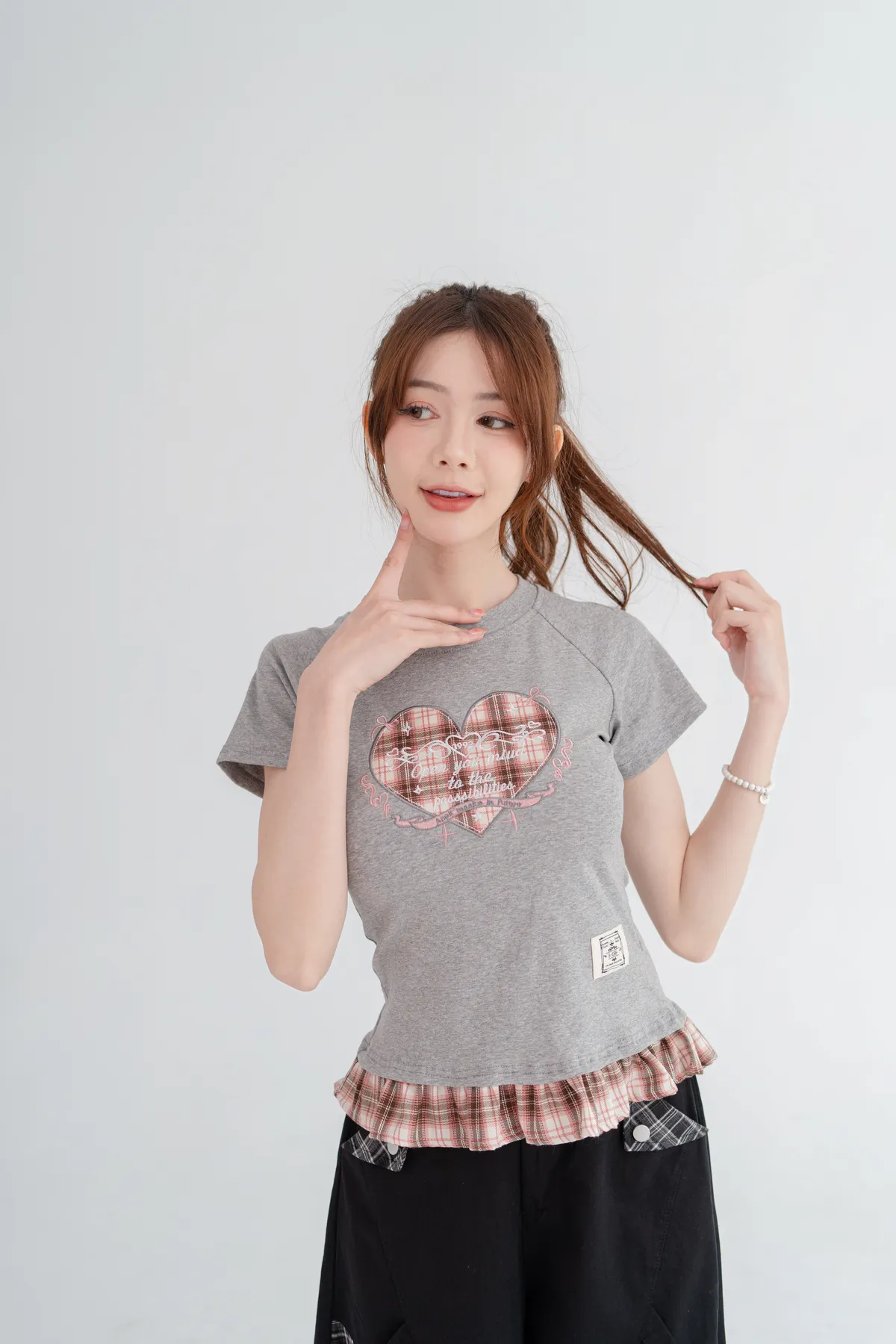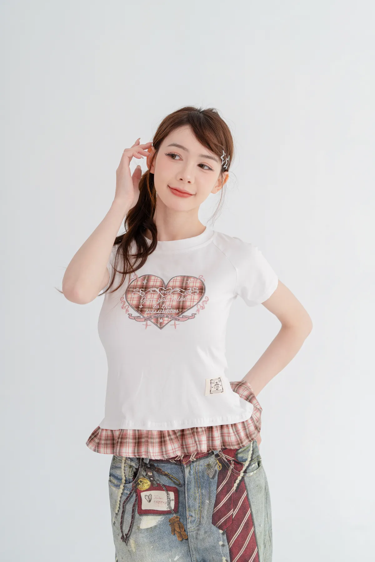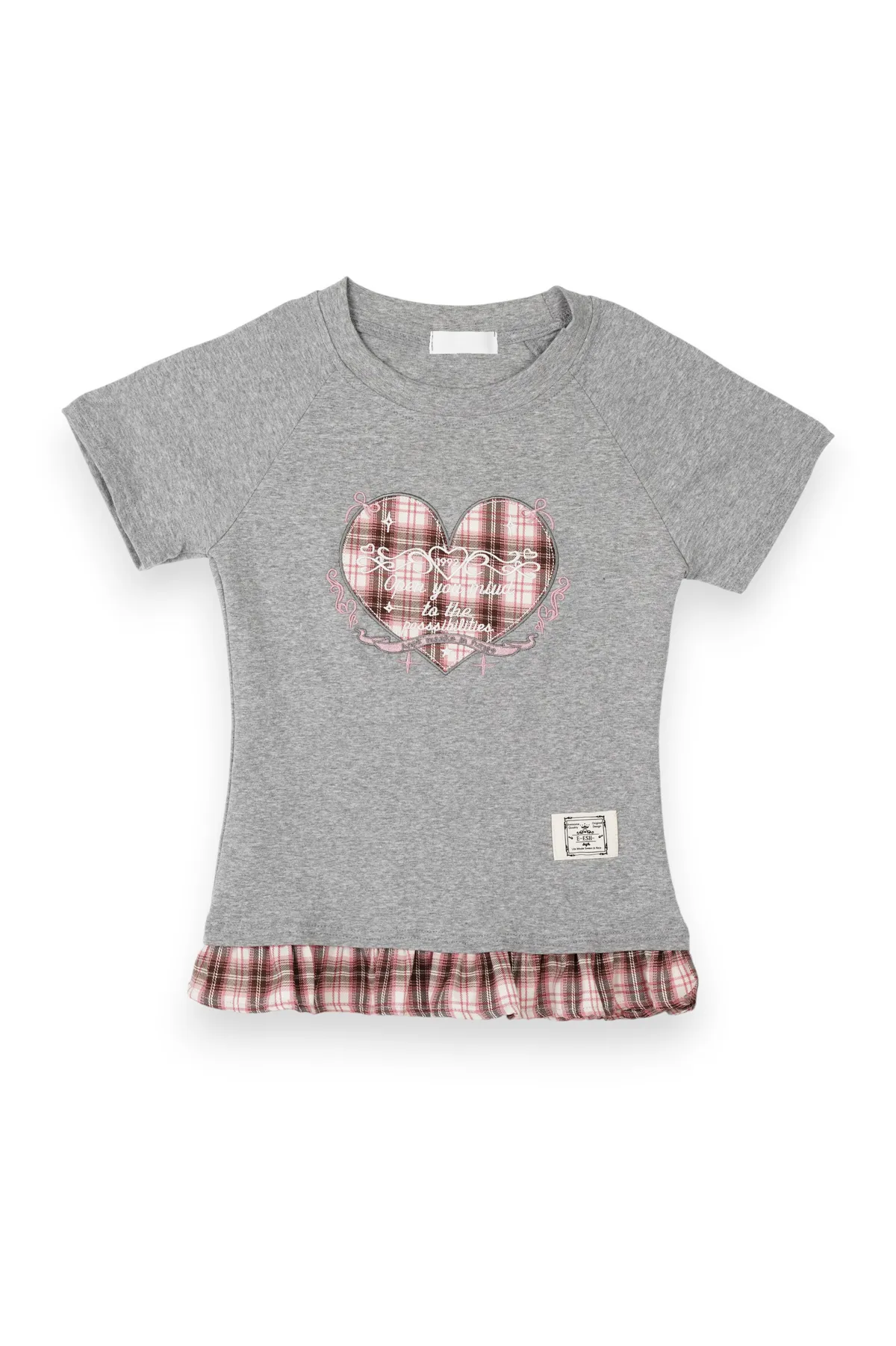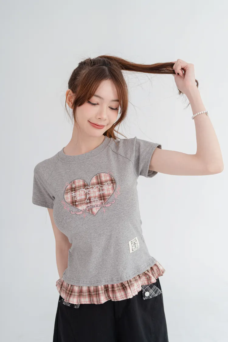 格紋愛心荷葉邊T恤