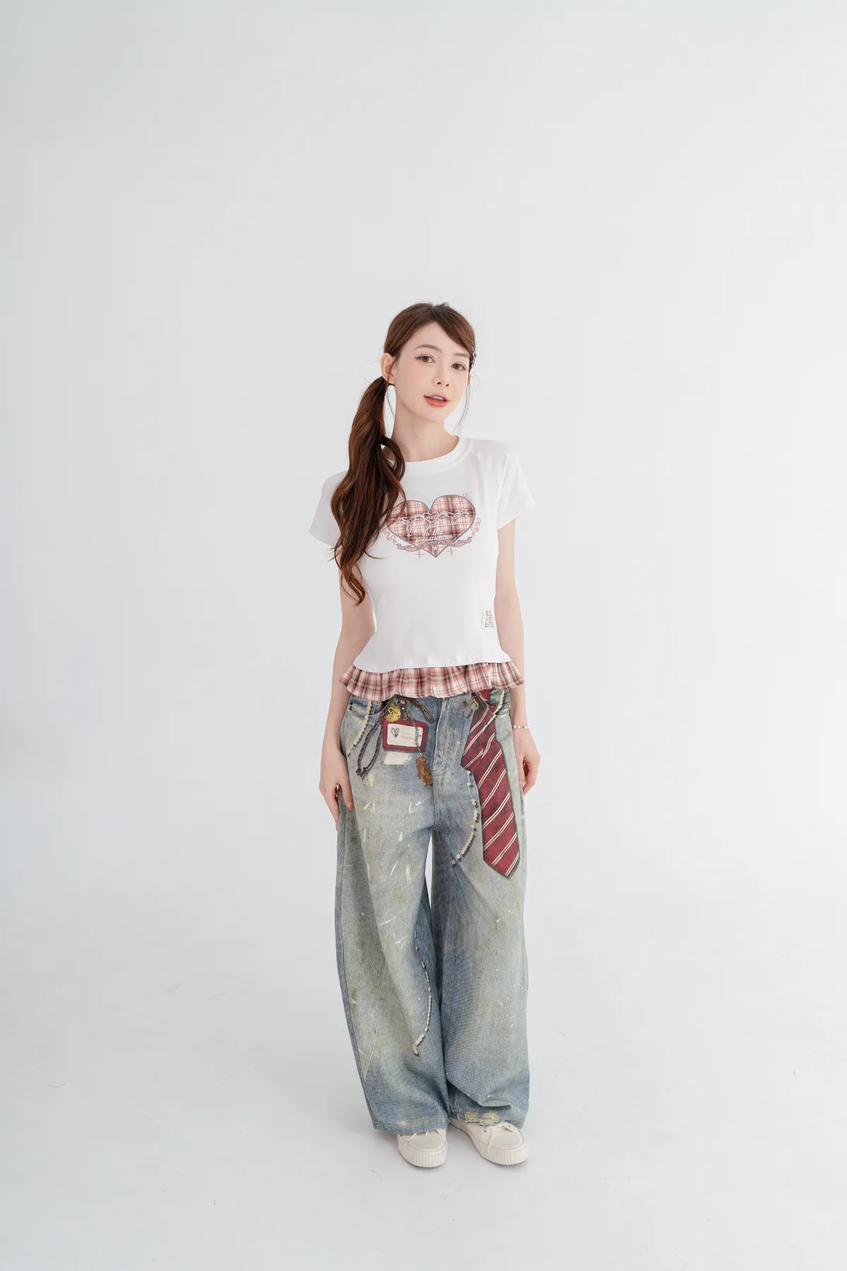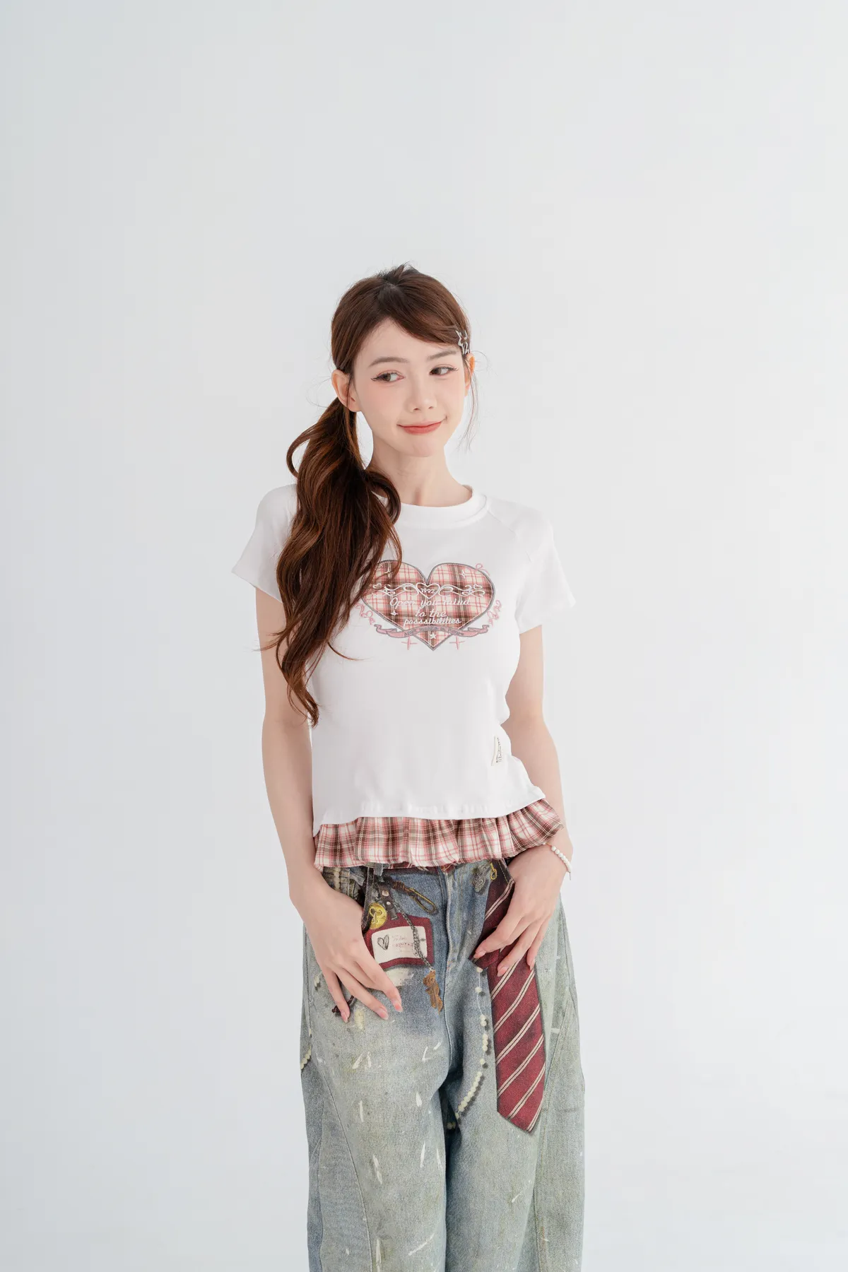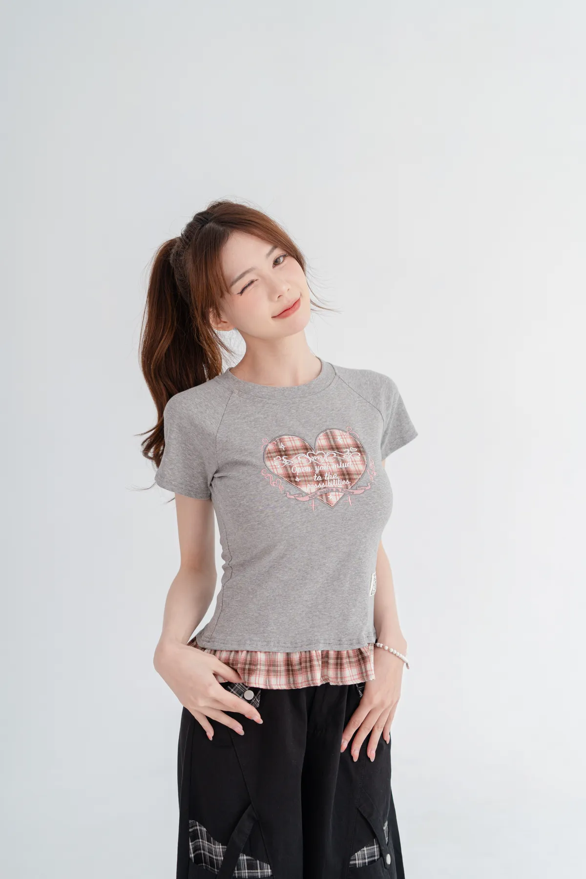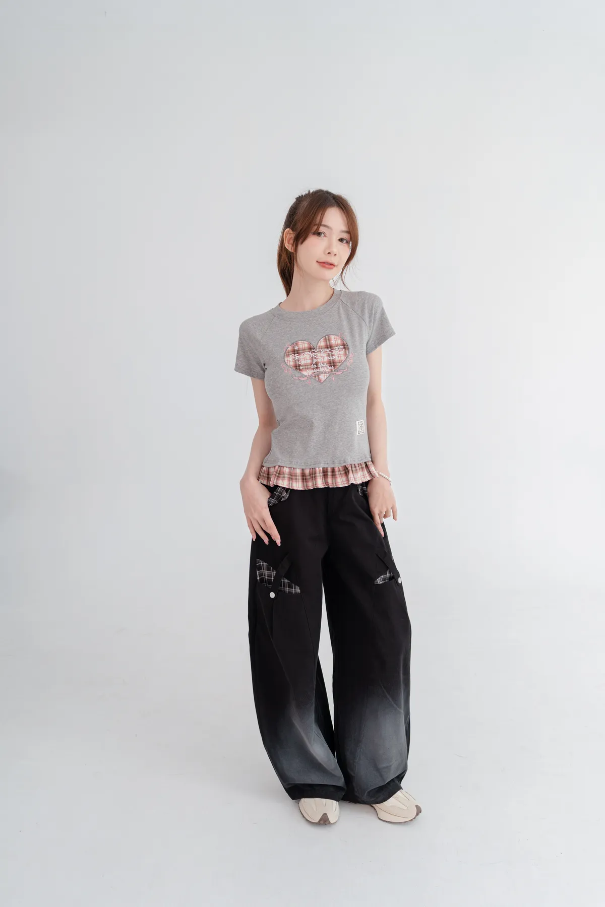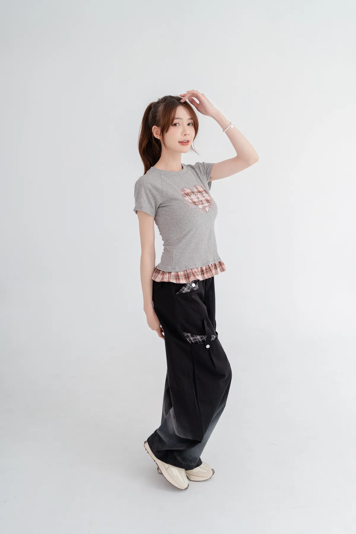 格紋愛心荷葉邊T恤