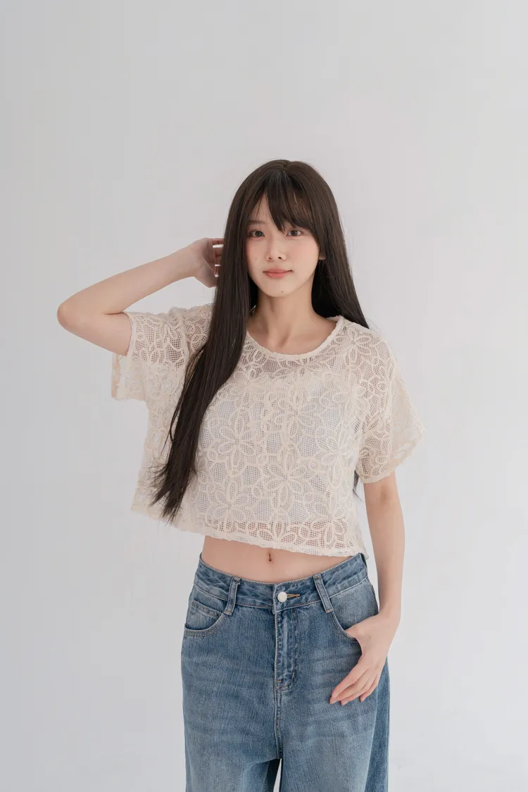 法式鏤空雕花透膚上衣