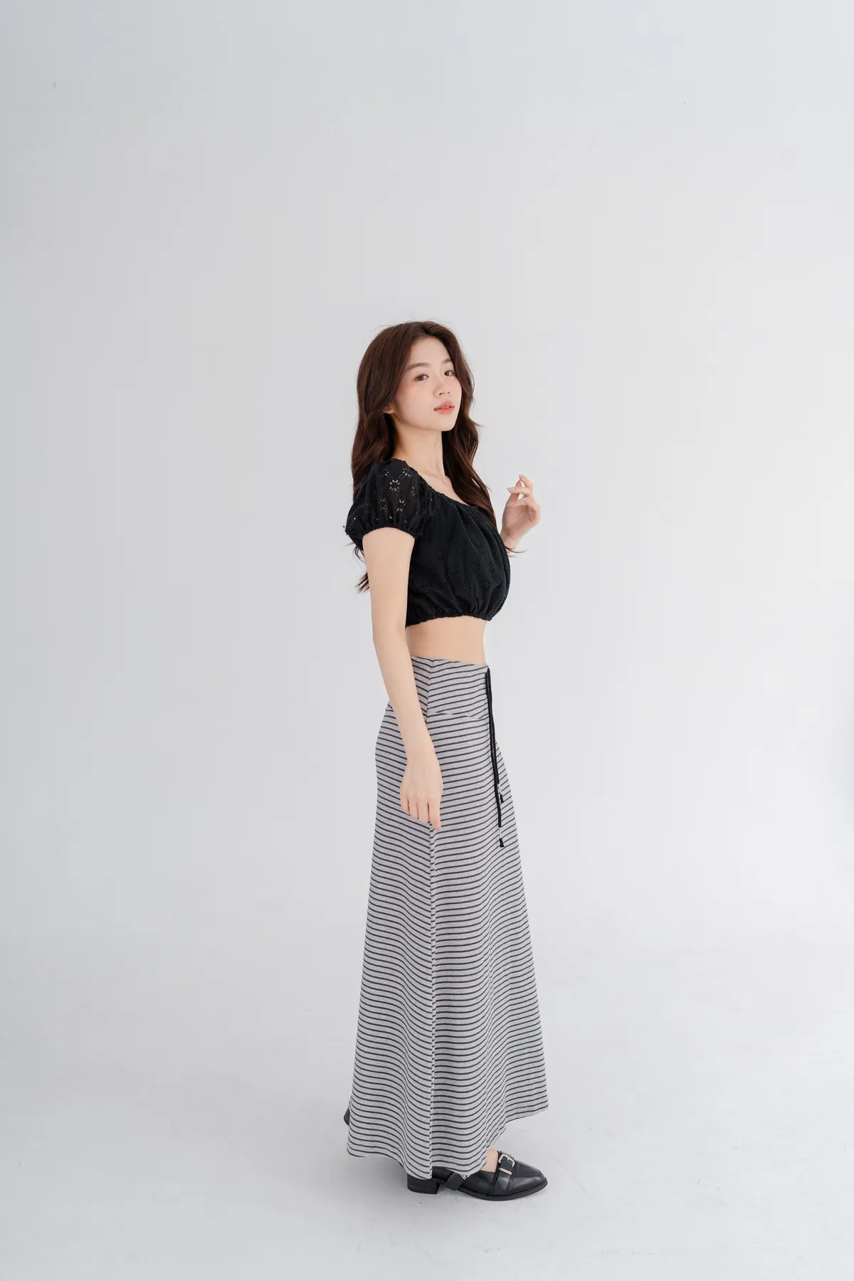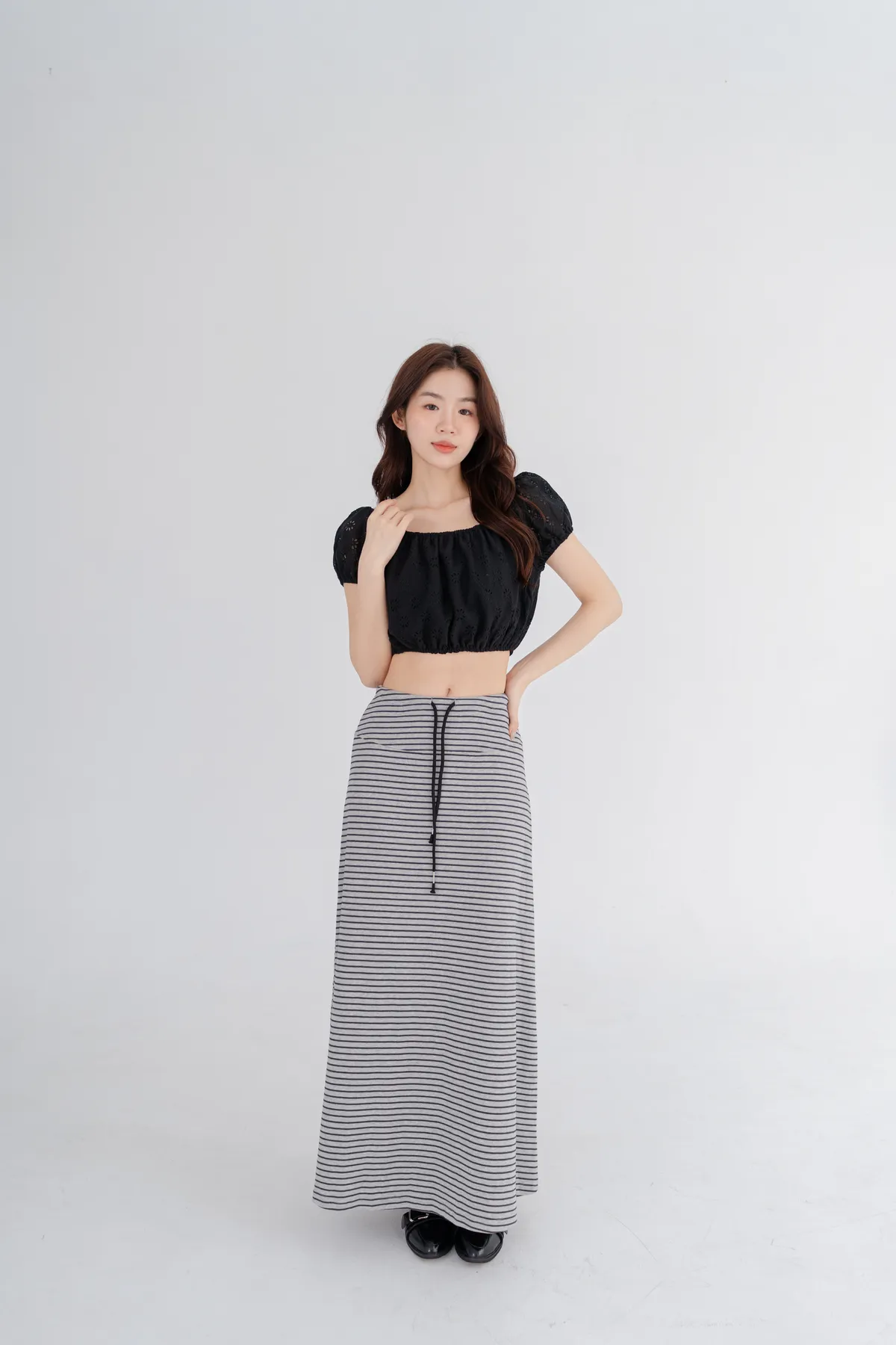 *下擺選用彈性束口,能自然固定在腰部最纖細的位置,穿出自信腰線