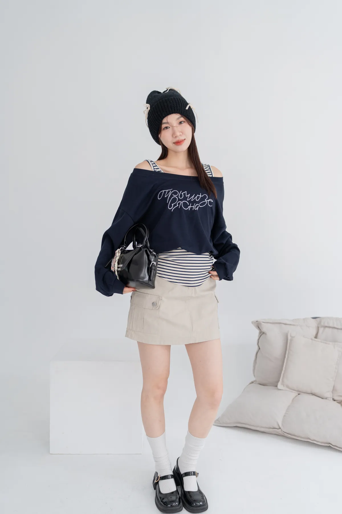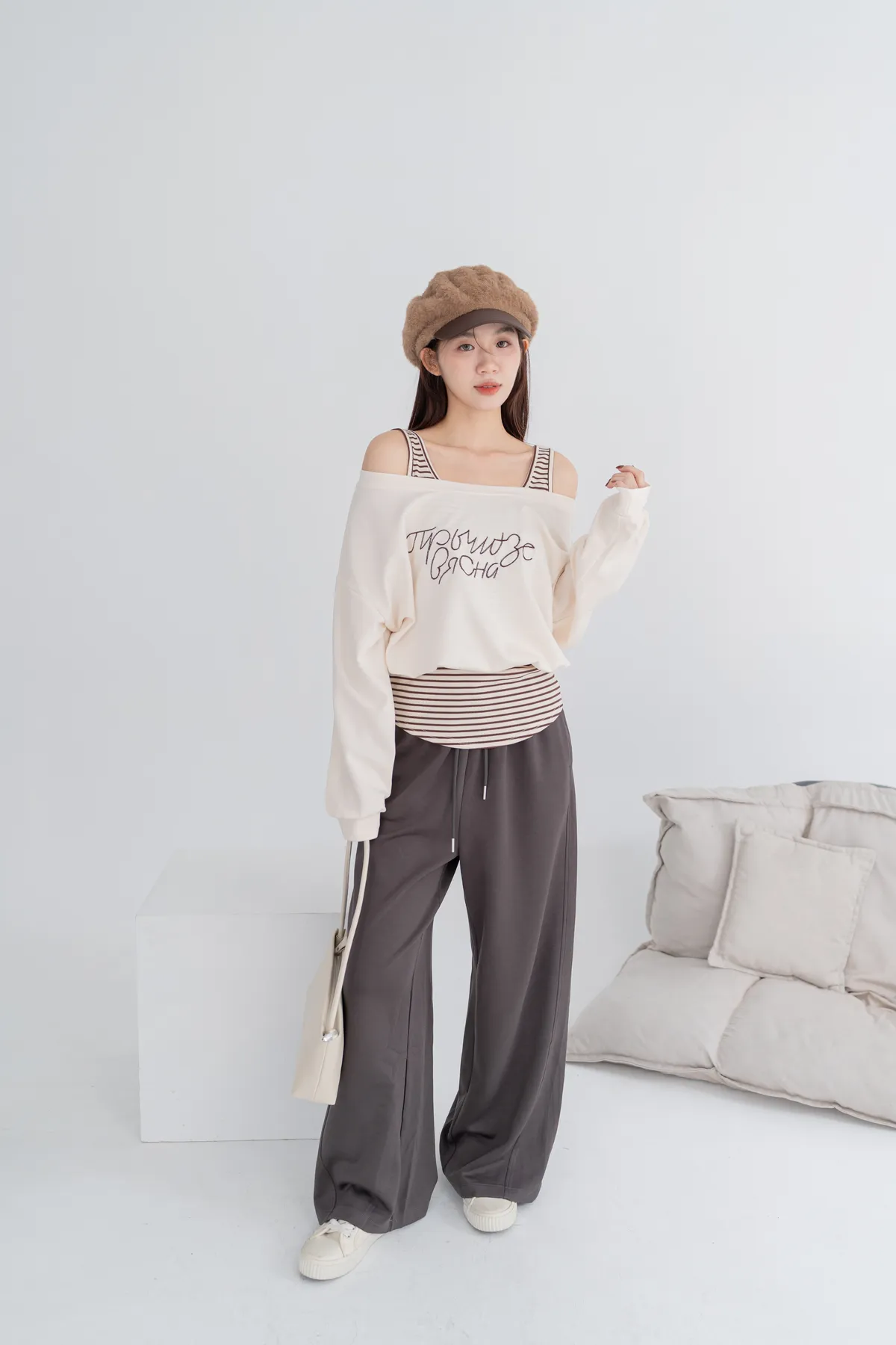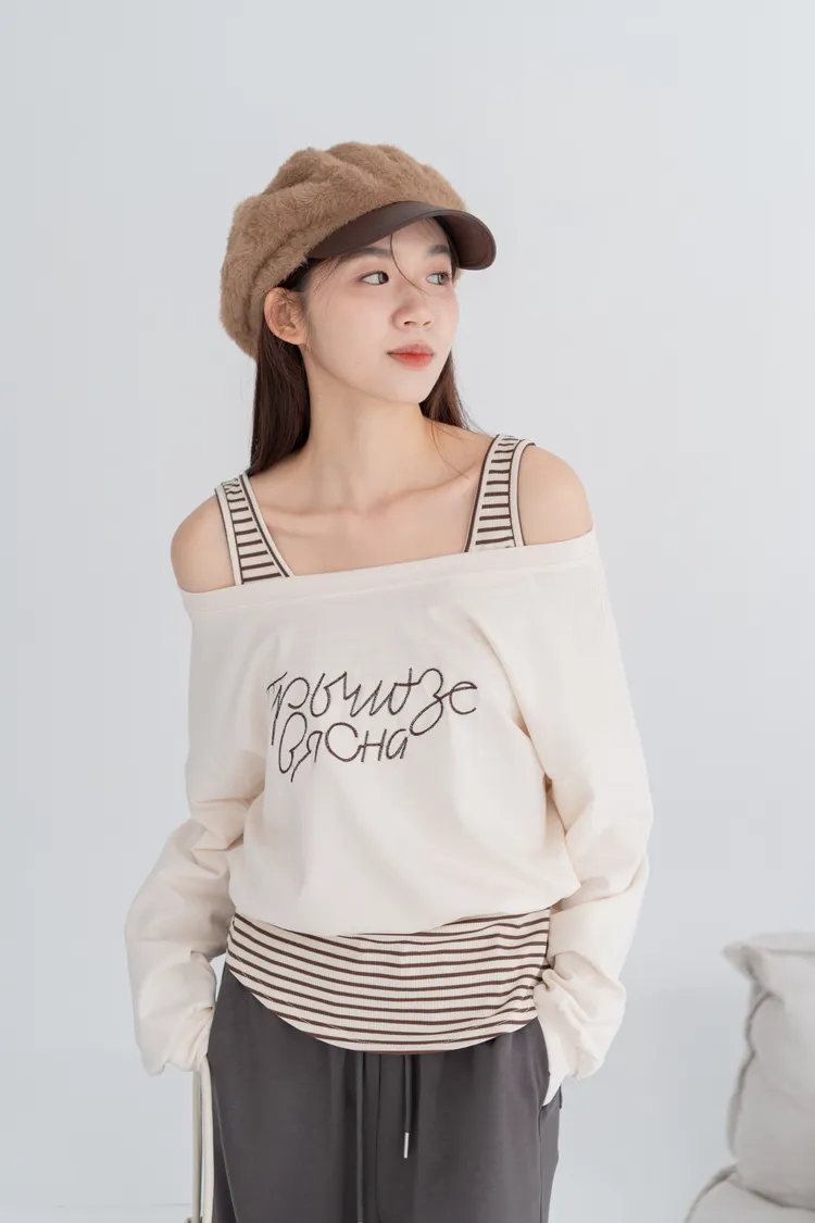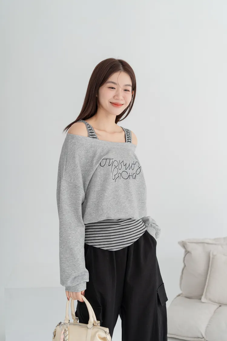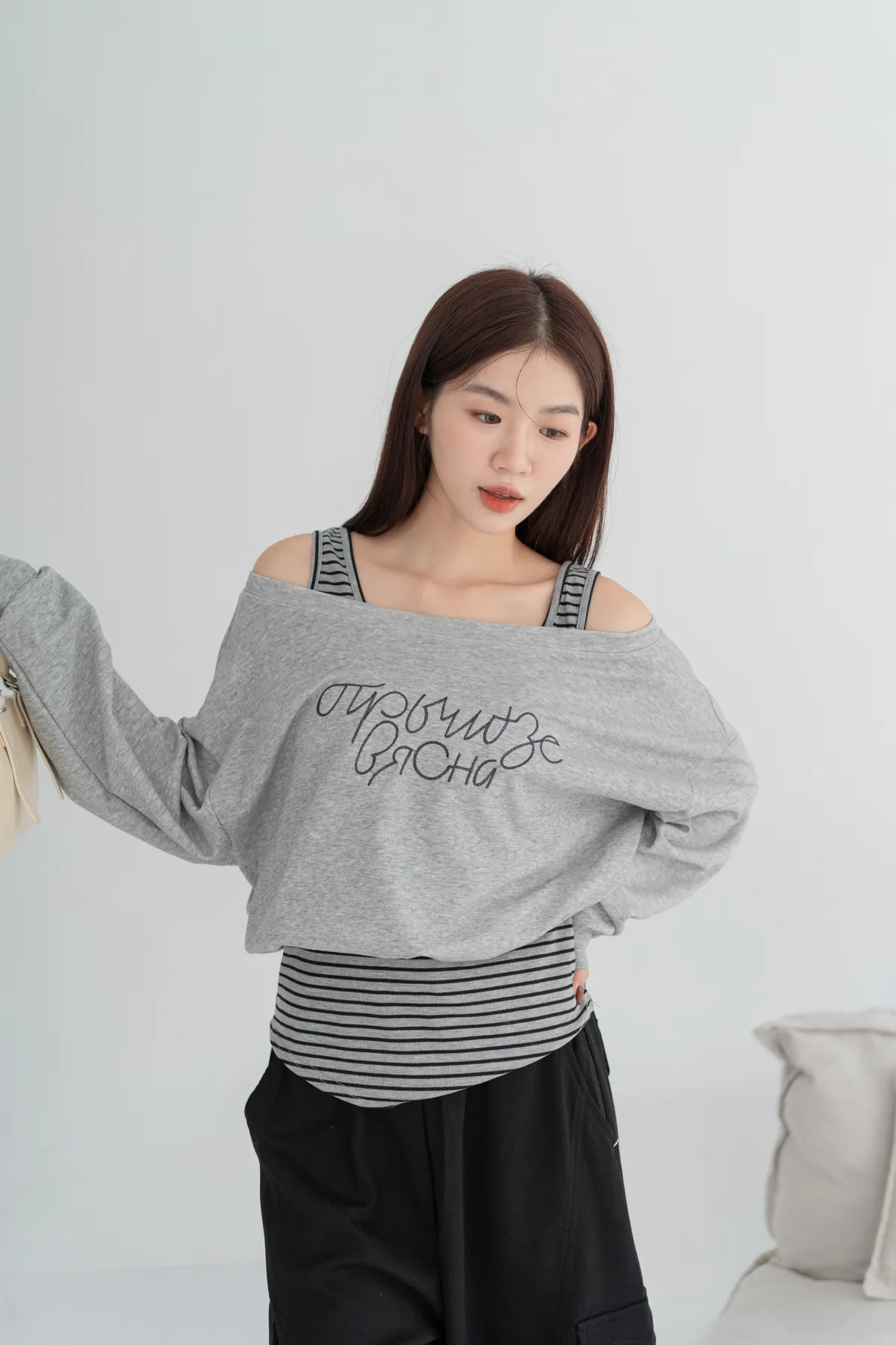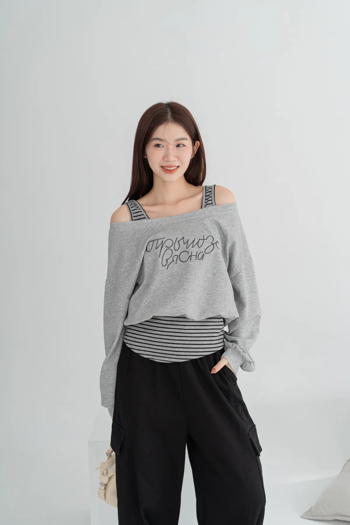 商品資訊:假兩件層次拼接,微露肩小心機 ,舒適彈性布料,自然斜肩不尷尬