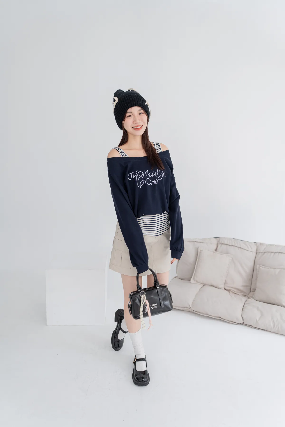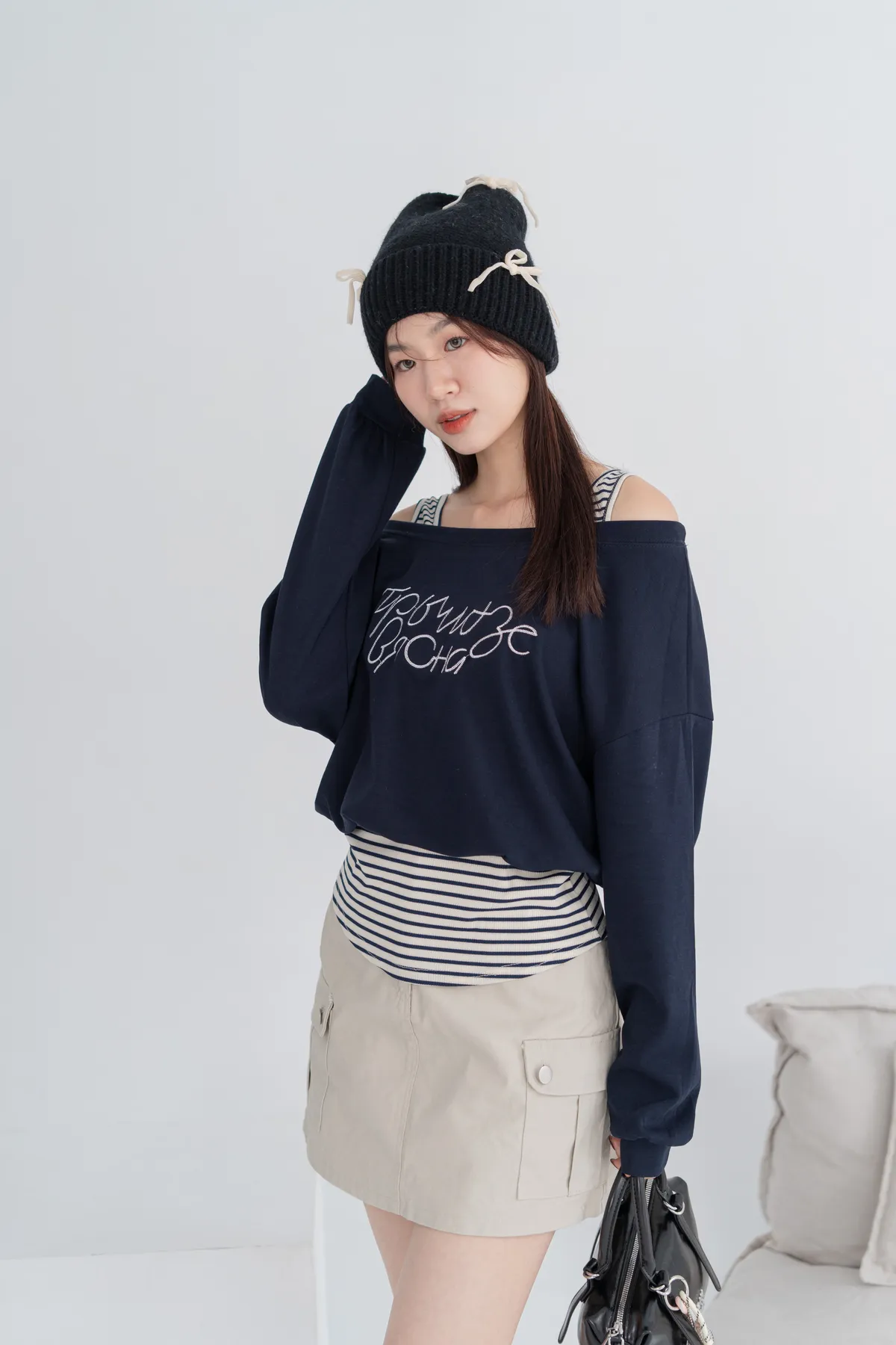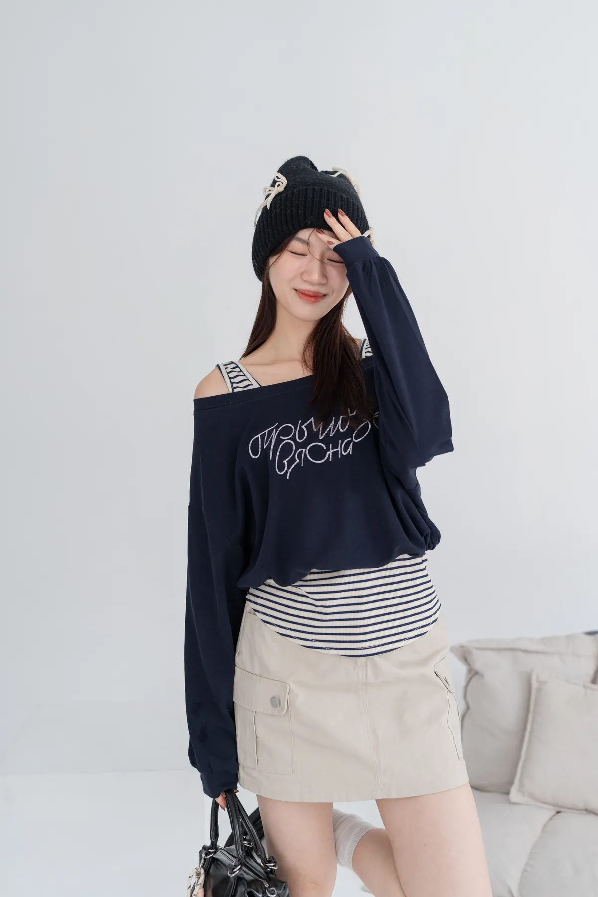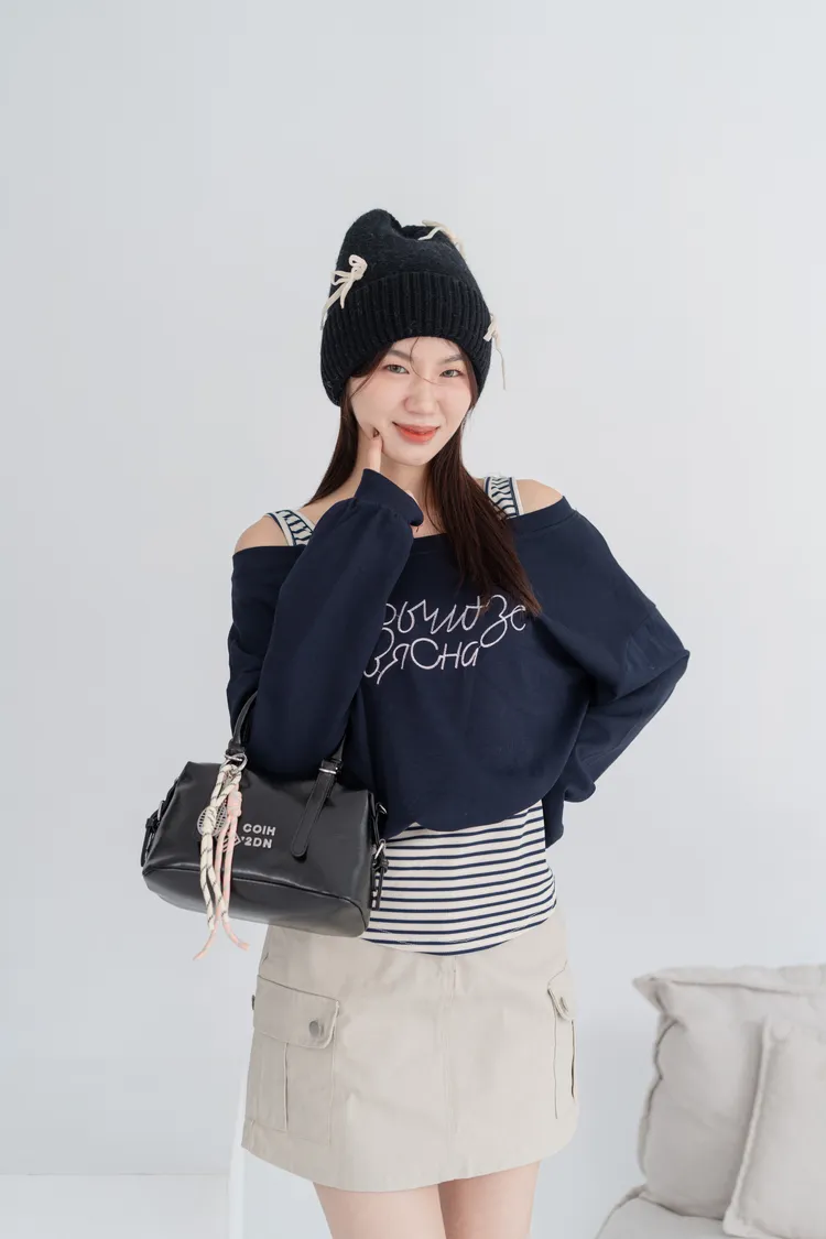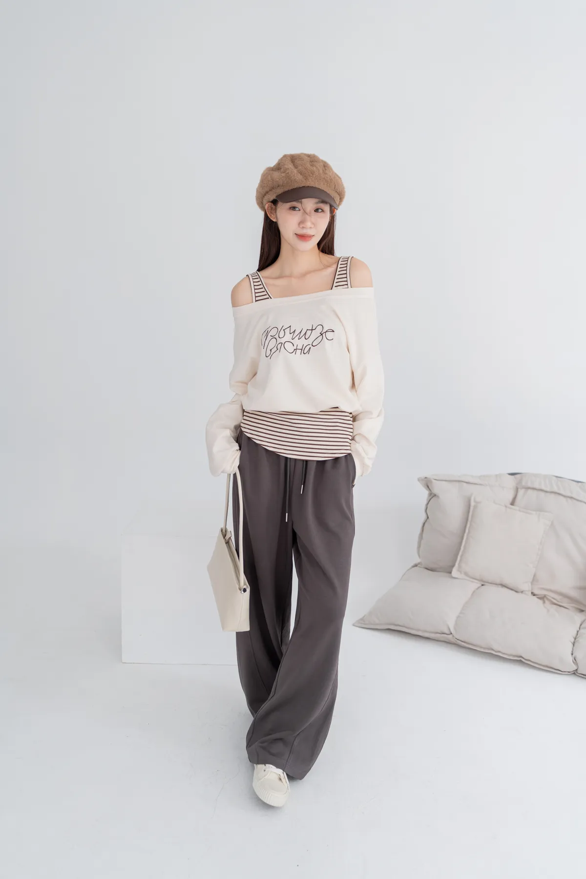 商品資訊:假兩件層次拼接,微露肩小心機 ,舒適彈性布料,自然斜肩不尷尬