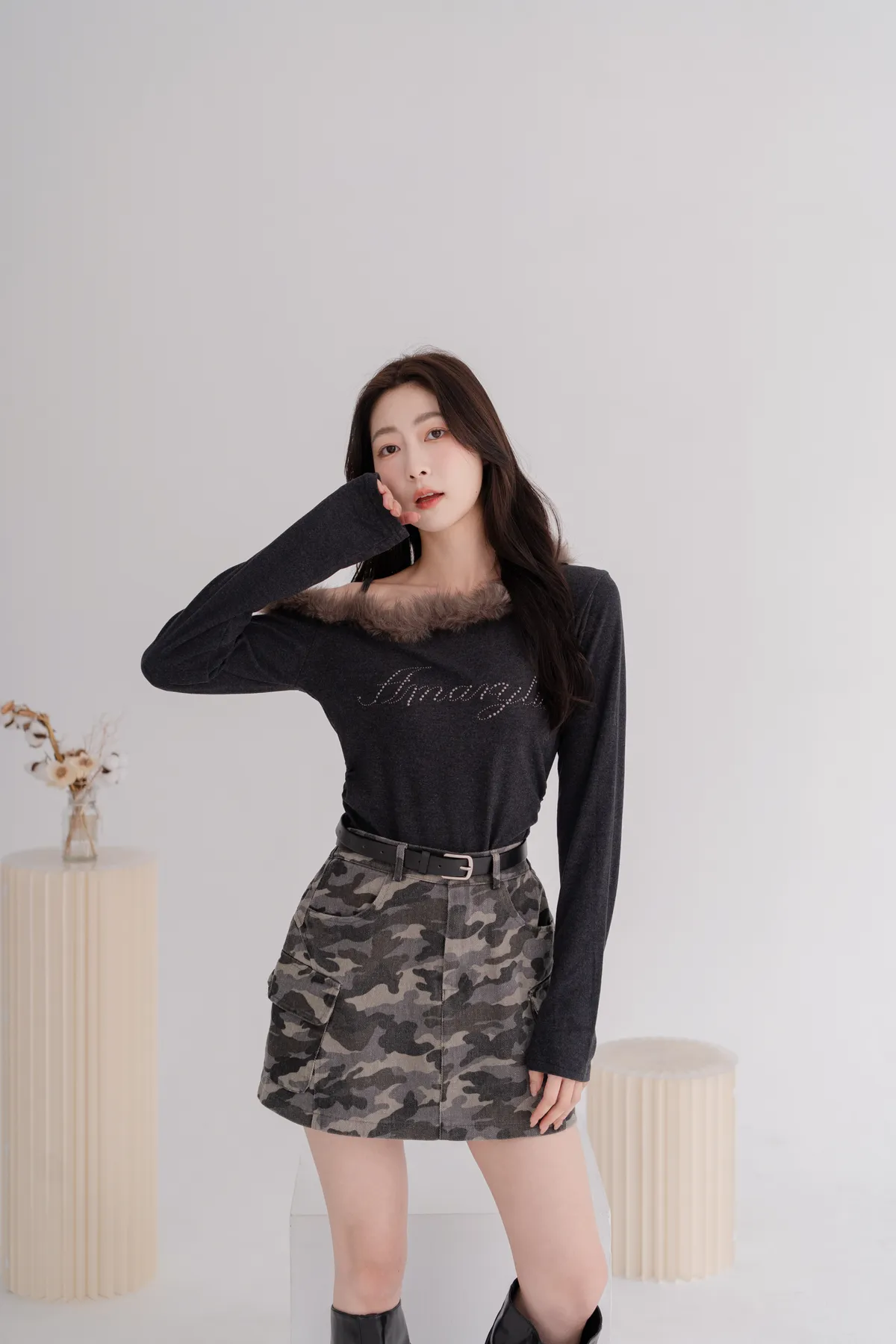 *柔軟毛拼接設計,增添溫暖層次感