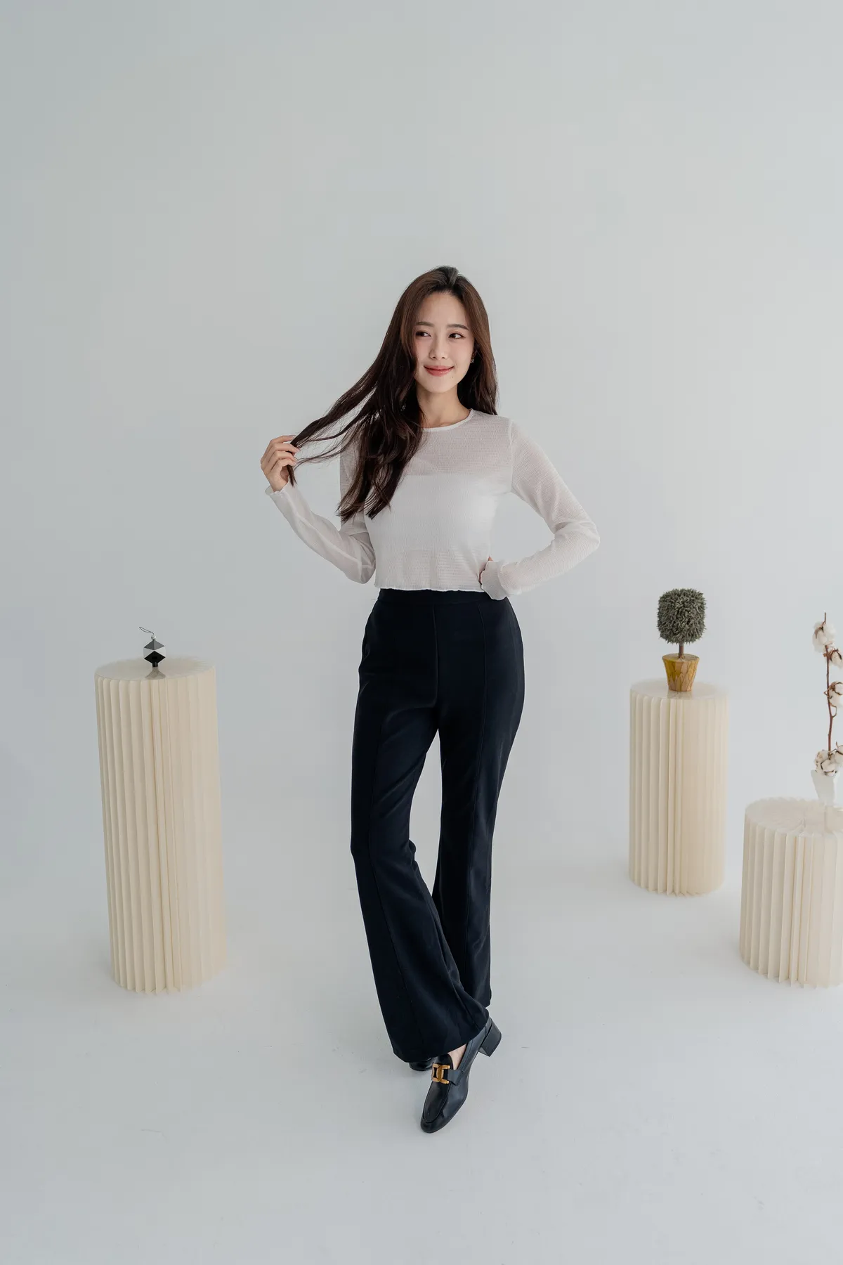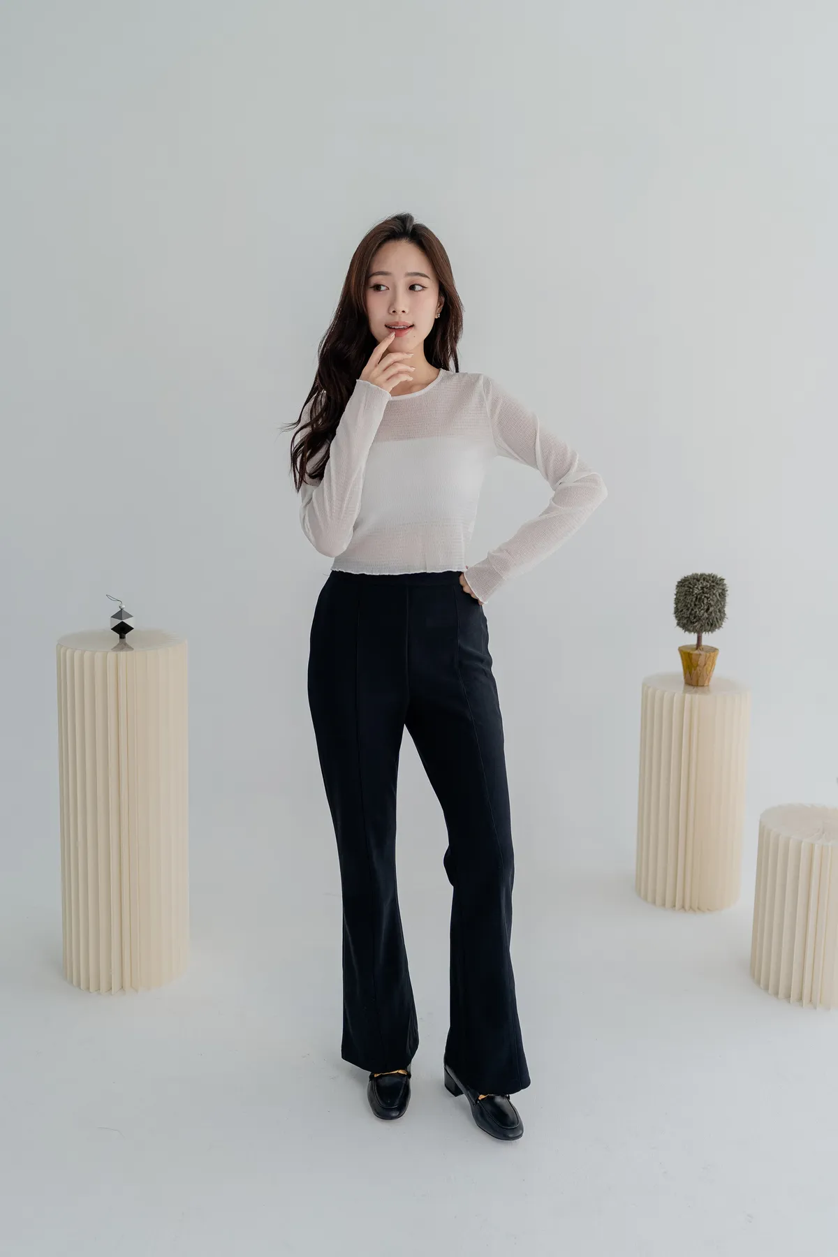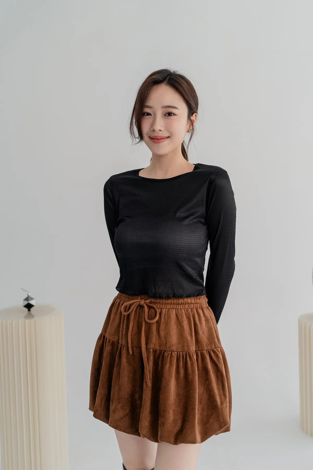 商品資訊:細緻的壓紋布料帶出微透層次,單穿或作為內搭,都能在日常中展現低調的性感與高級感。