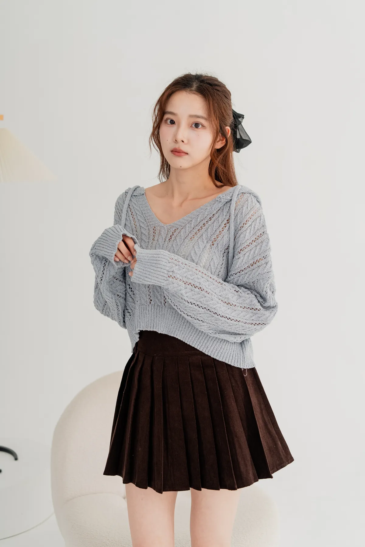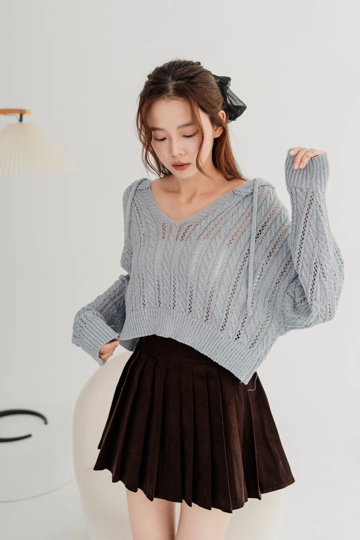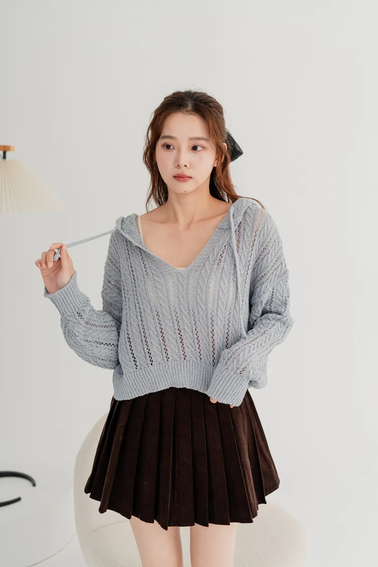 短版針織連帽上衣