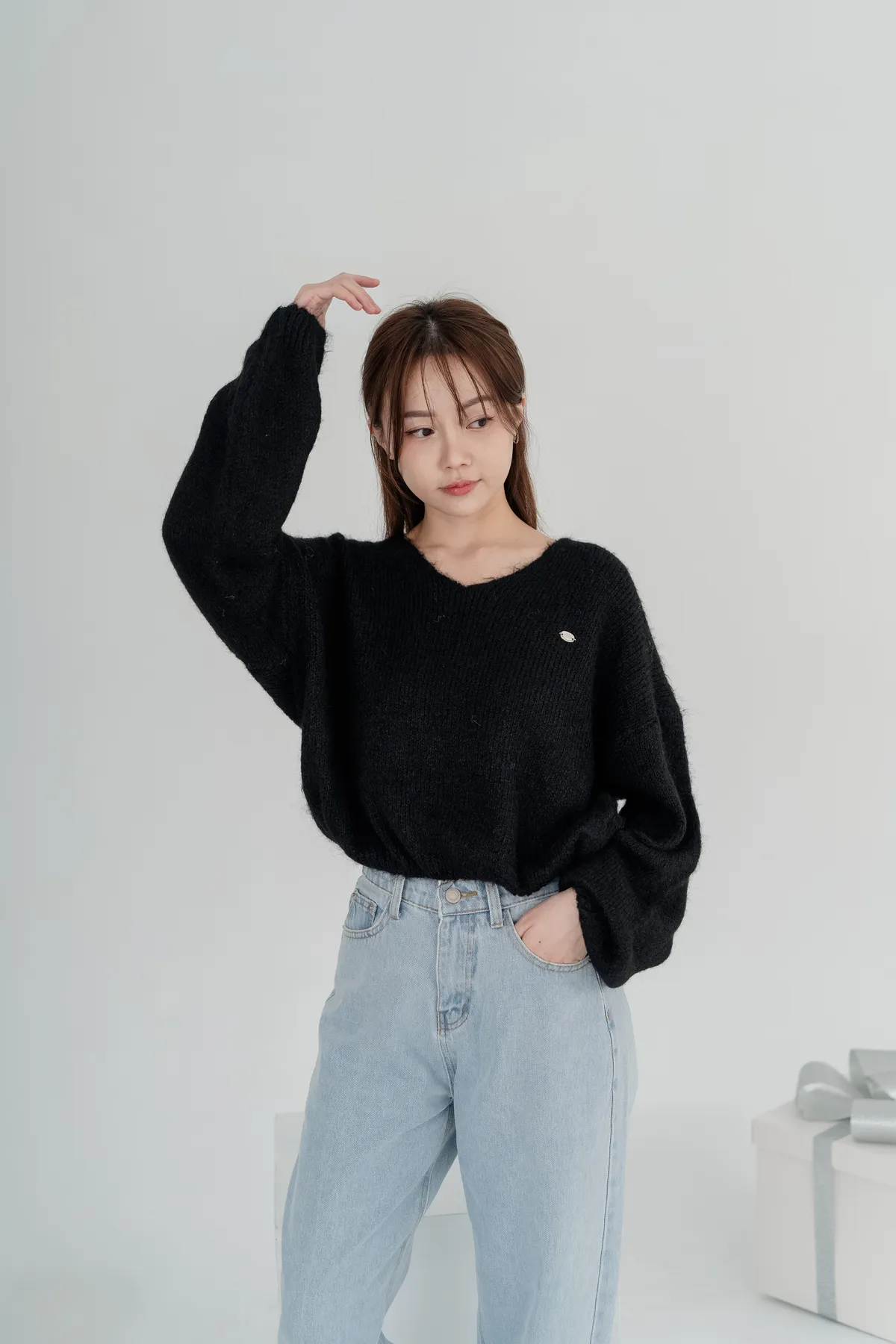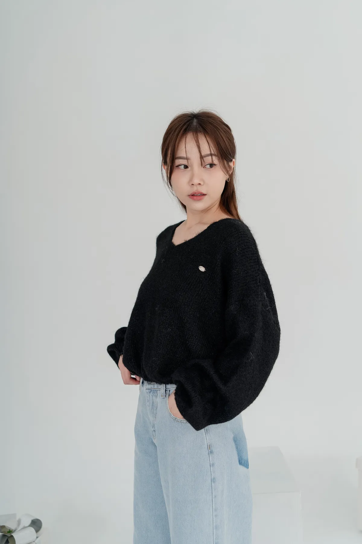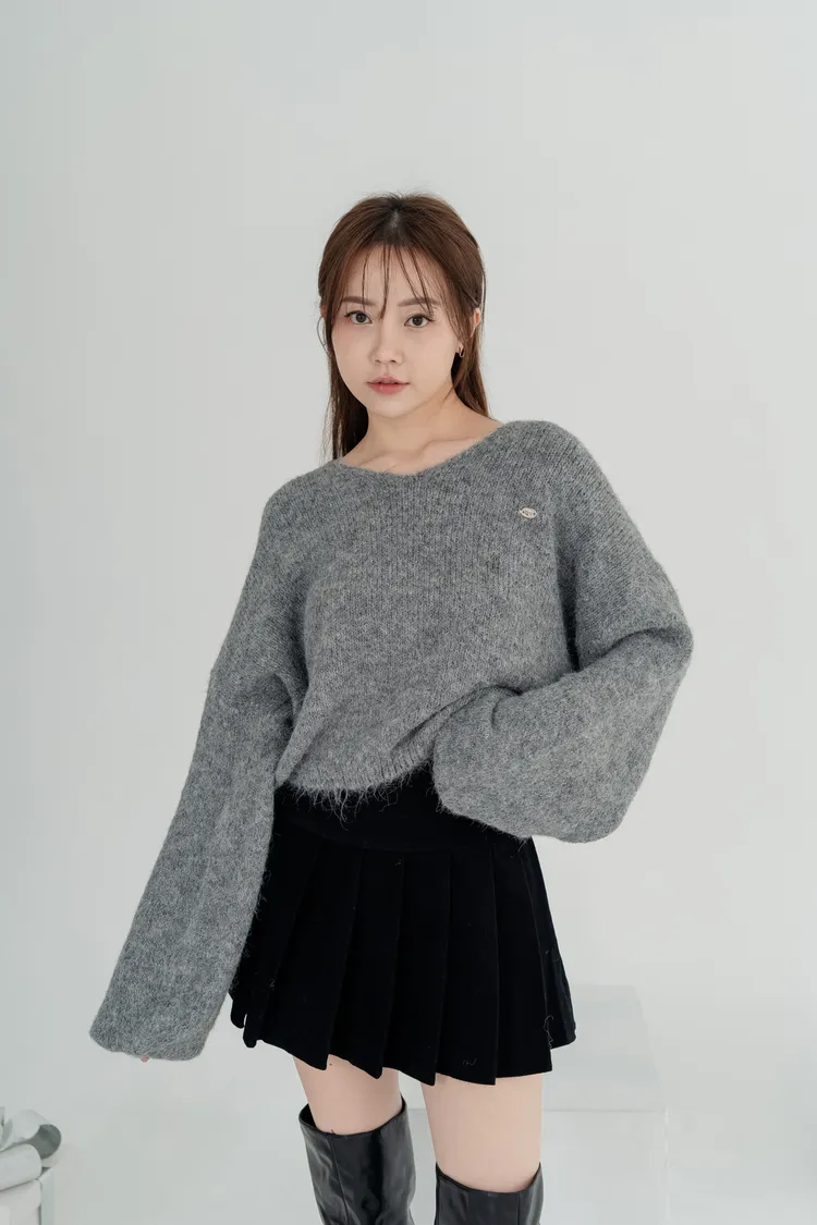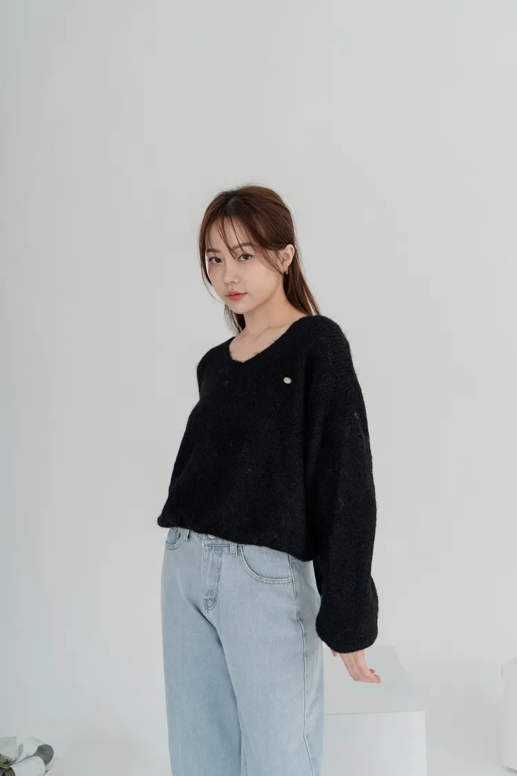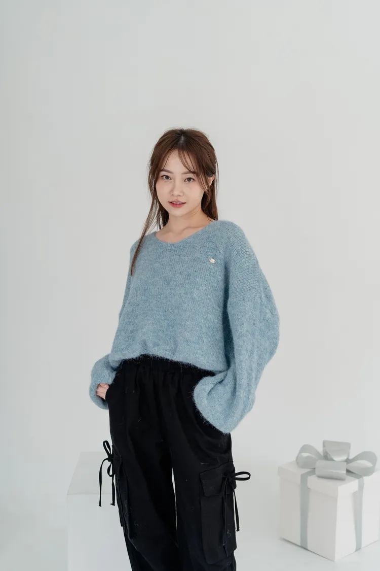 V領下縮口毛衣