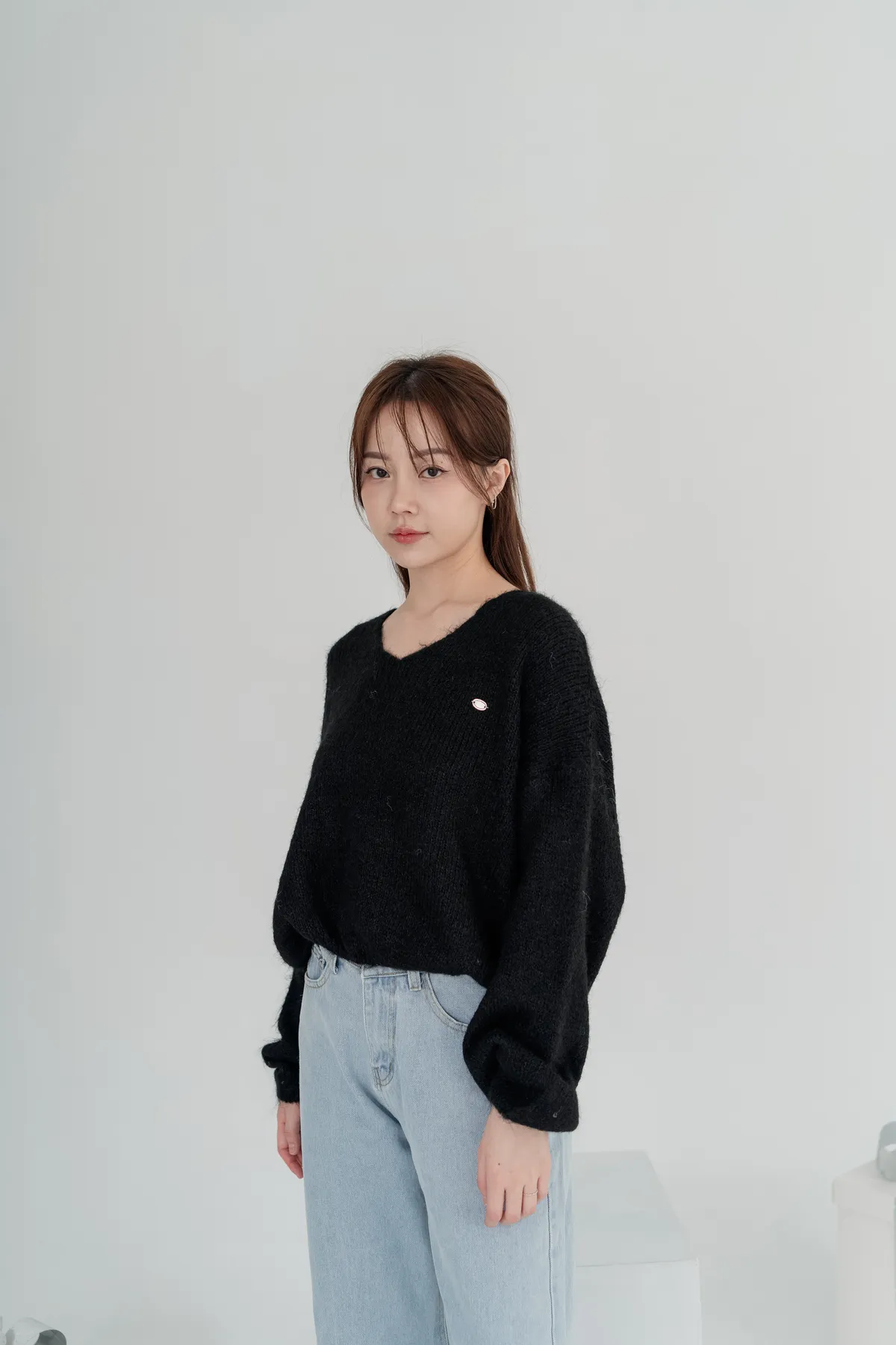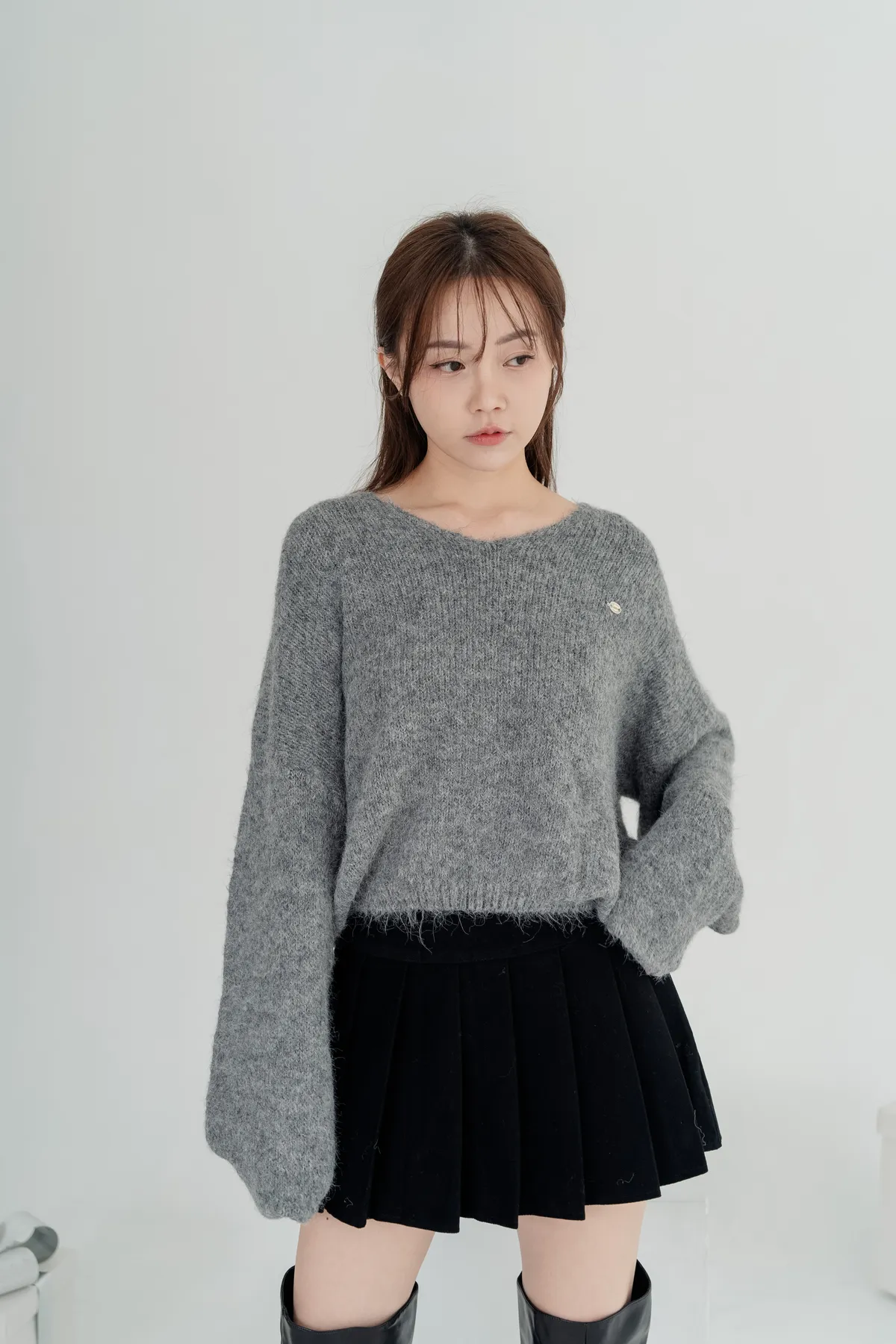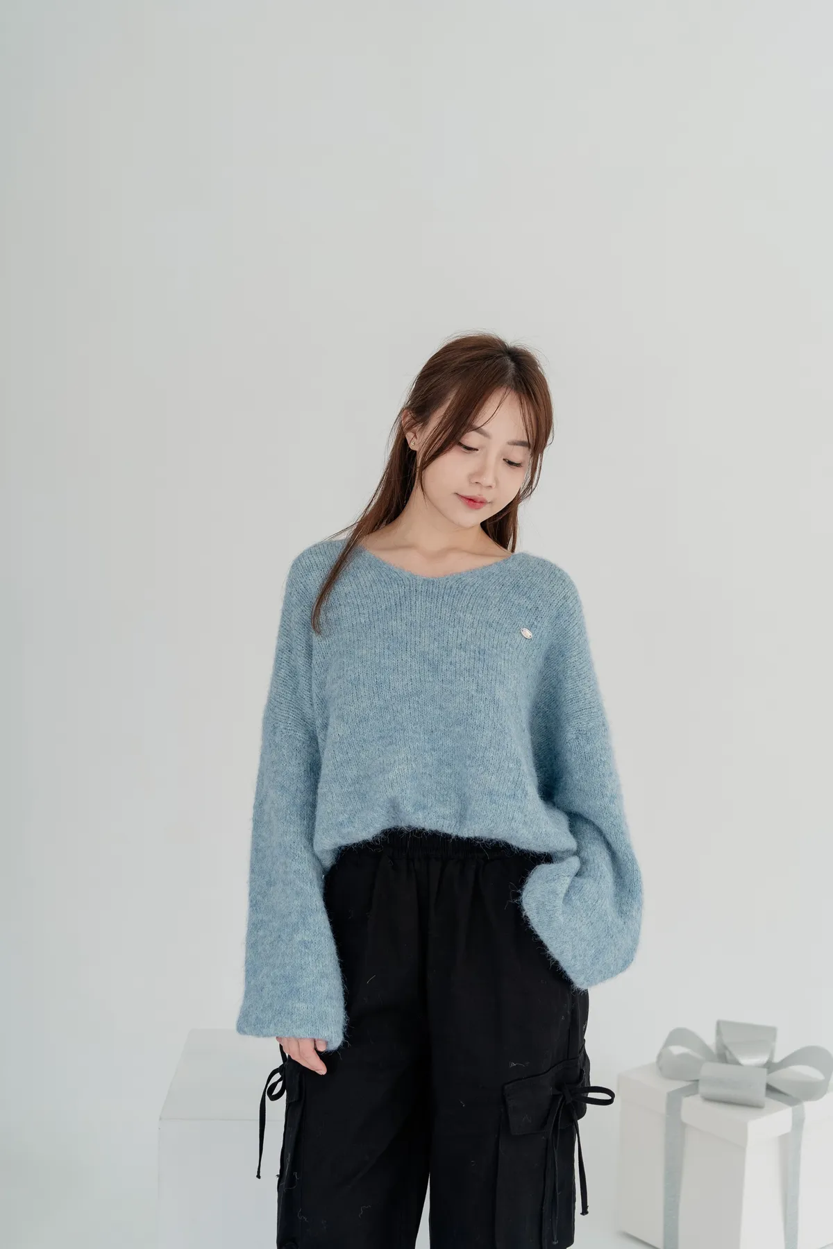 V領下縮口毛衣