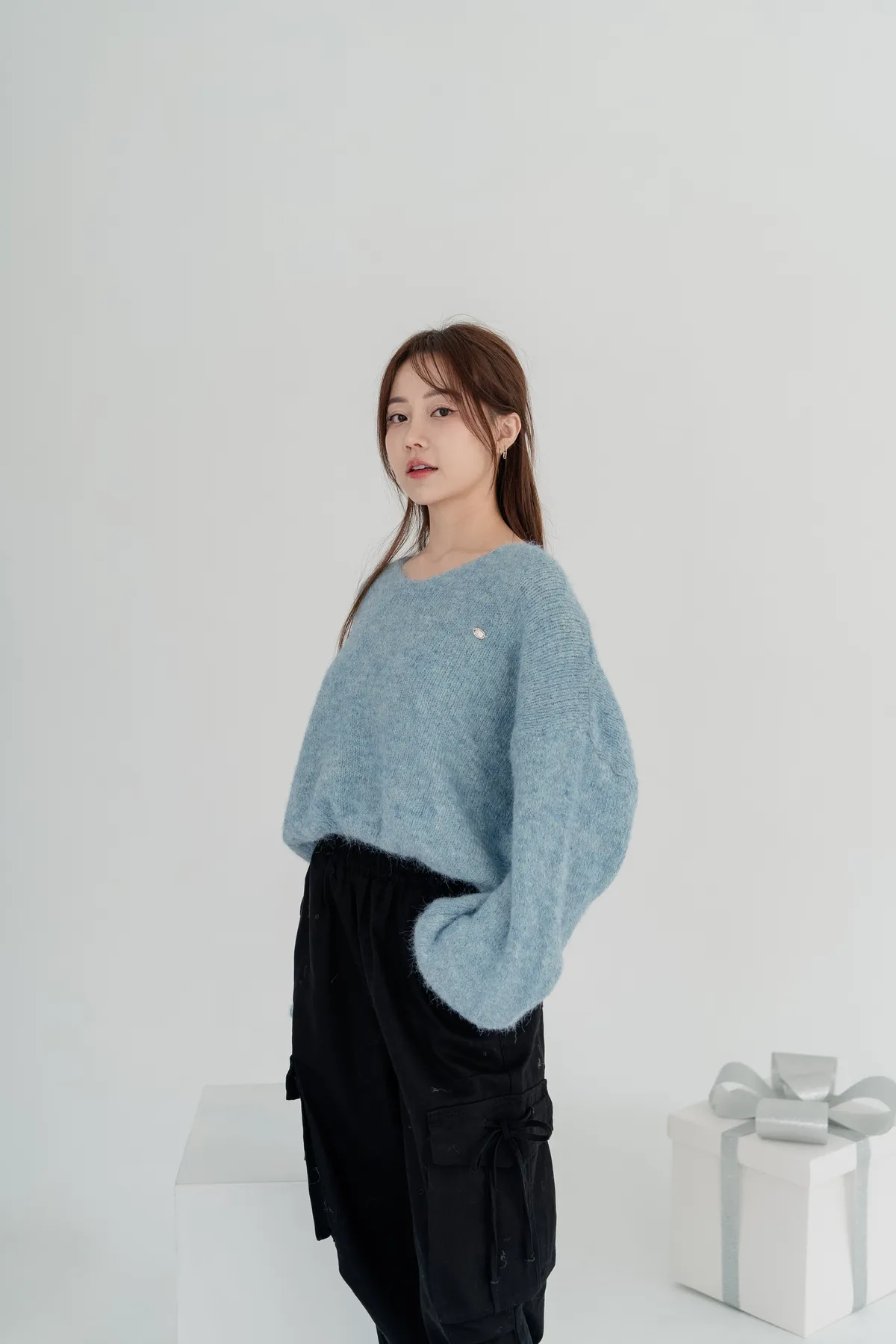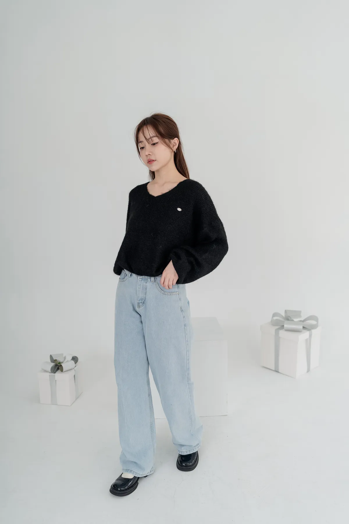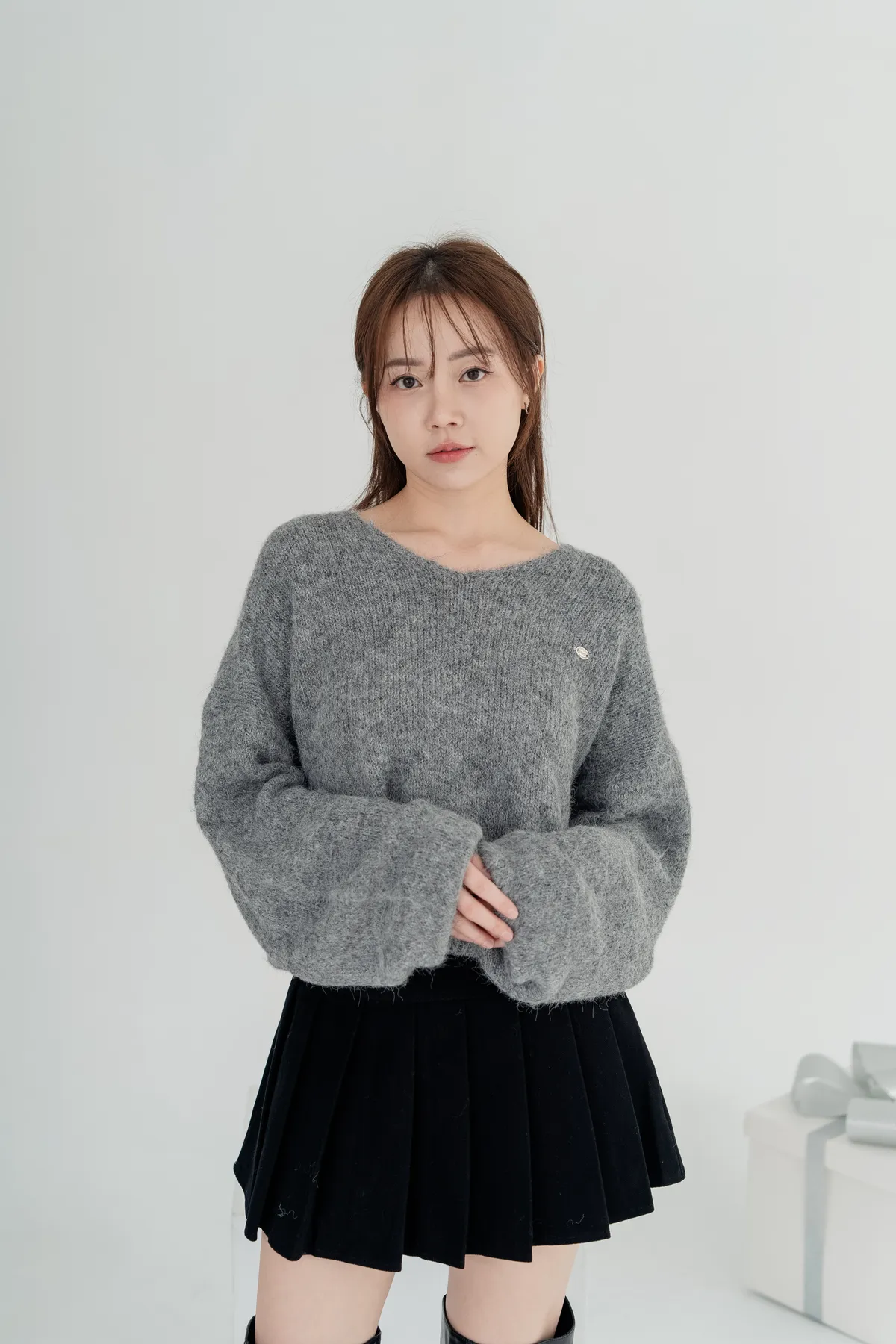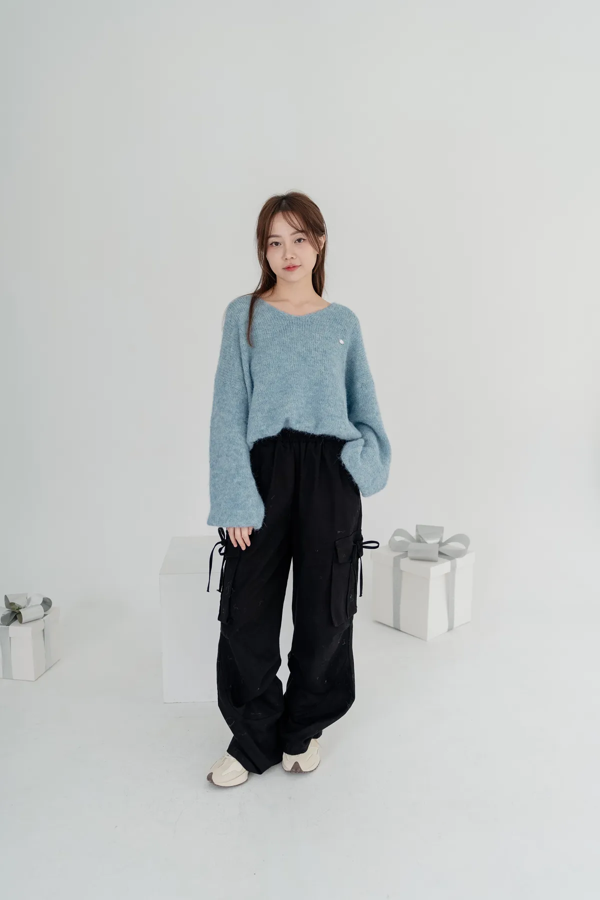 V領下縮口毛衣