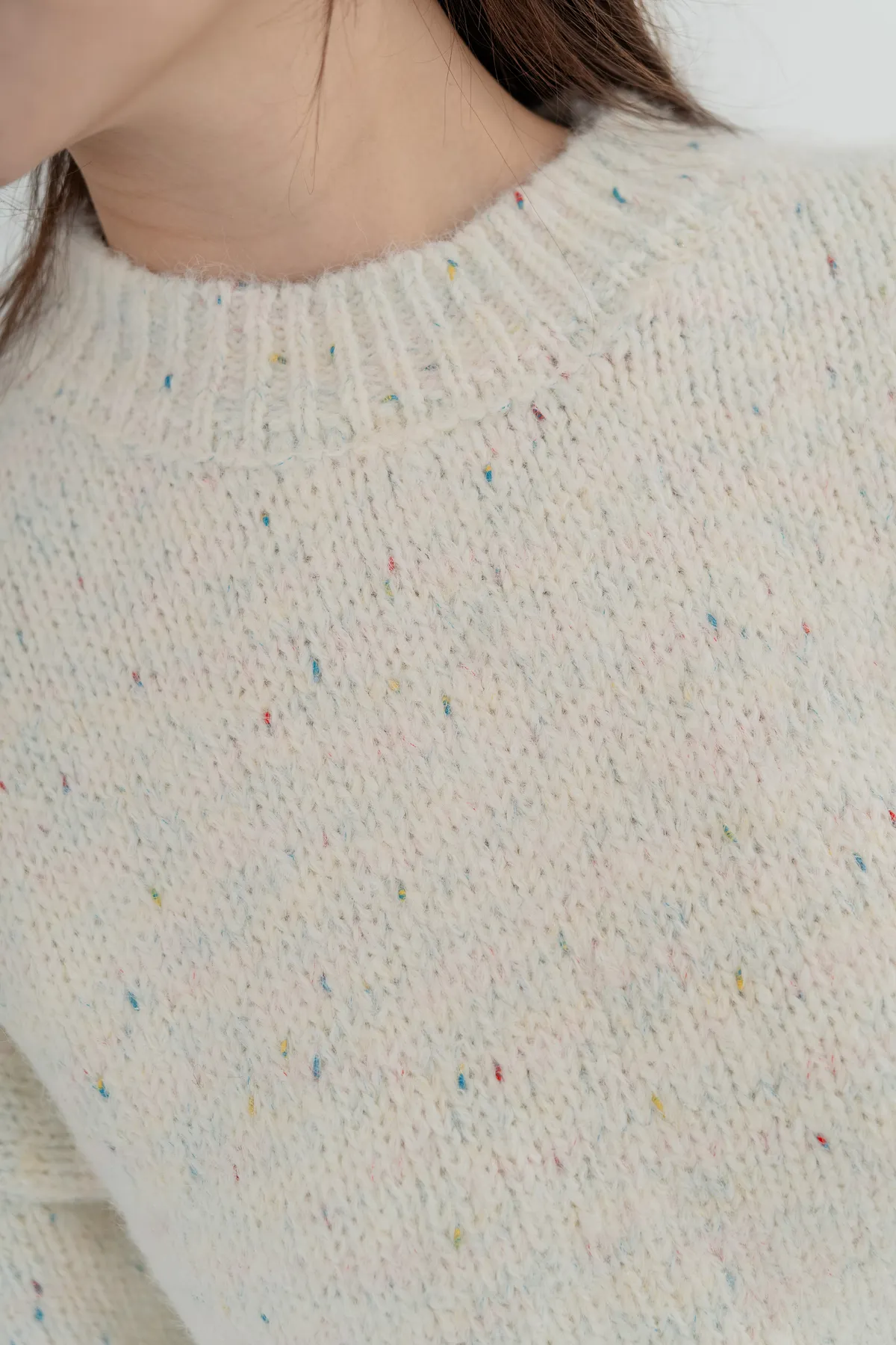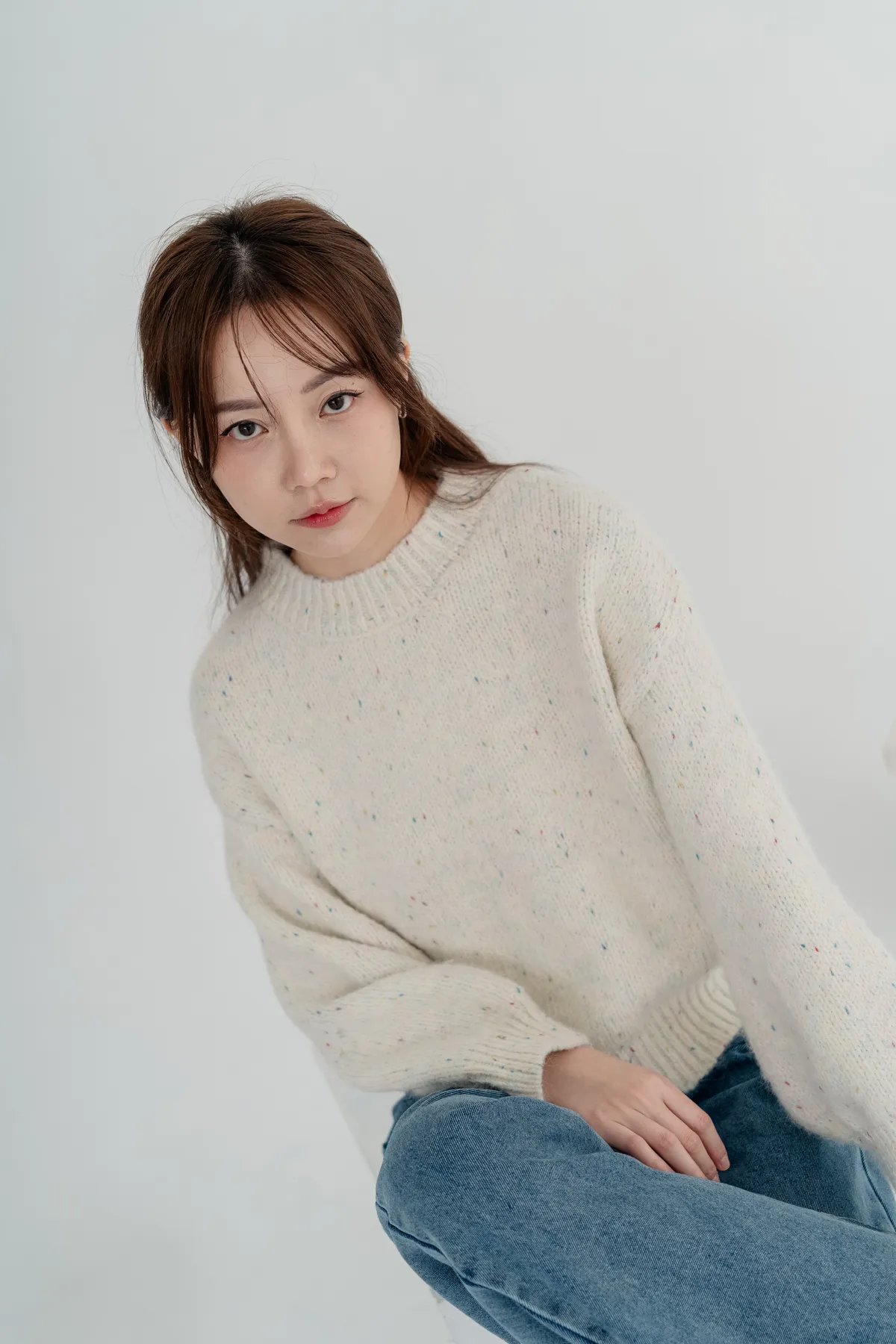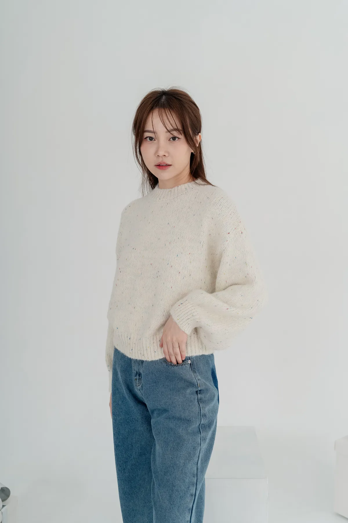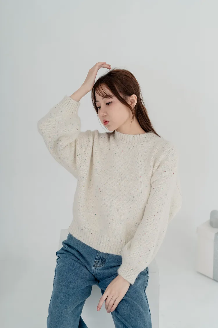 漂亮的混色毛衣,細節上很美,微澎袖剪裁修飾手臂線條更顯瘦,日常、約會、通勤都能駕馭
