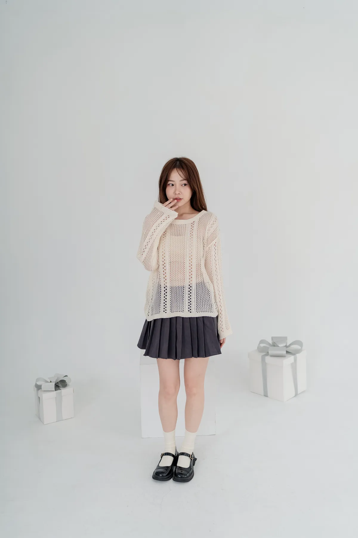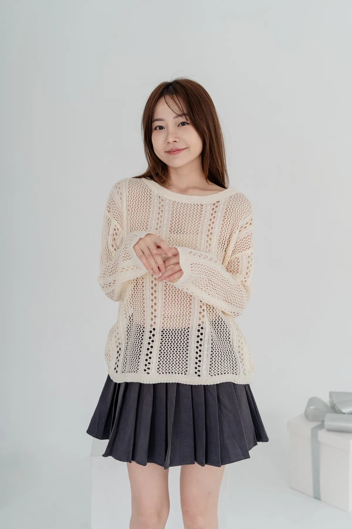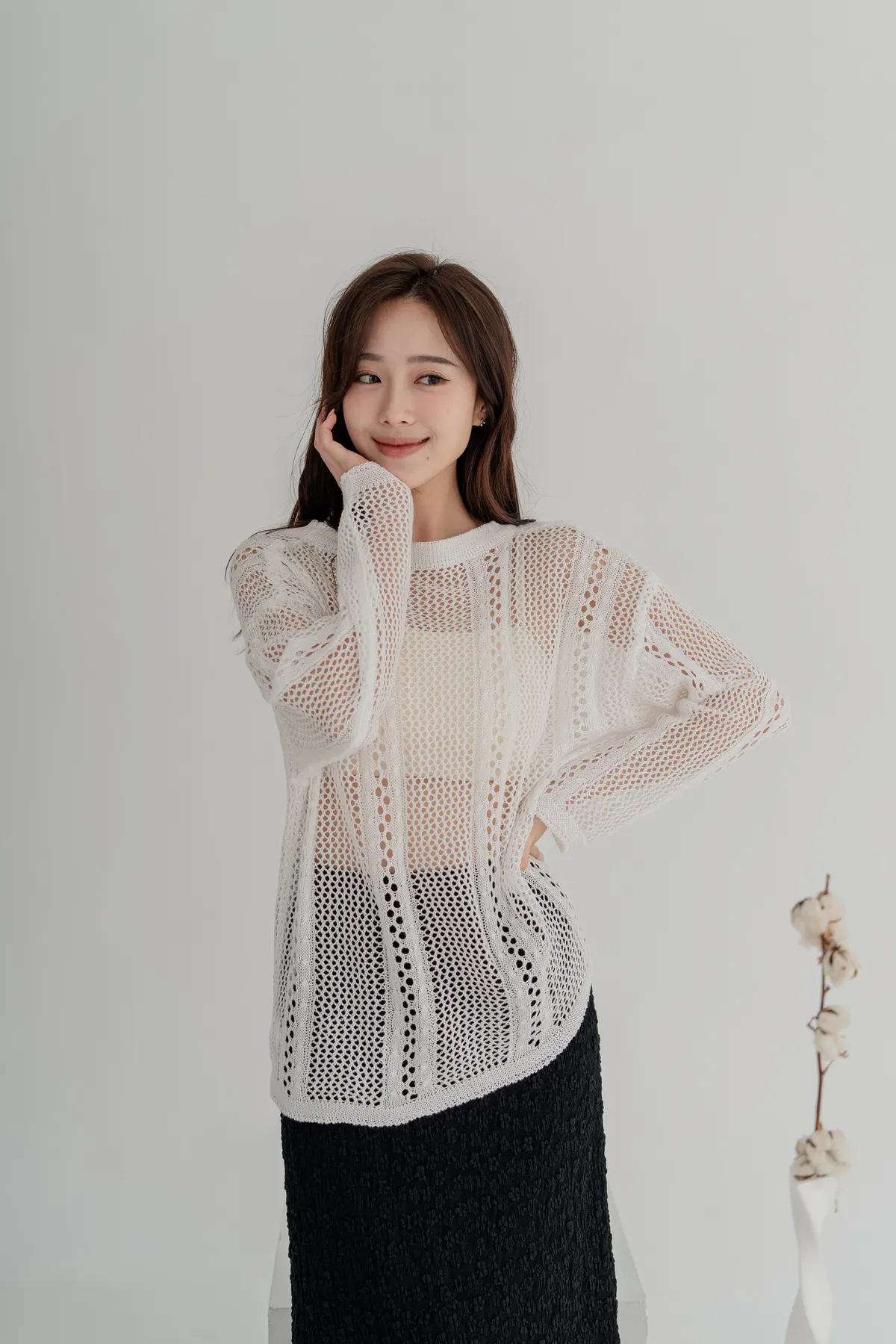 直條鏤空織紋自然延伸身形比例,修飾上半身線條,小腹、手臂線條更顯俐落。圓領設計溫柔不挑臉型,單穿搭配小可愛、背心或細肩內搭就能輕鬆完成高級層次穿搭。