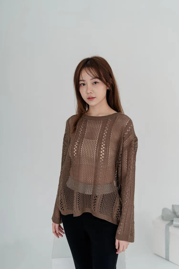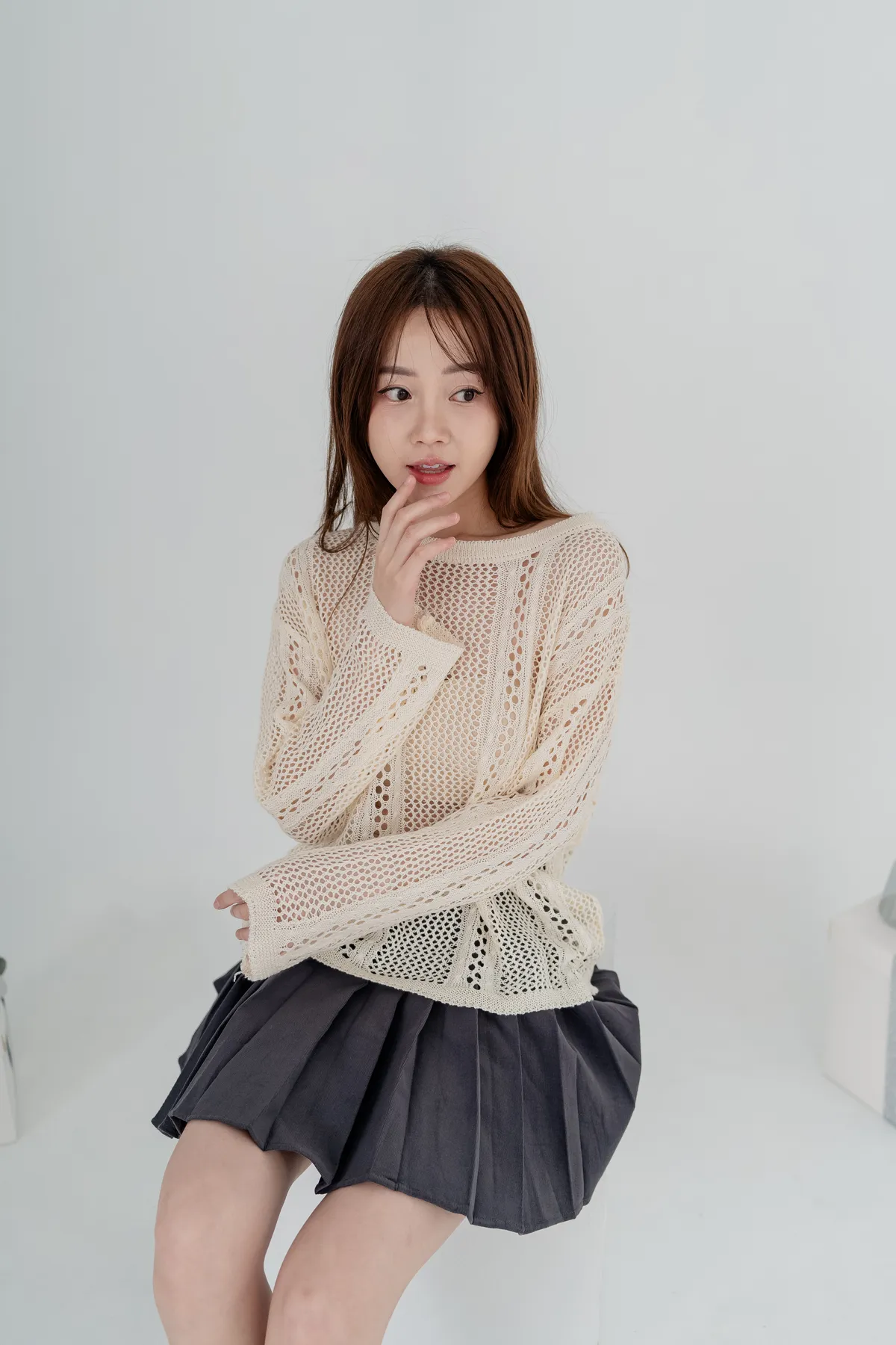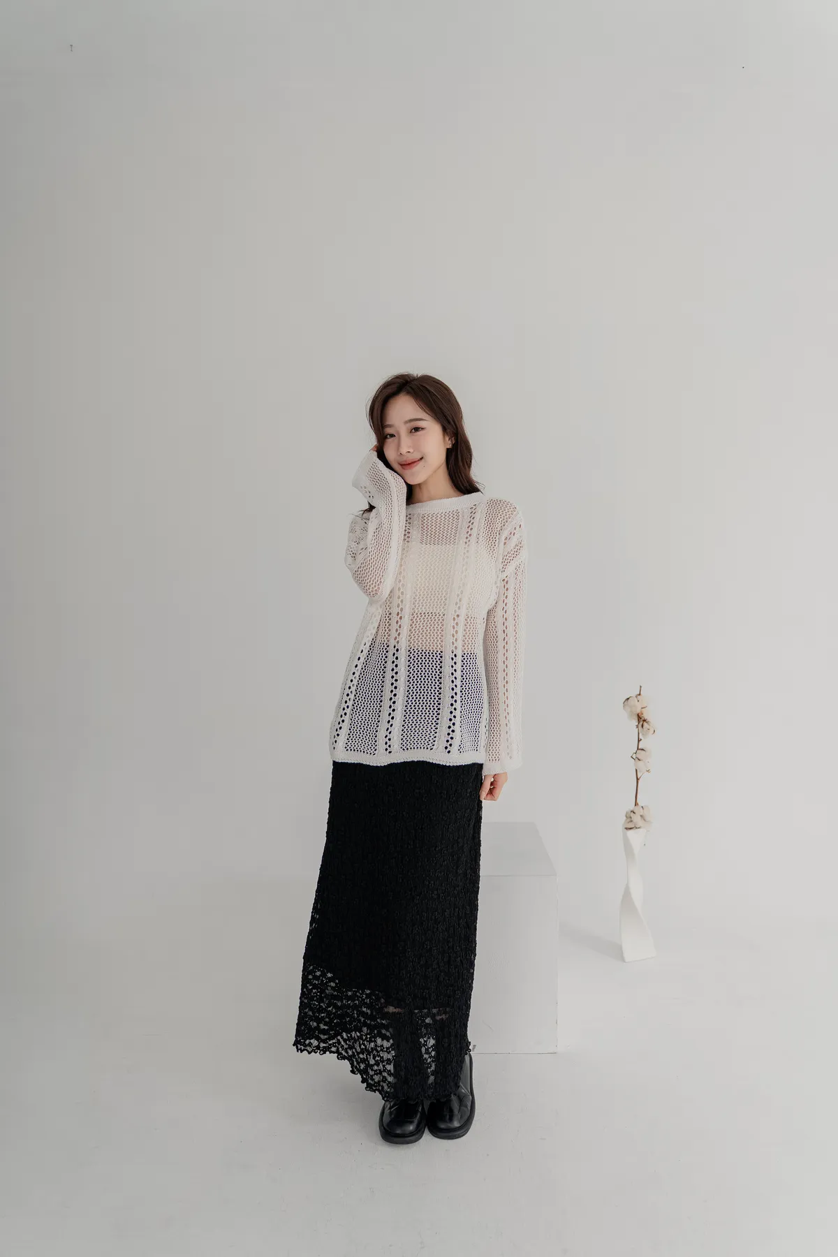 直條鏤空織紋自然延伸身形比例,修飾上半身線條,小腹、手臂線條更顯俐落。圓領設計溫柔不挑臉型,單穿搭配小可愛、背心或細肩內搭就能輕鬆完成高級層次穿搭。