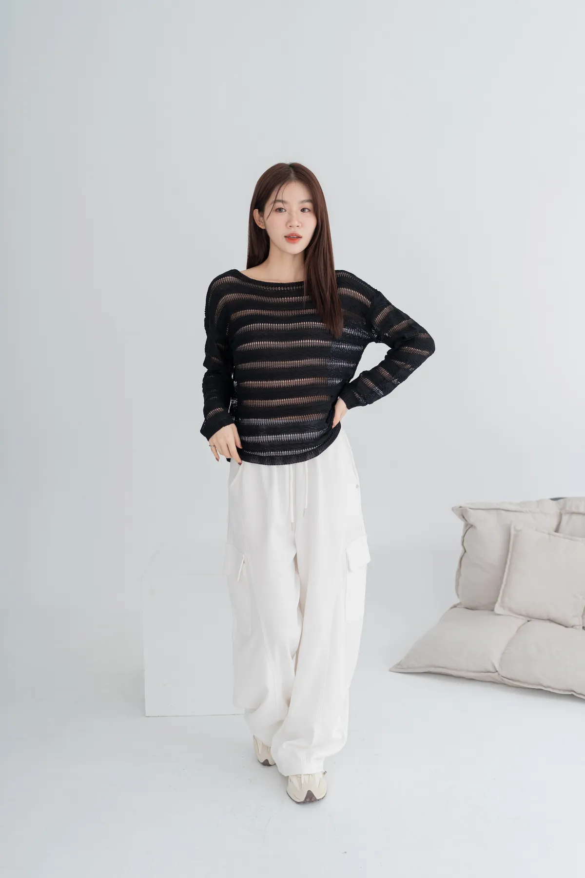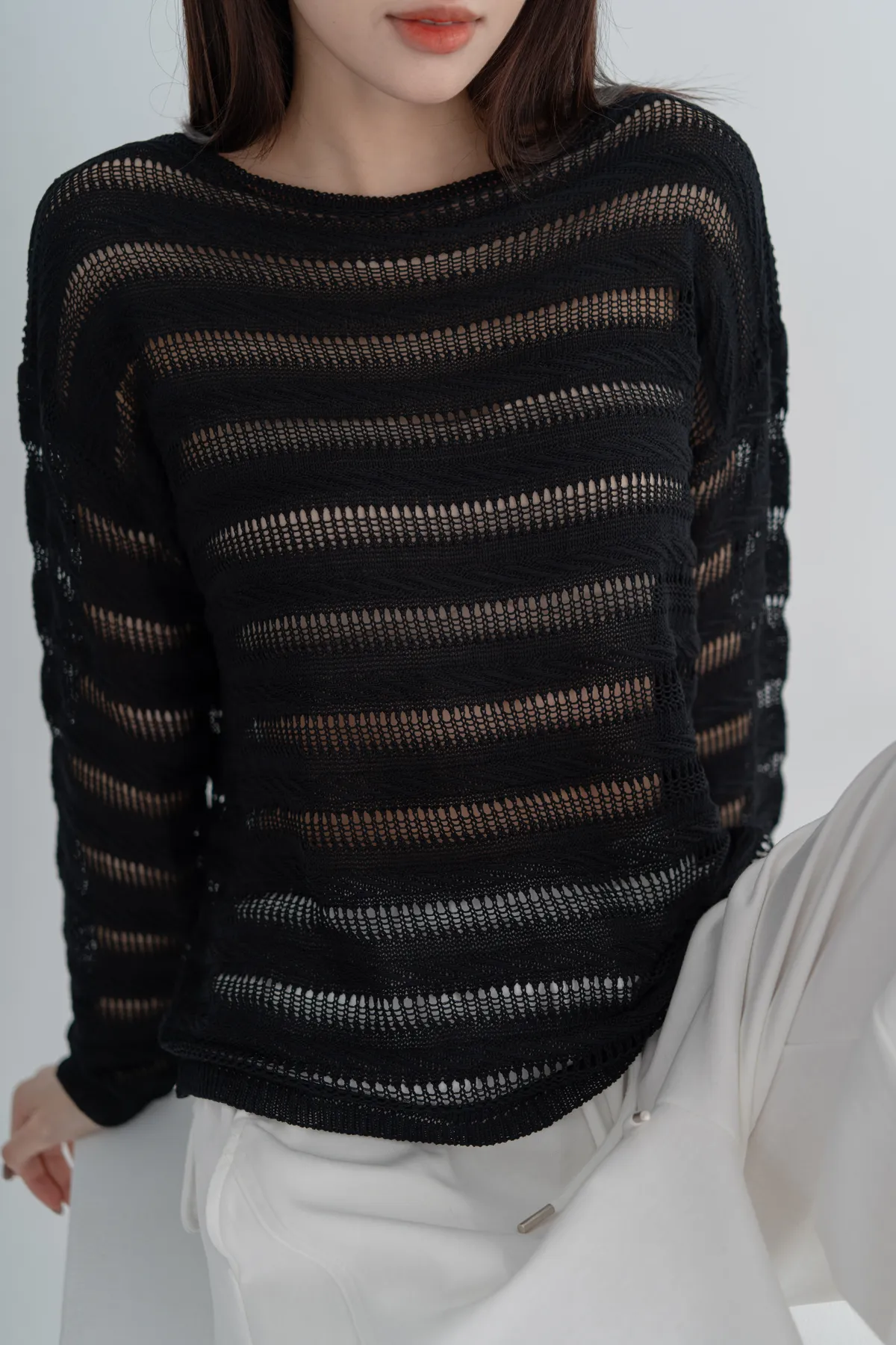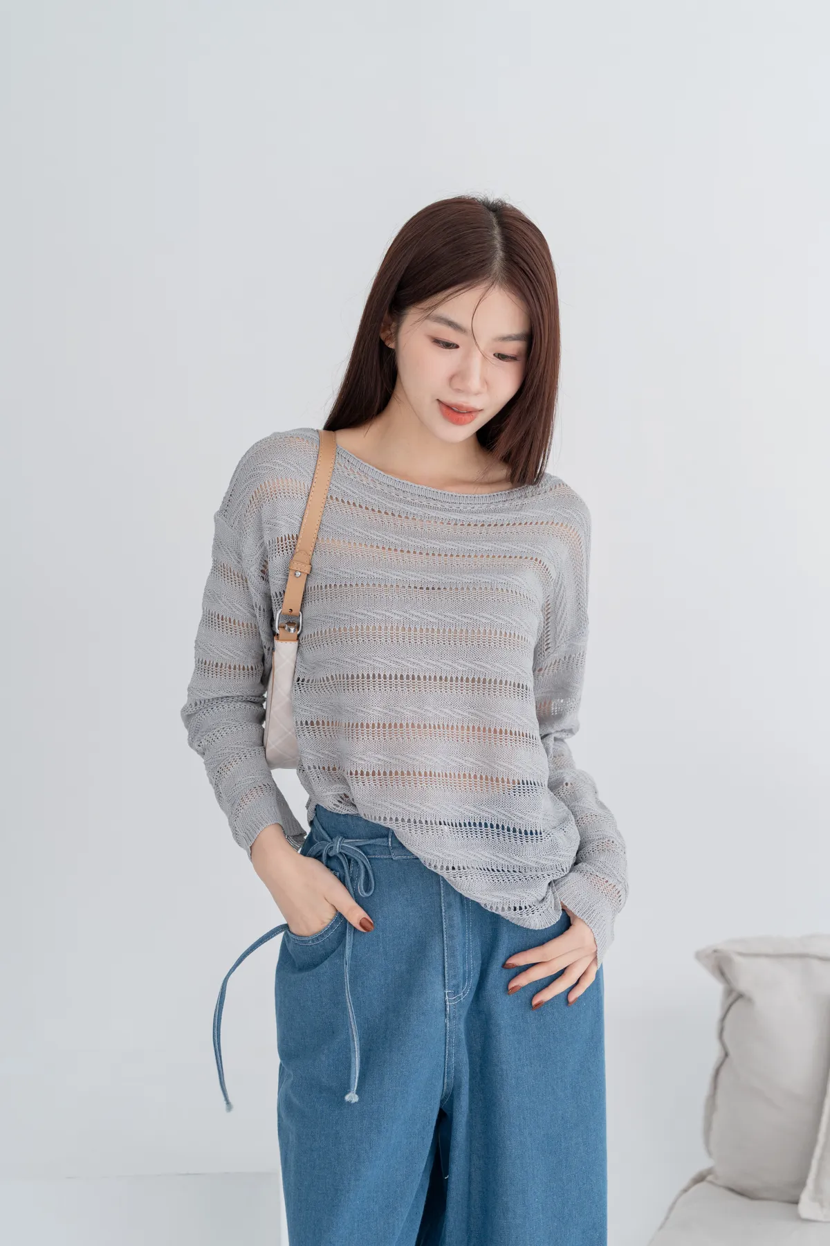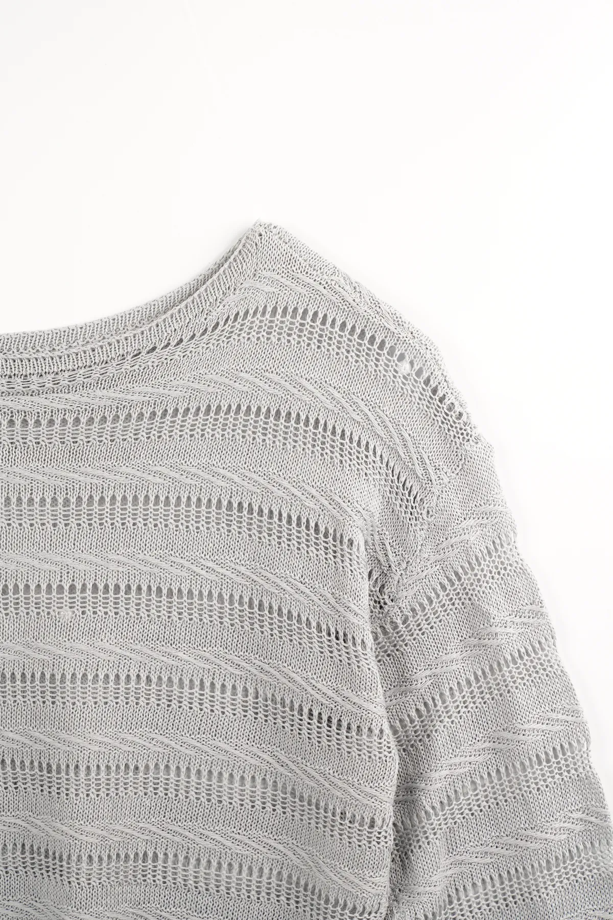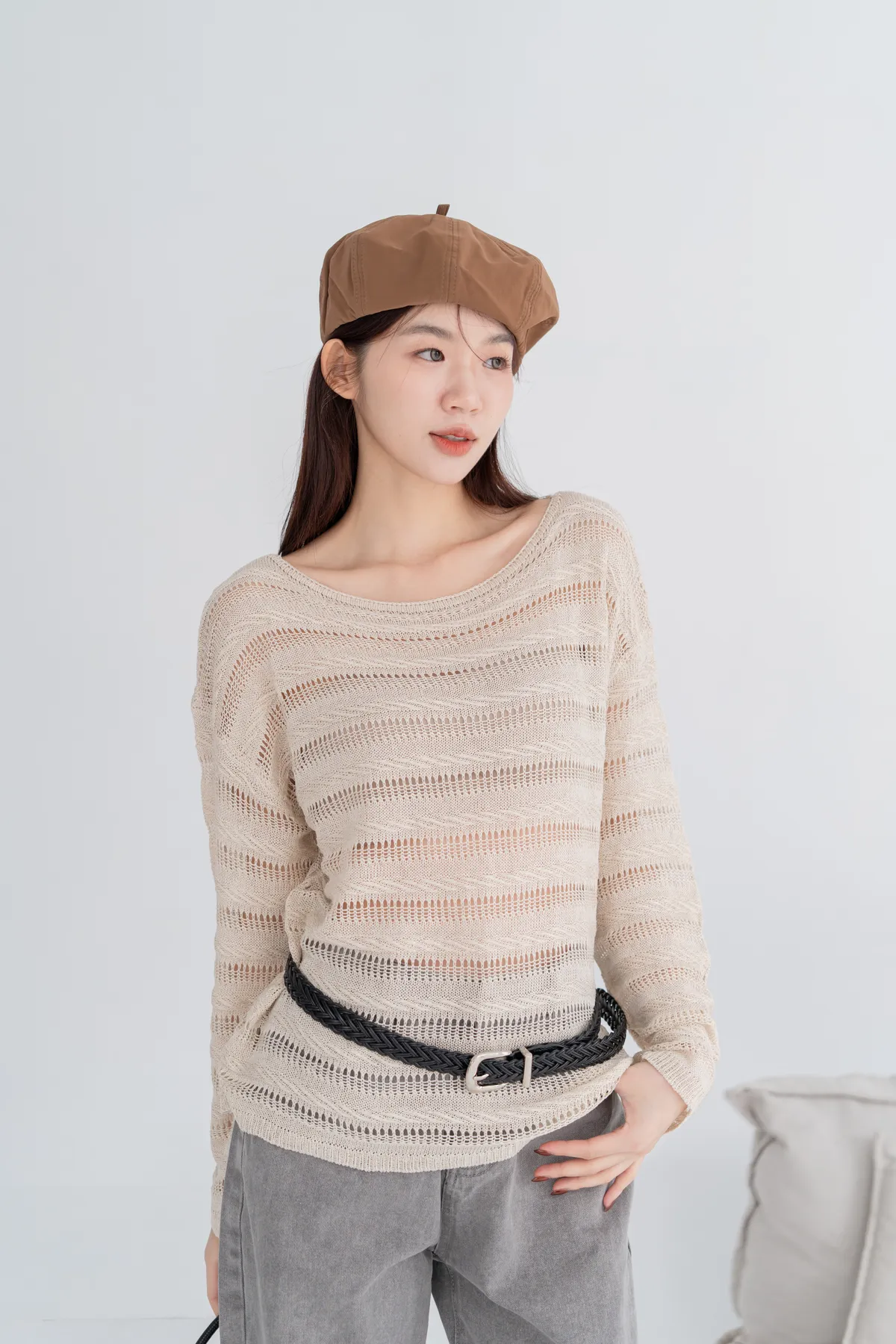 用不同織法編織成今年流行的條紋,寬鬆落肩版型,隨性穿就有慵懶氛圍