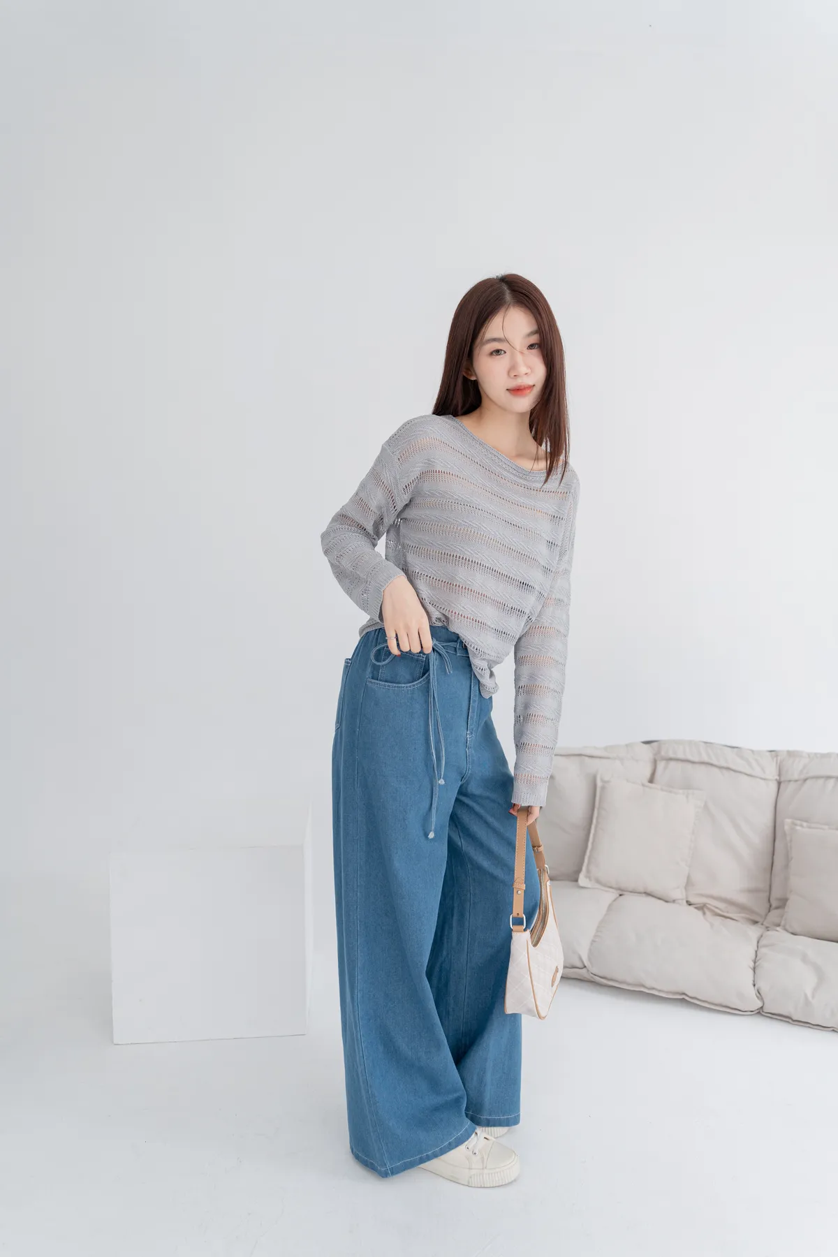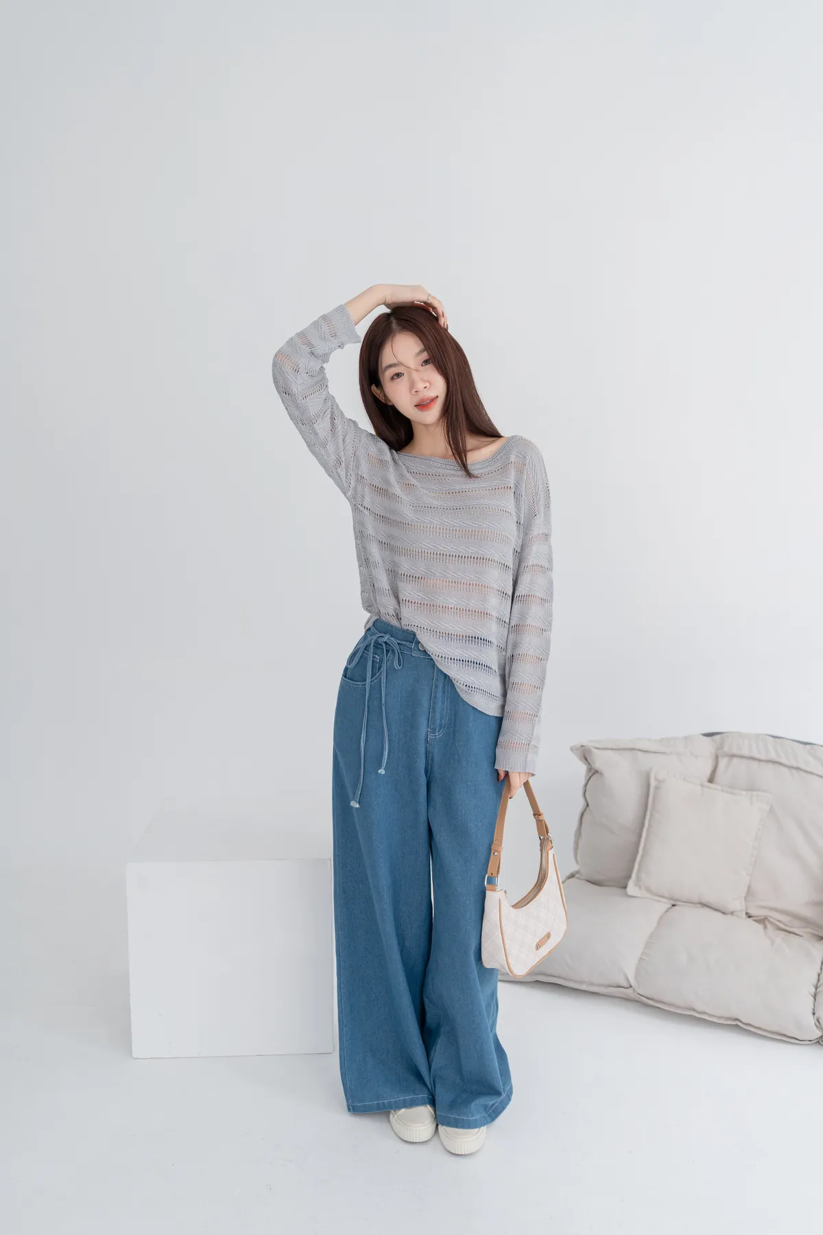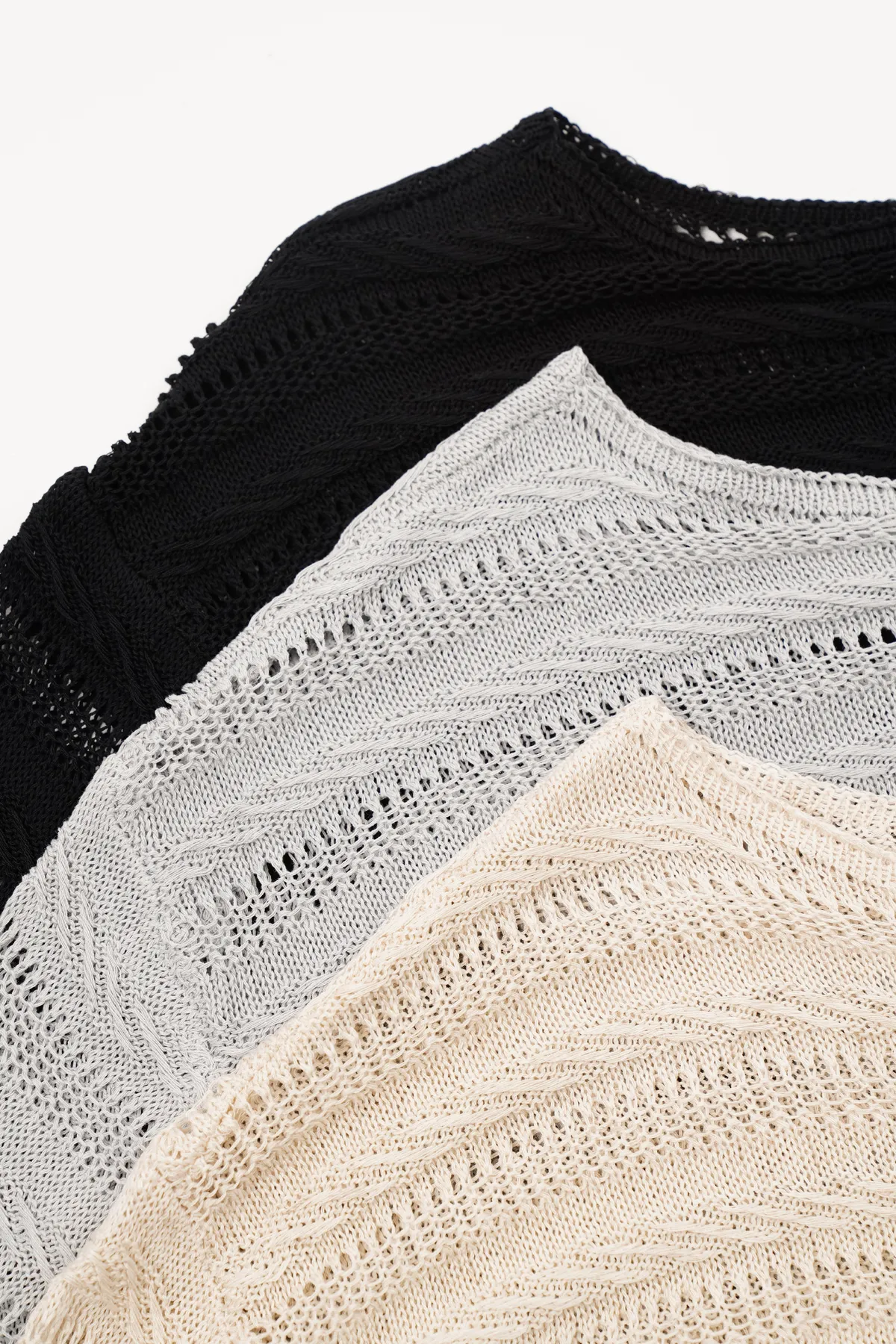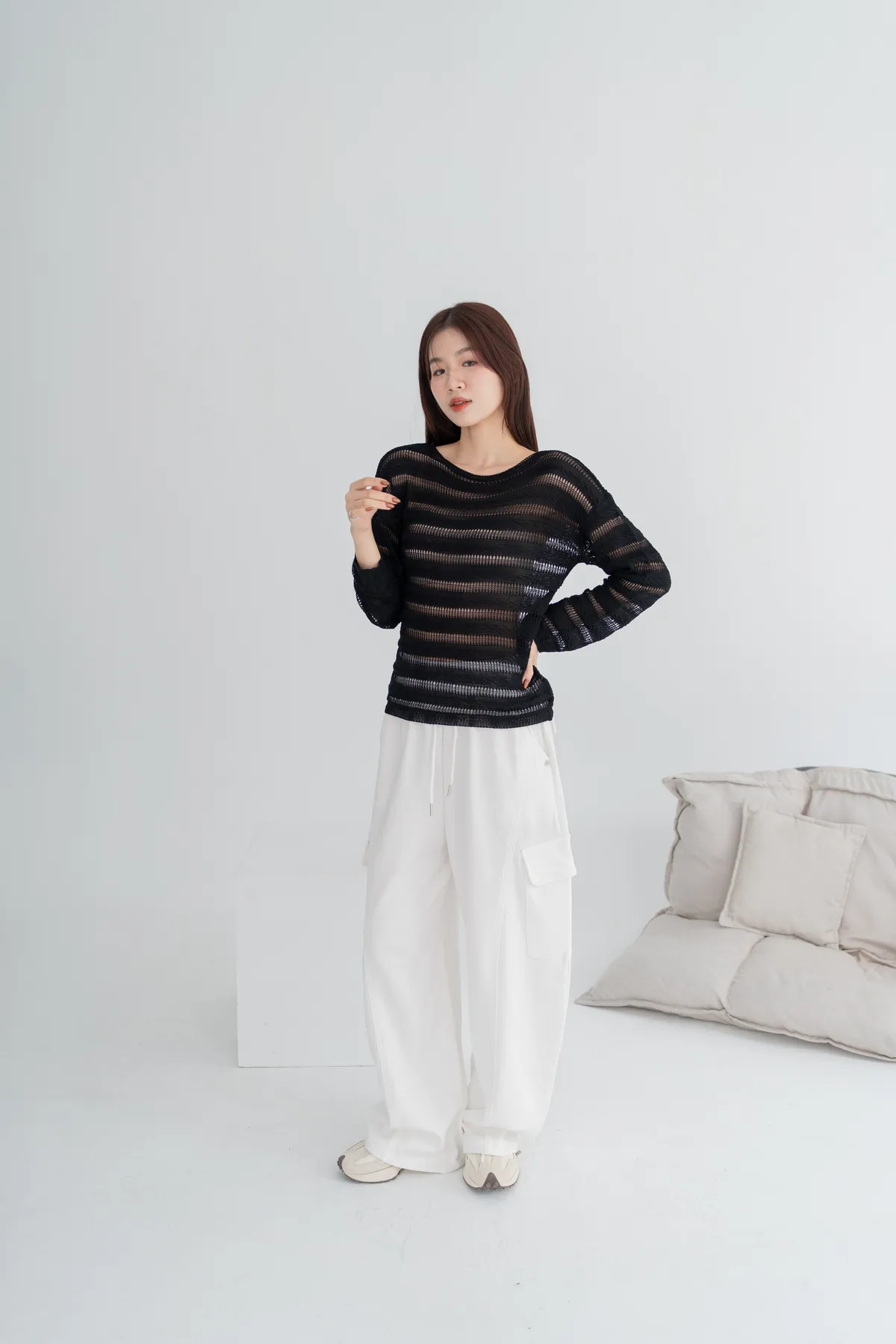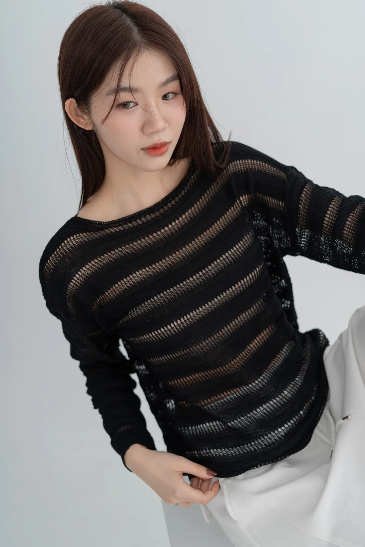 用不同織法編織成今年流行的條紋,寬鬆落肩版型,隨性穿就有慵懶氛圍