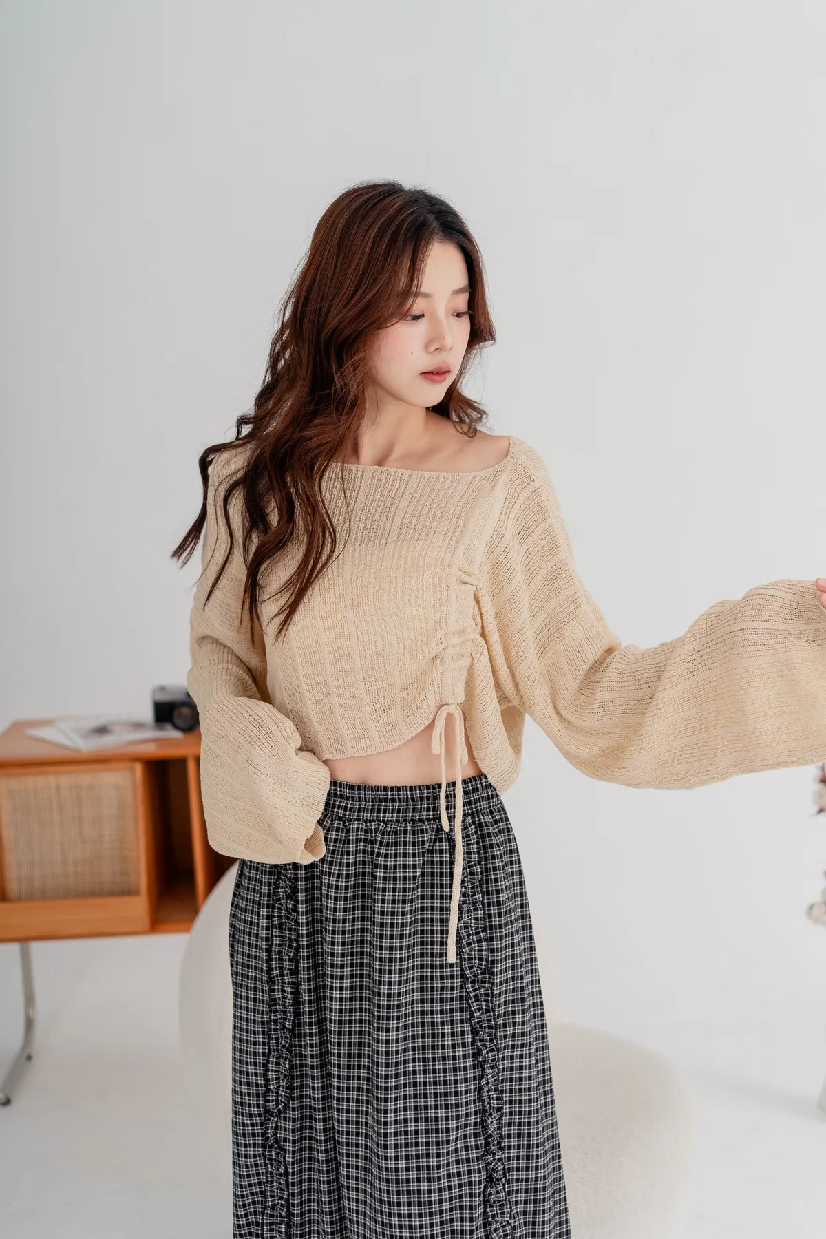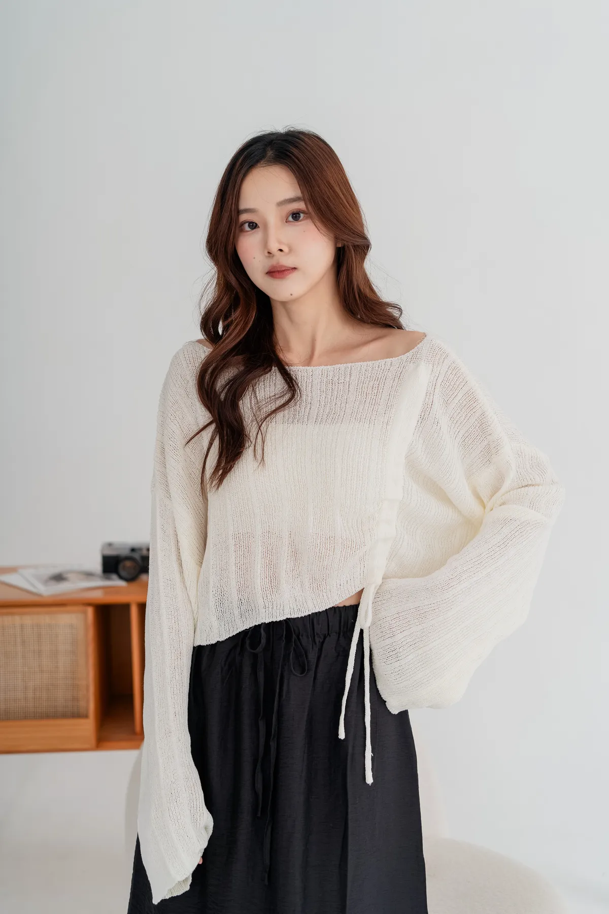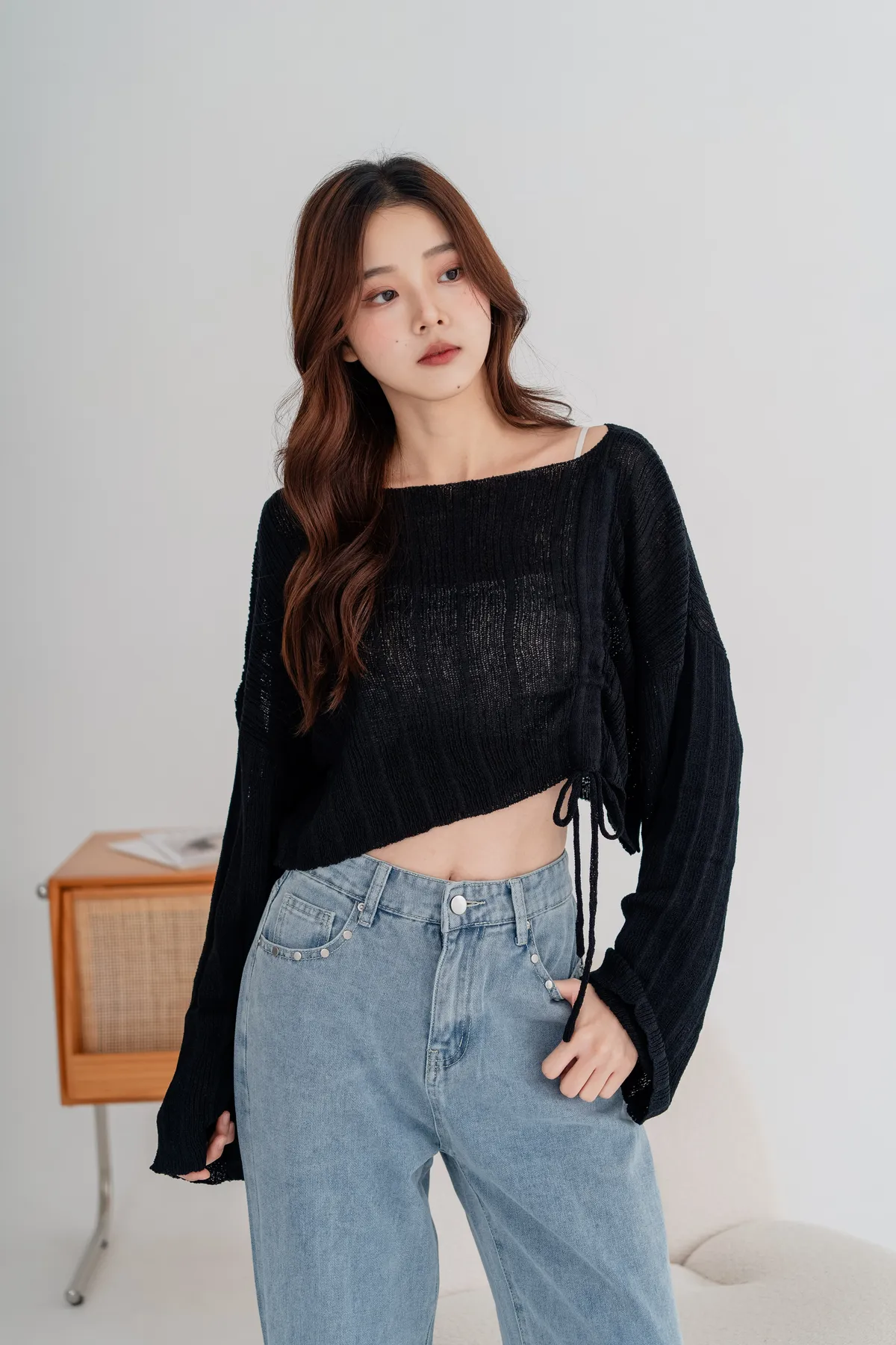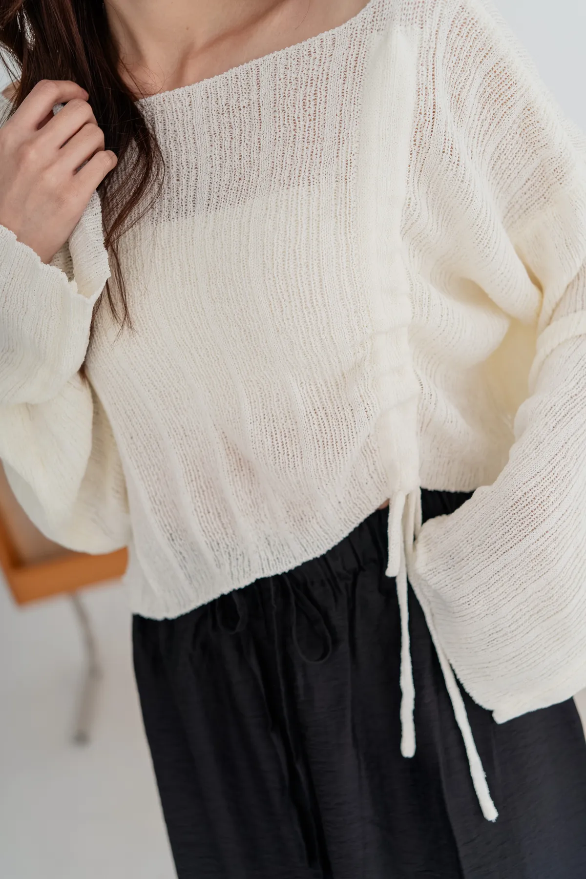 側邊抽繩設計可自由調節長度跟穿搭風格,袖口略帶寬鬆設計,行動間呈現慵懶柔軟氣息。