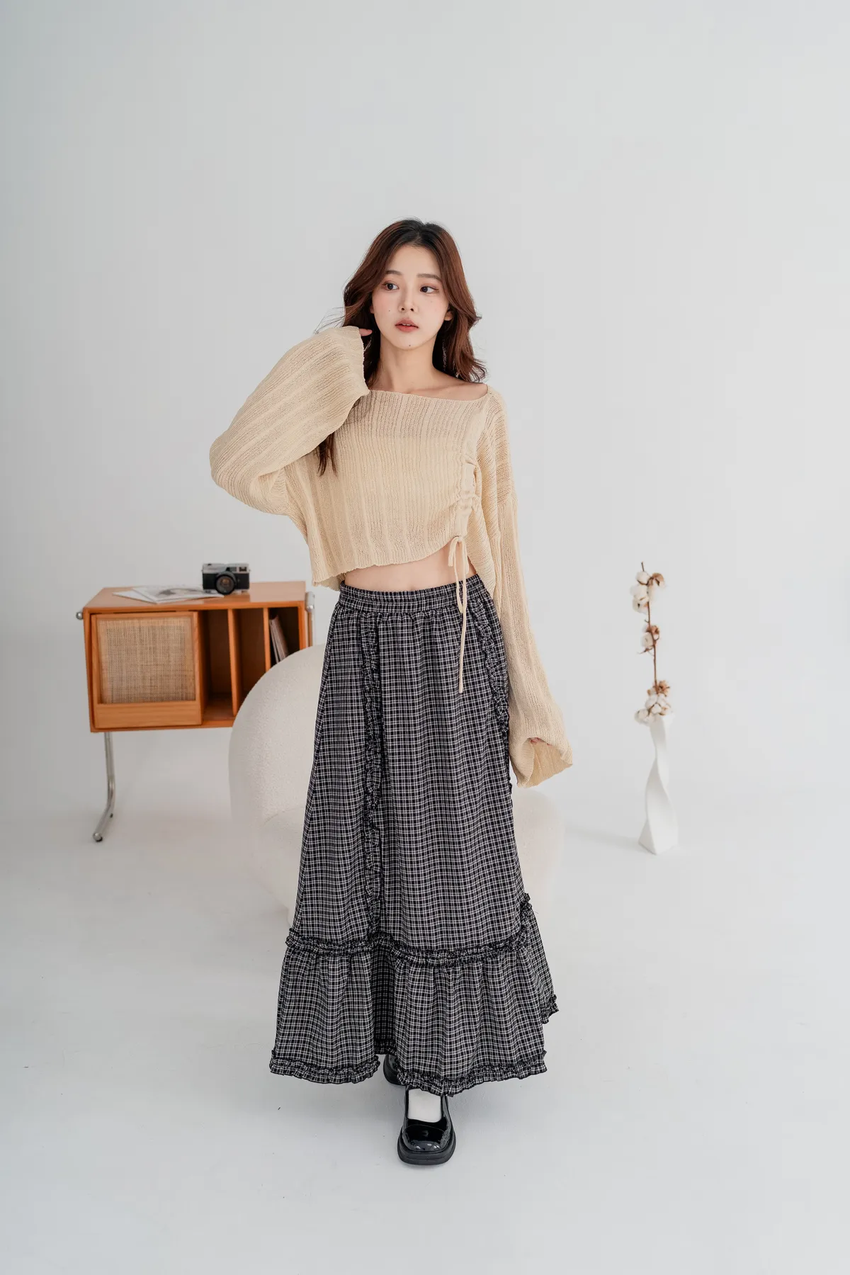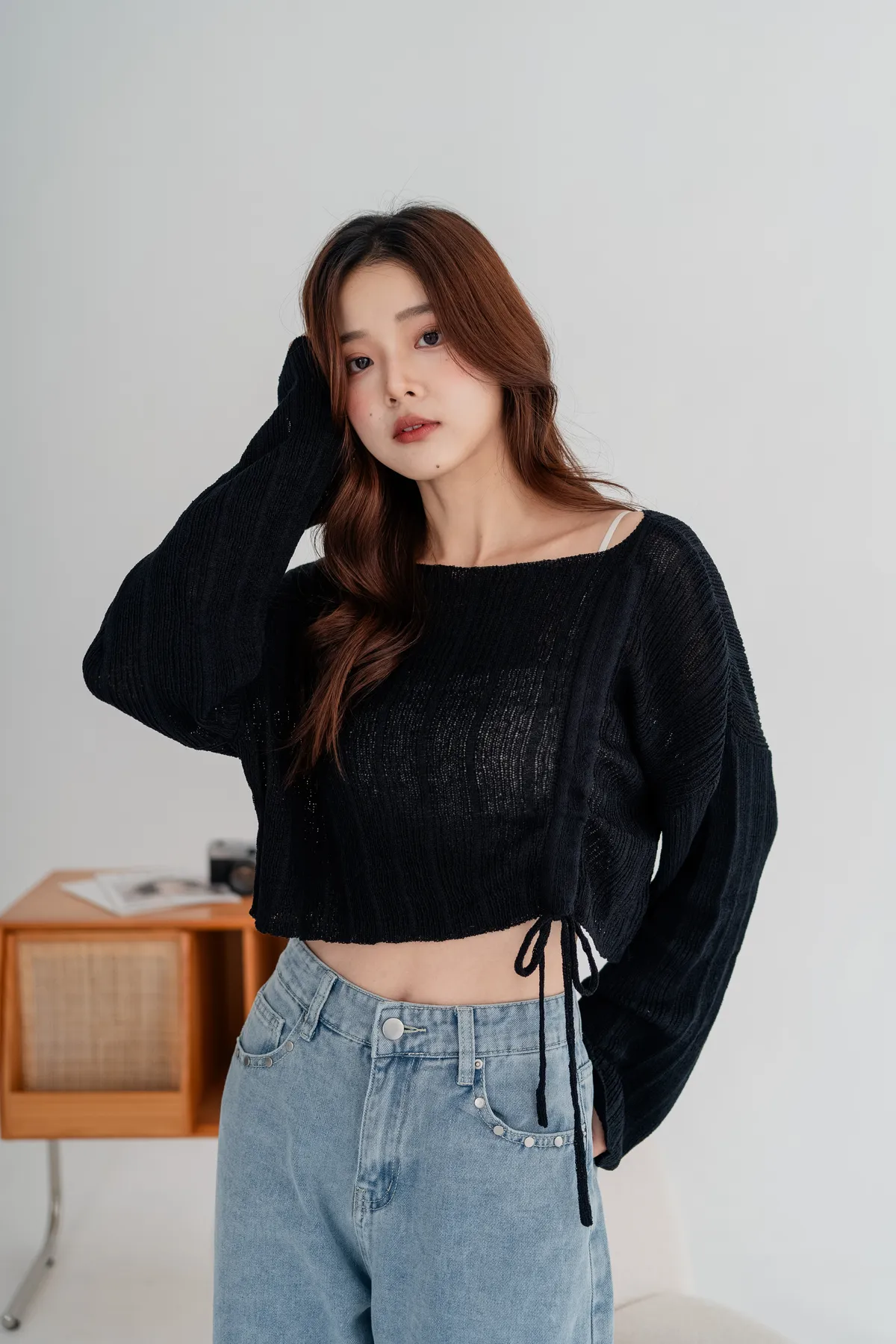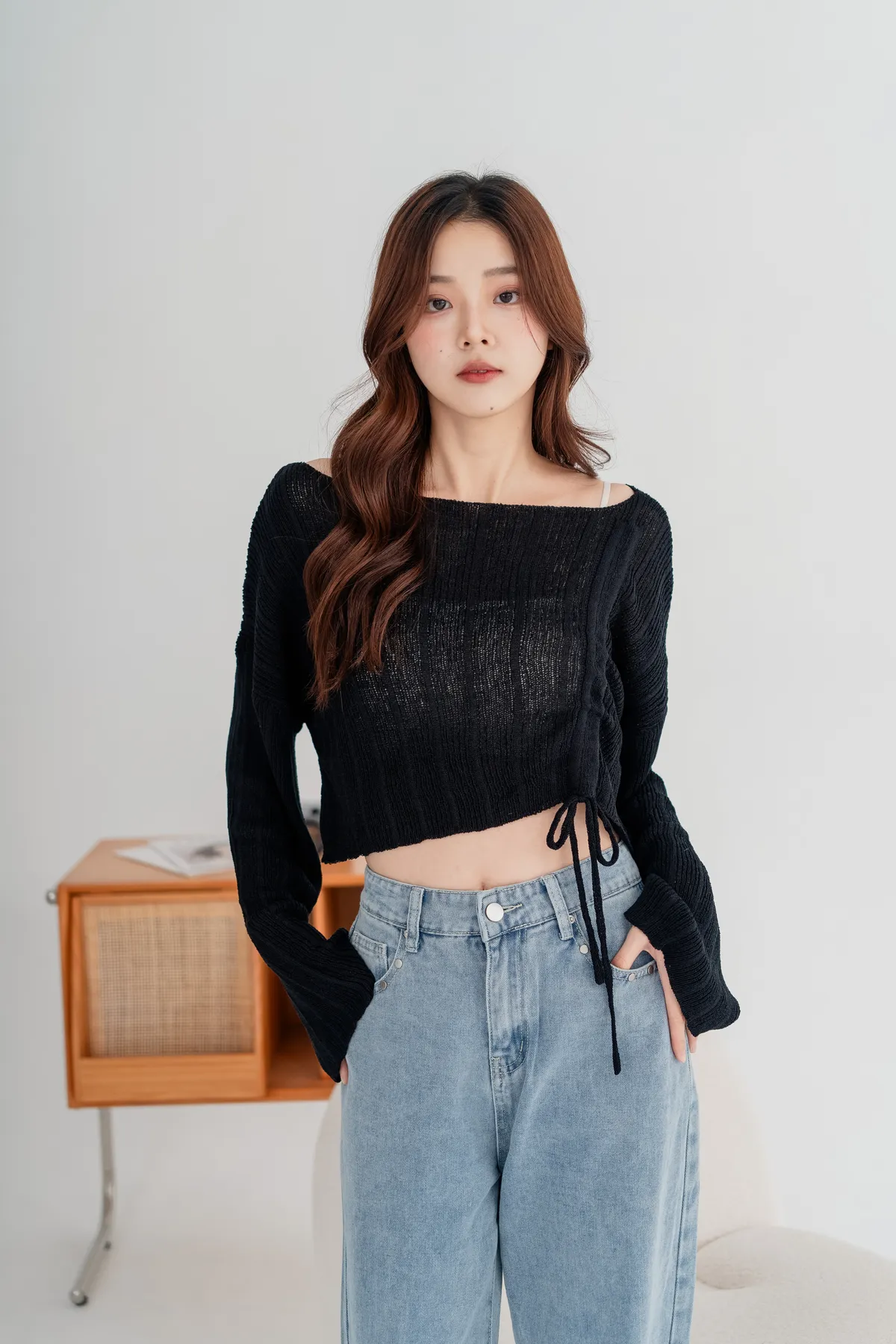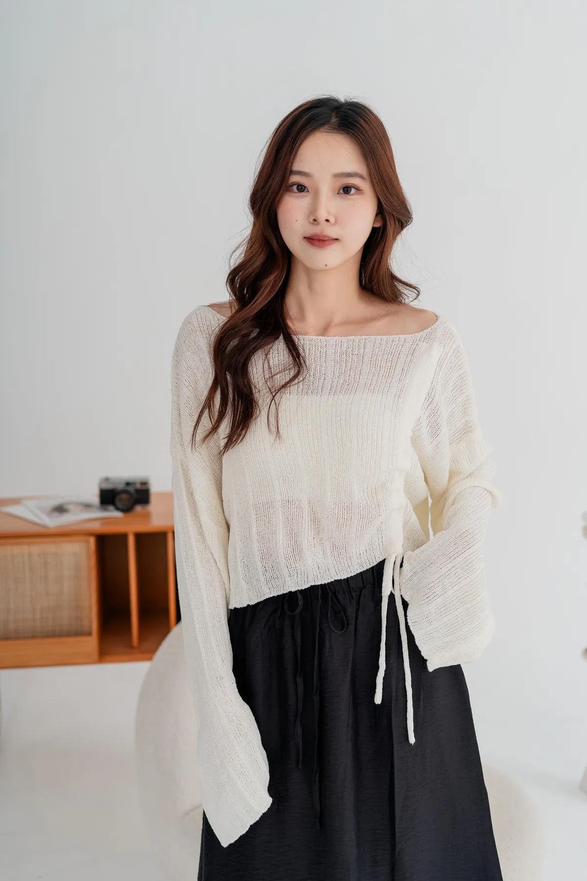 側邊抽繩設計可自由調節長度跟穿搭風格,袖口略帶寬鬆設計,行動間呈現慵懶柔軟氣息。