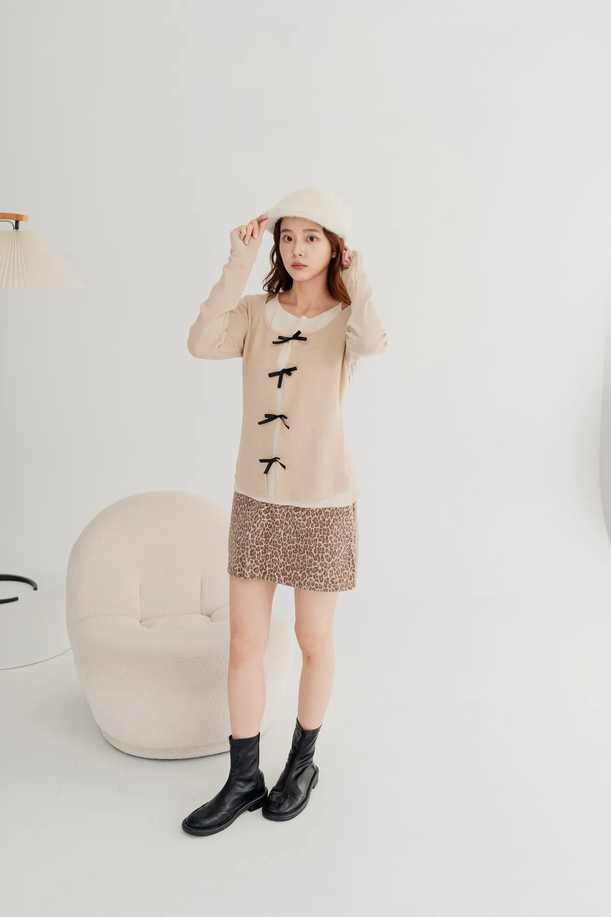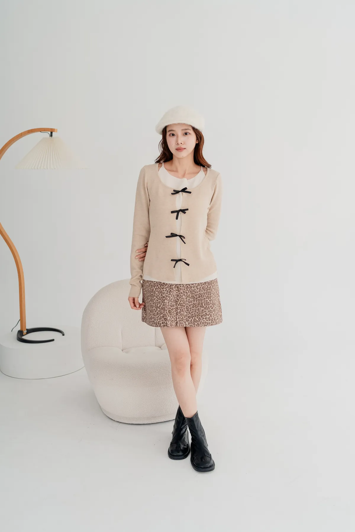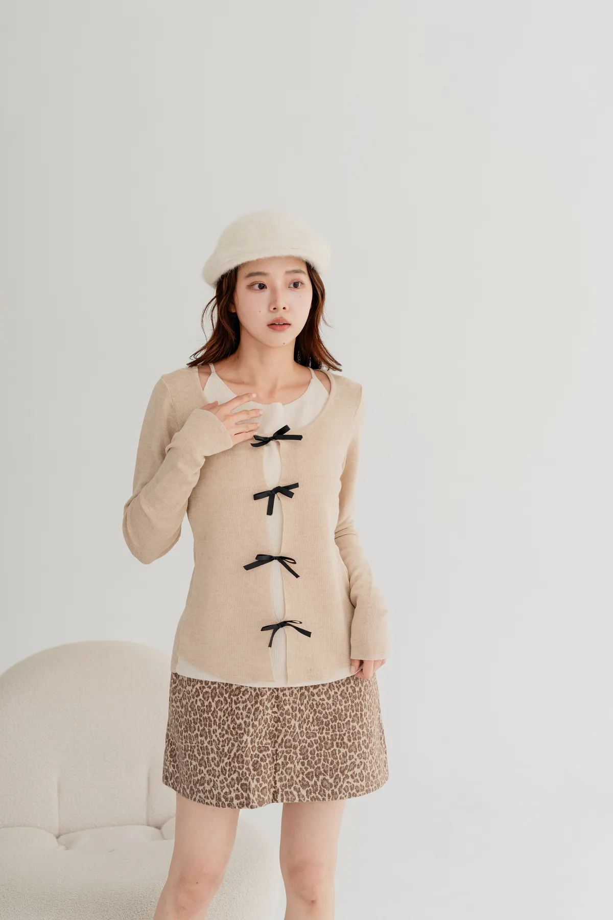 蝴蝶結假兩件針織上衣