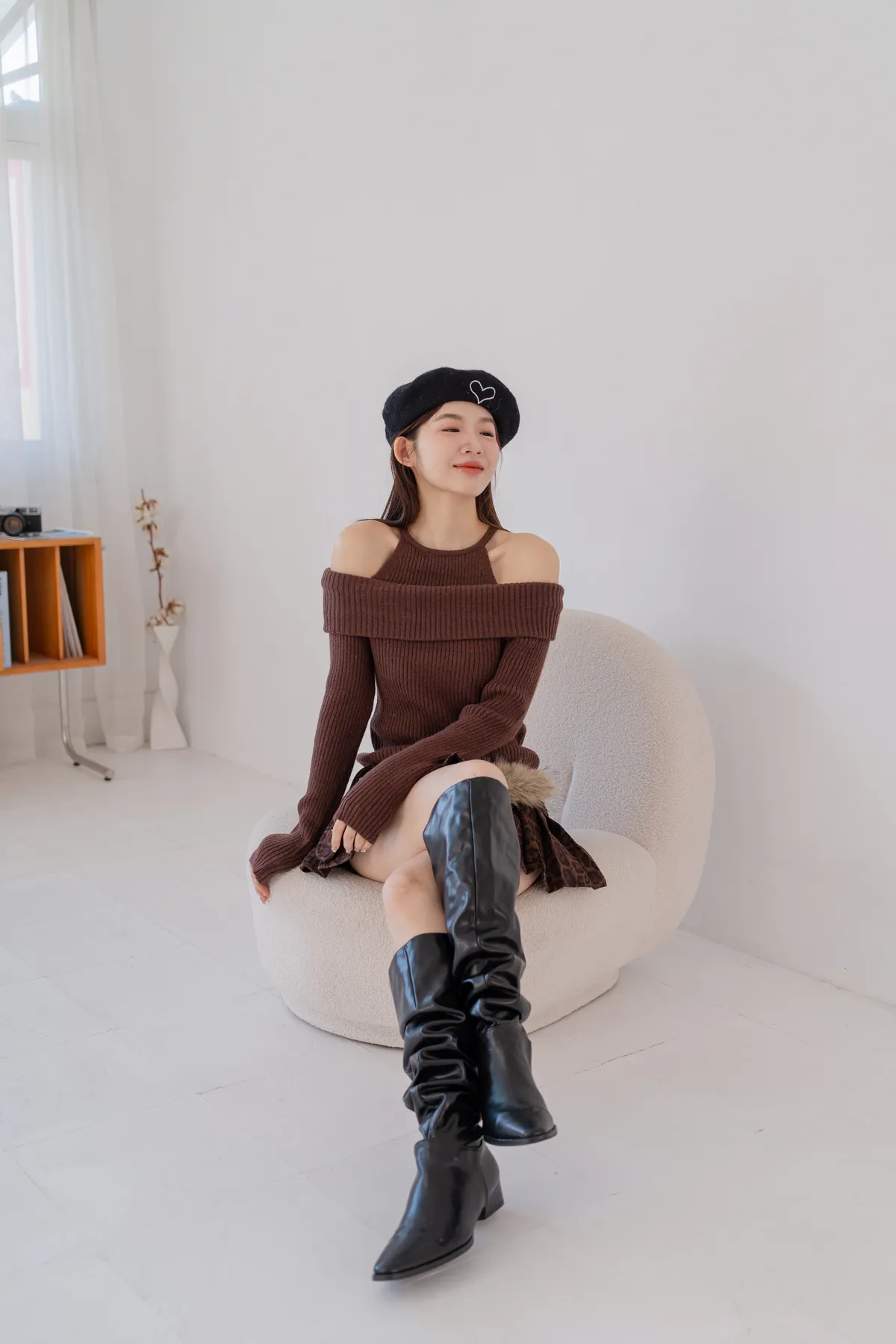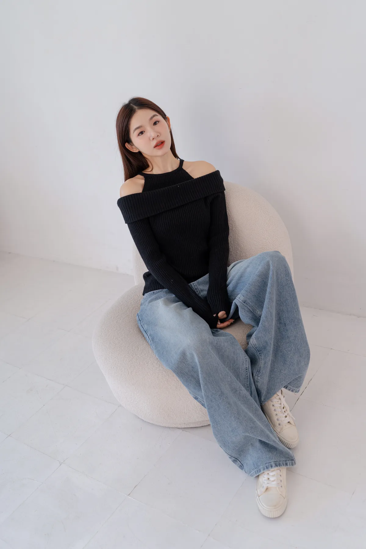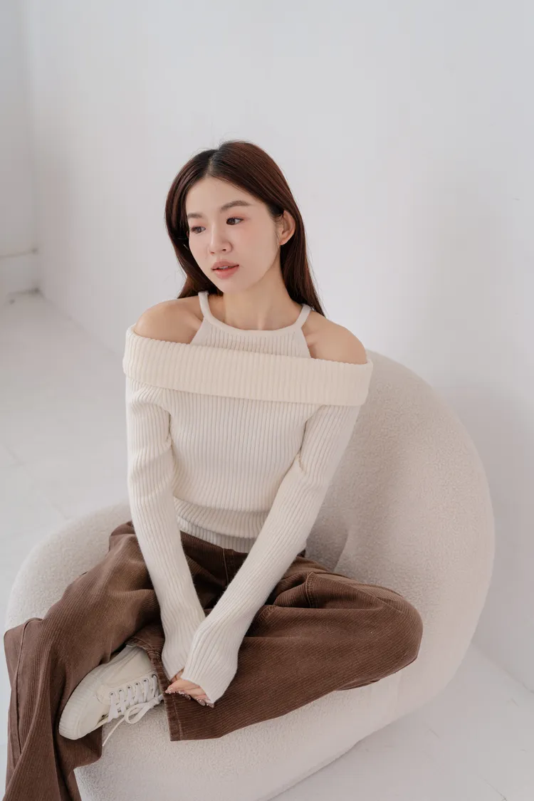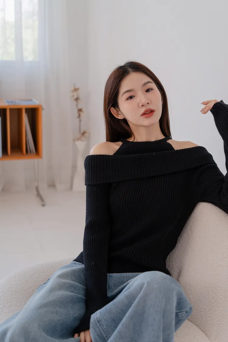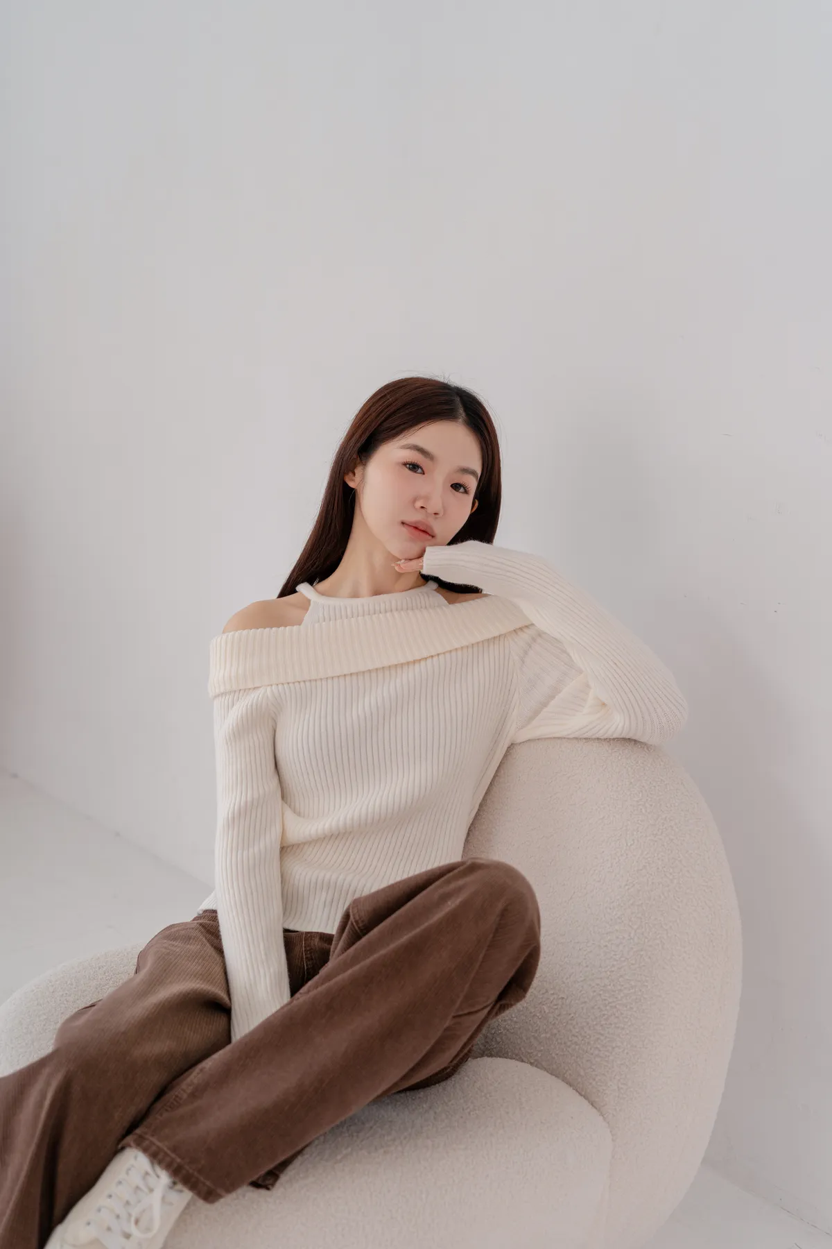 *削肩+露肩剪裁,顯鎖骨不暴露