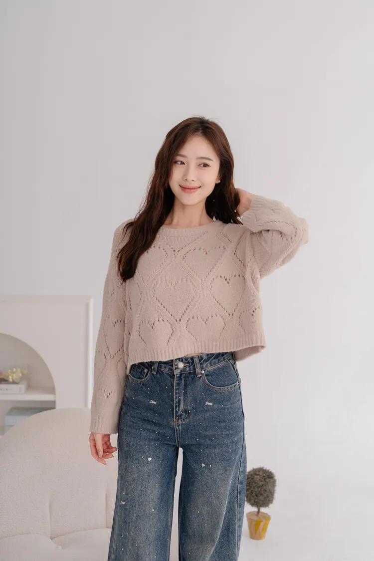 軟Q簍空愛心毛衣