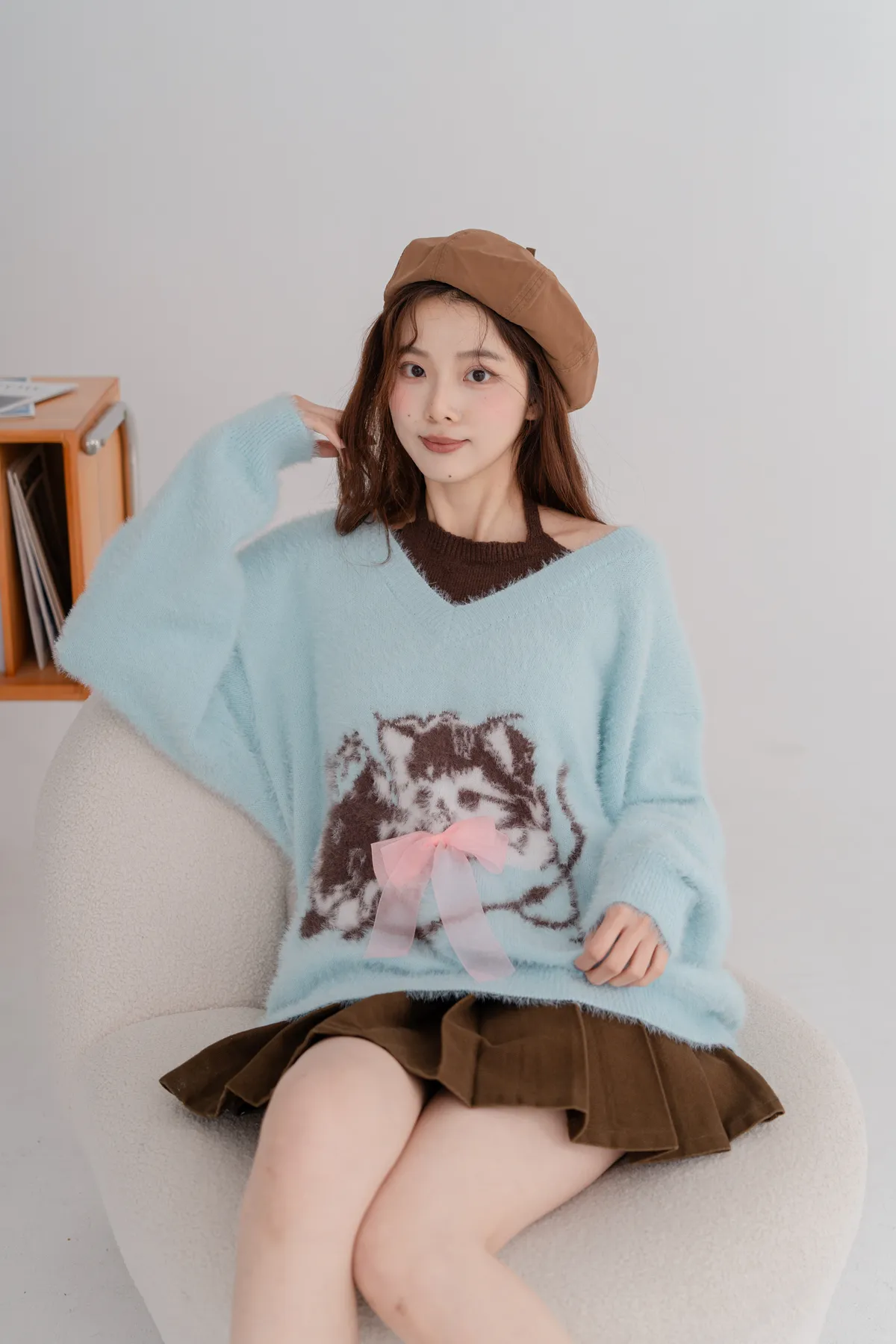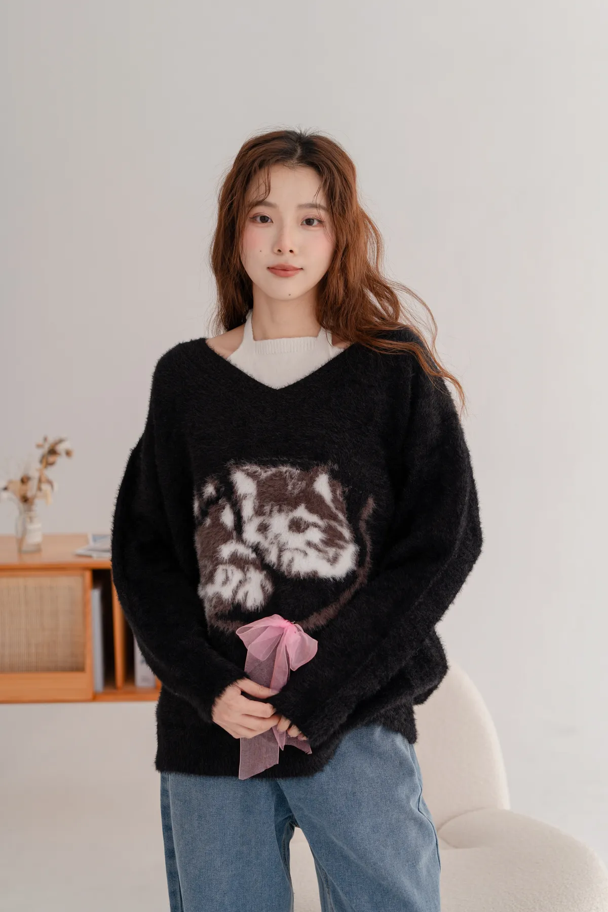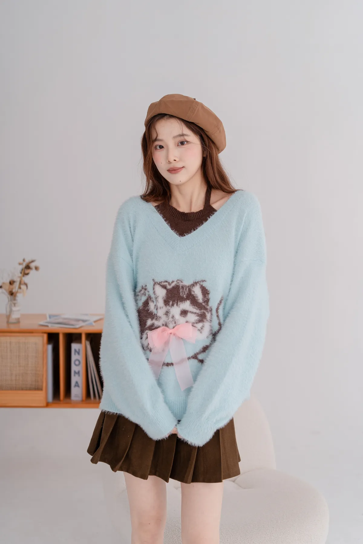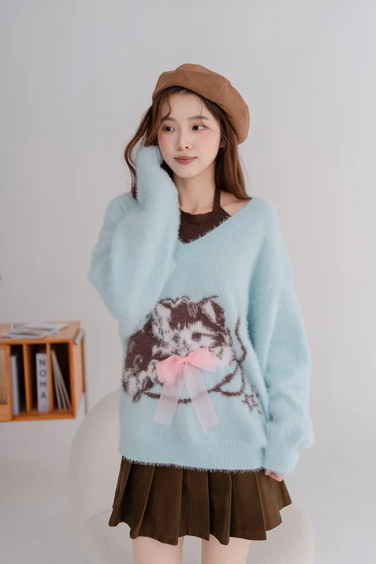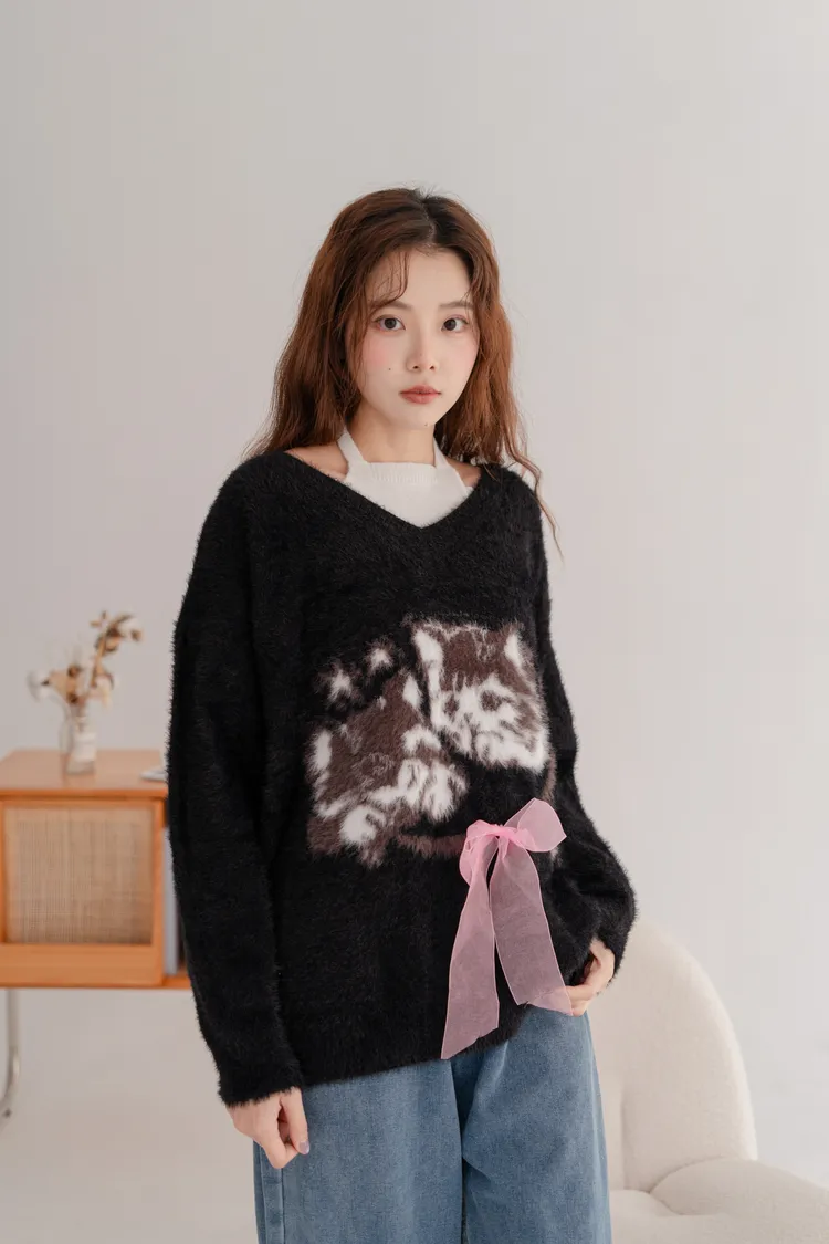 軟柔貓咪假兩件毛衣
