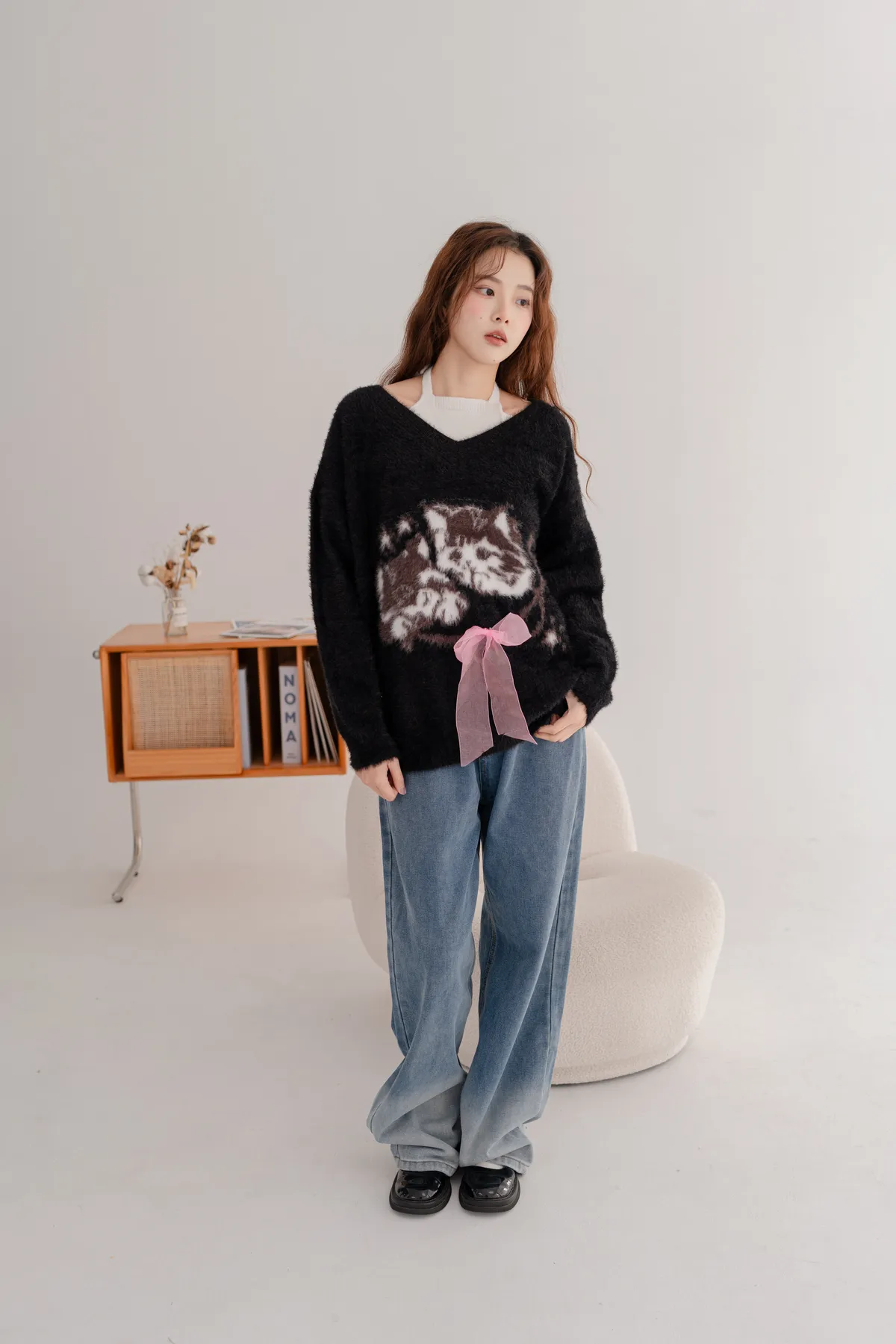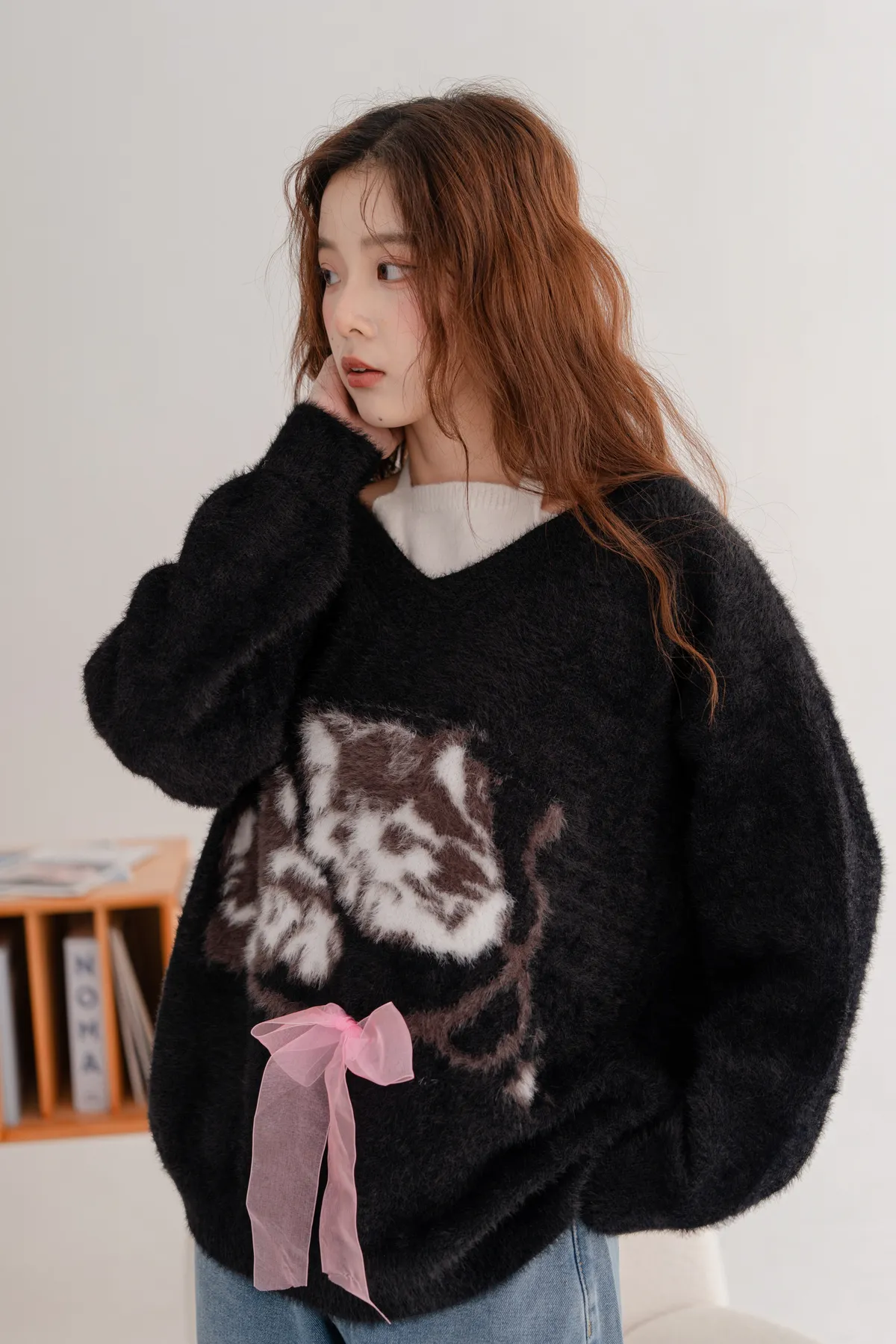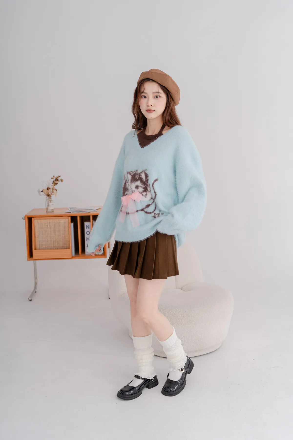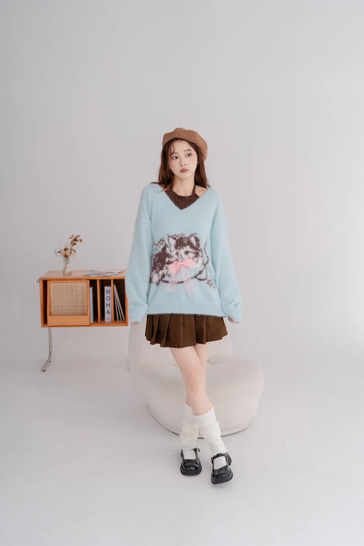 軟柔貓咪假兩件毛衣
