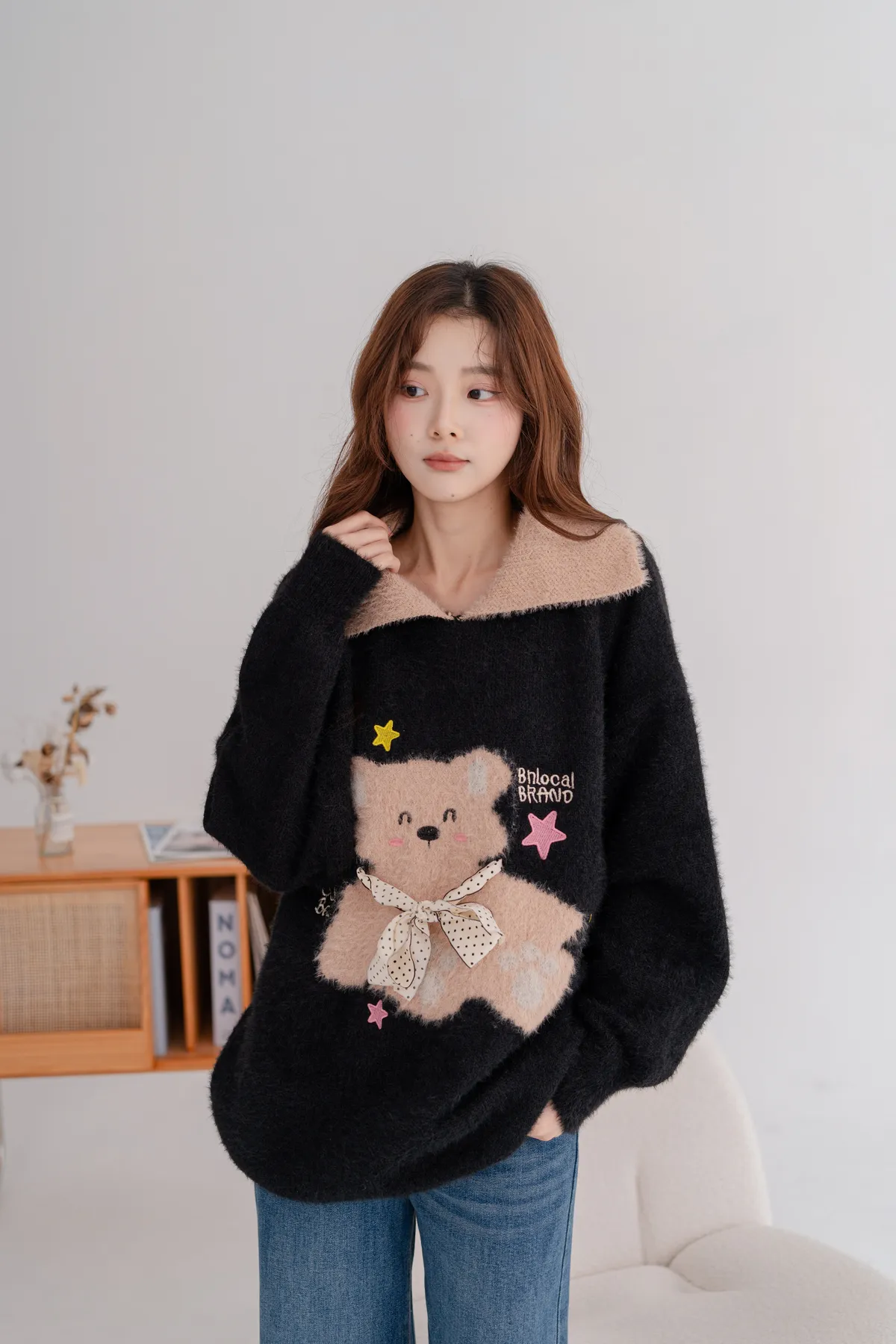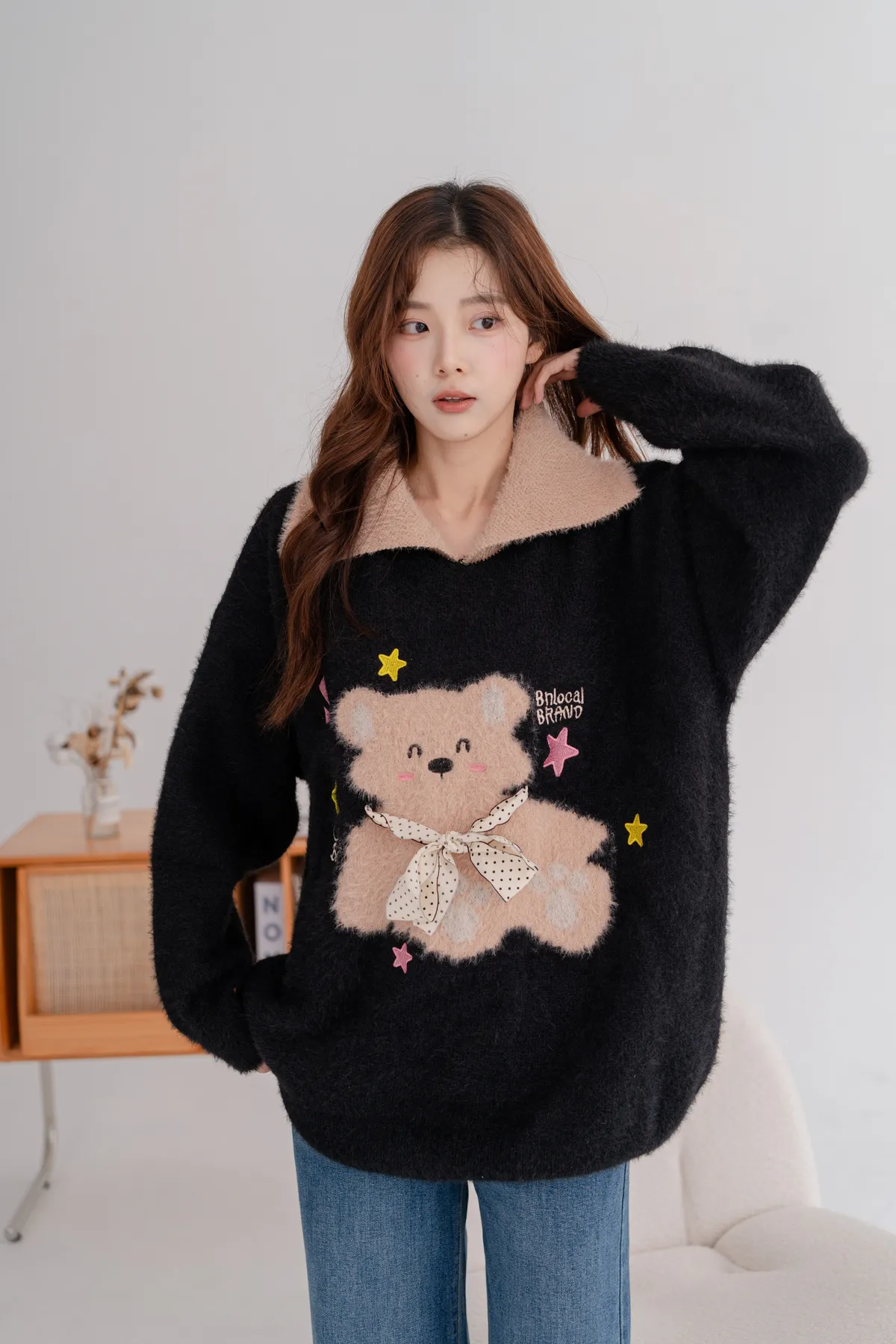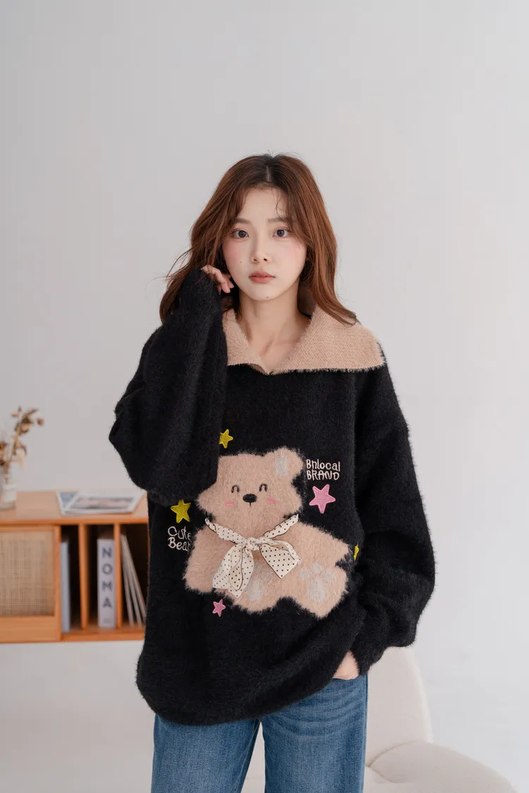 柔軟毛小熊寬鬆毛衣