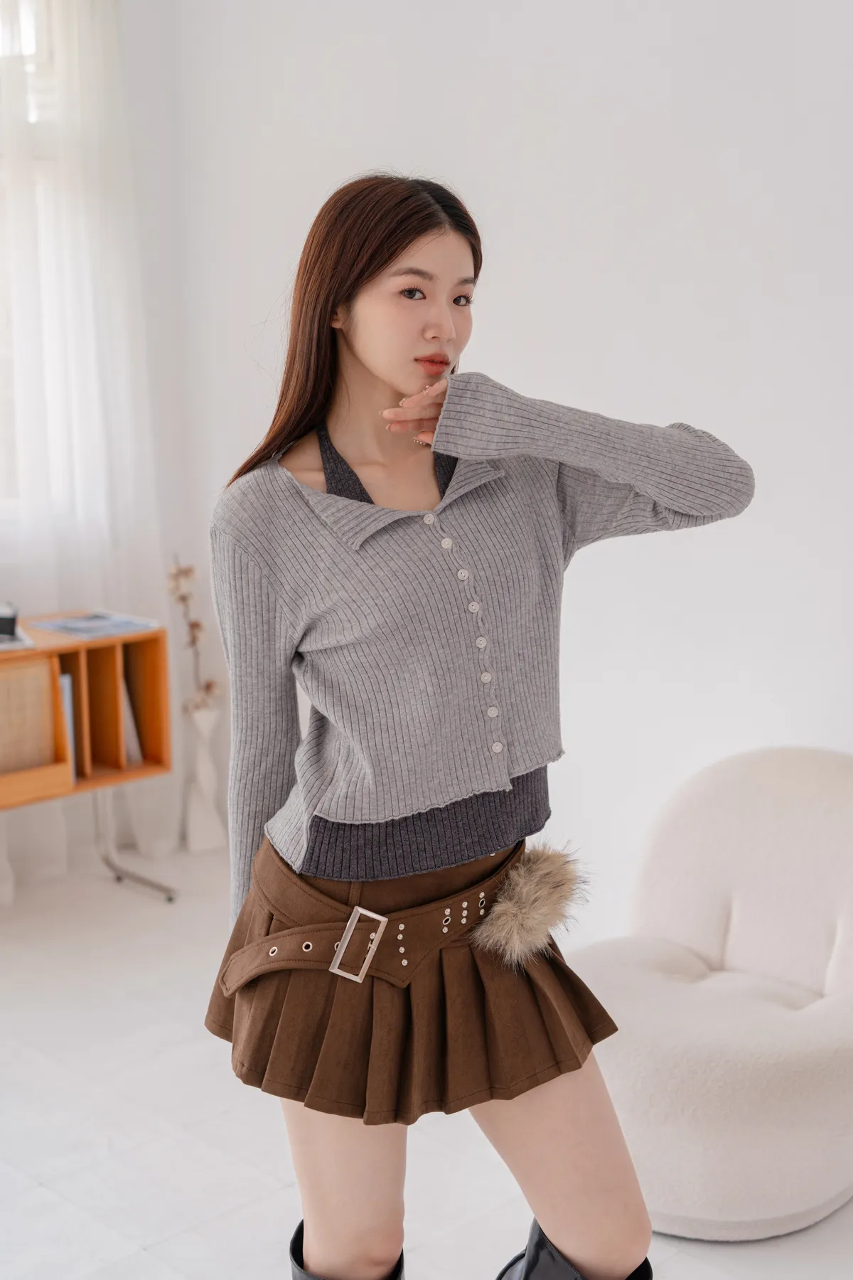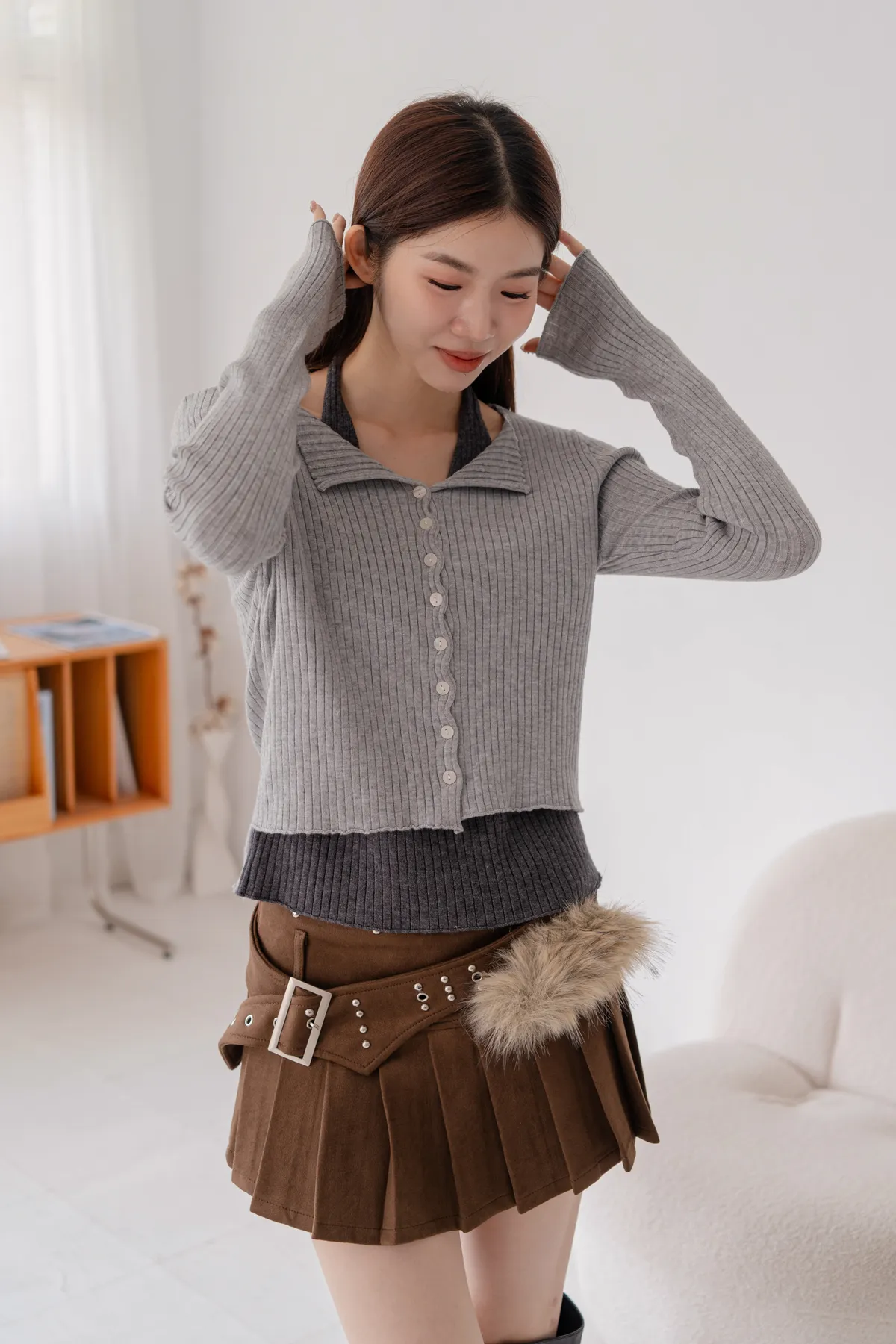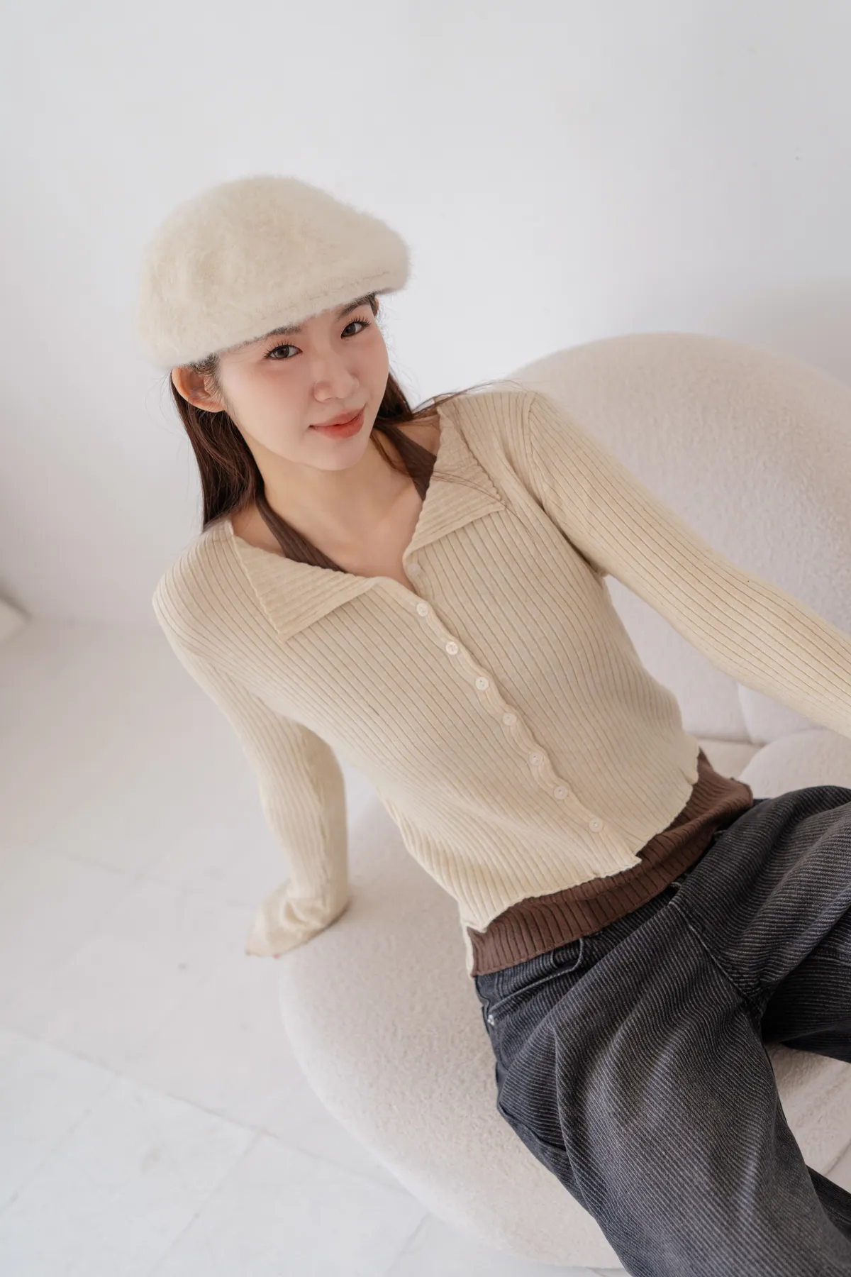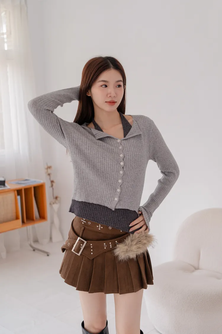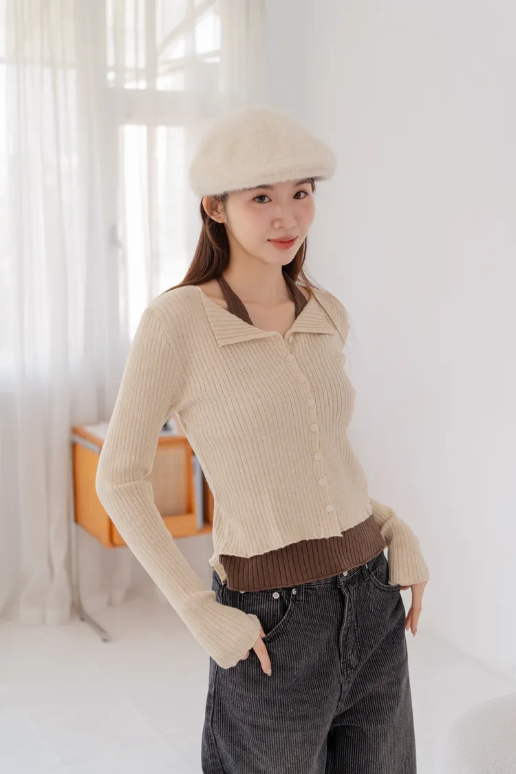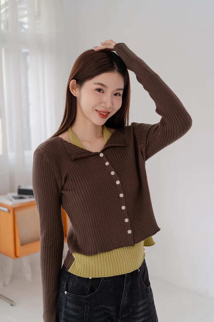 *小翻領+排釦設計,法式感加分