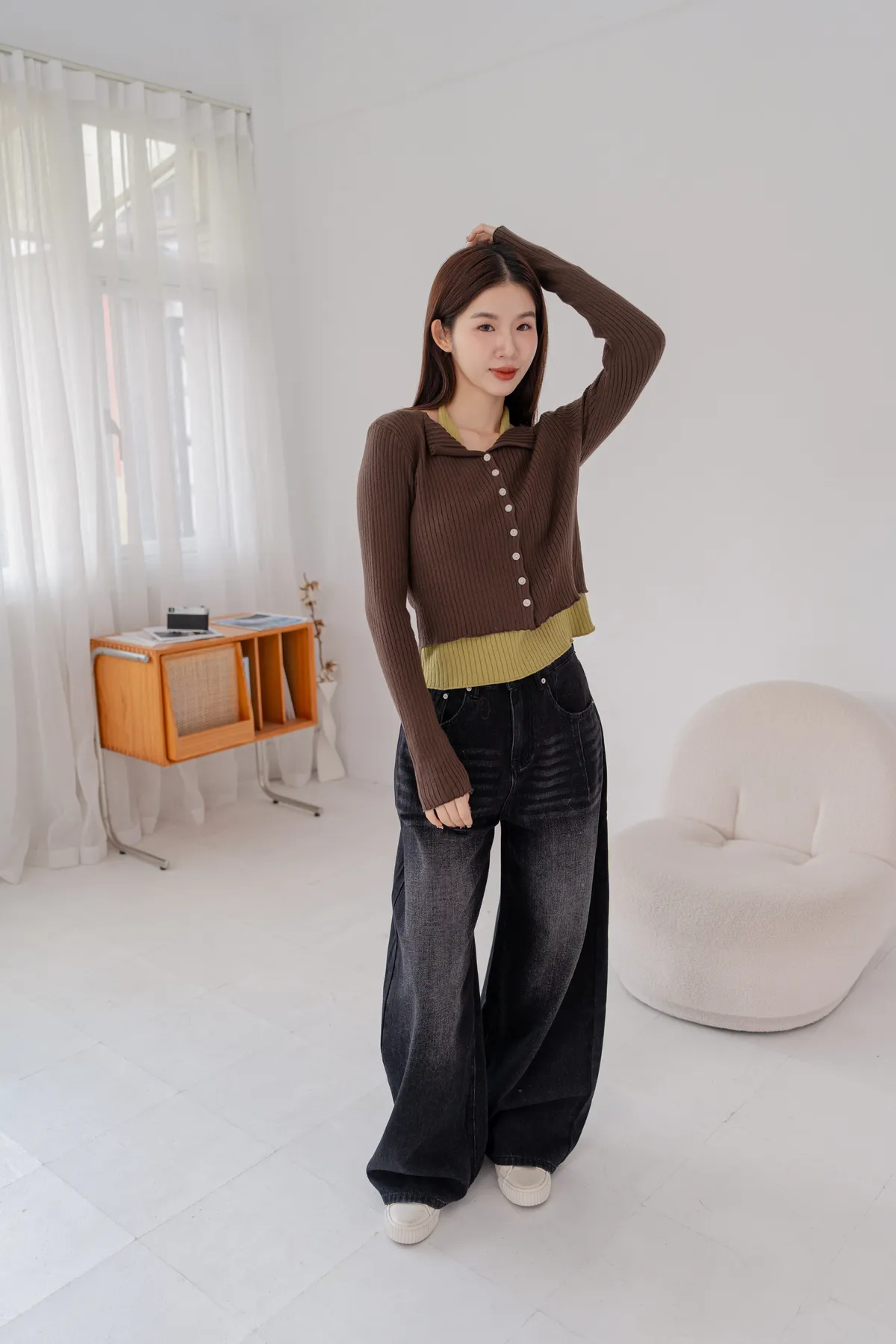 *袖長微延伸,修飾手臂線條