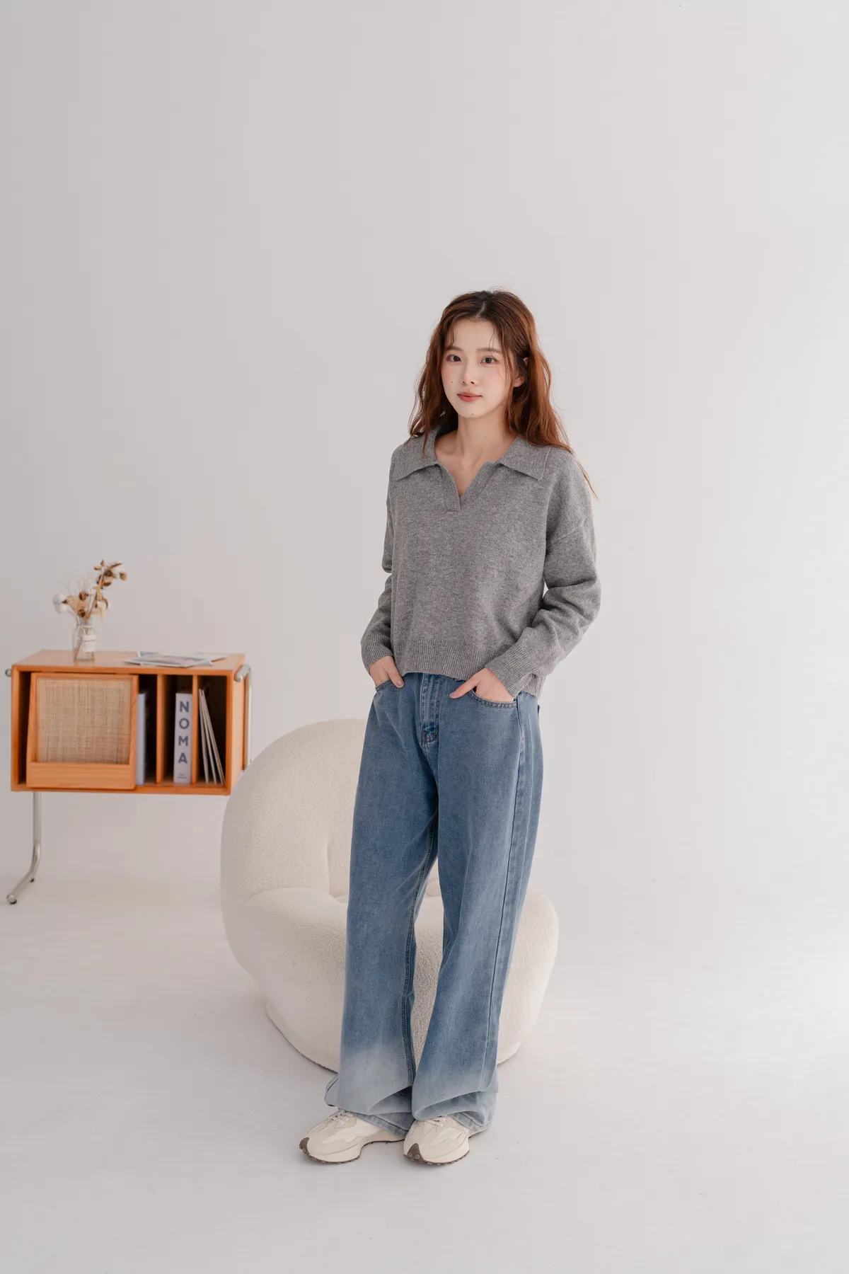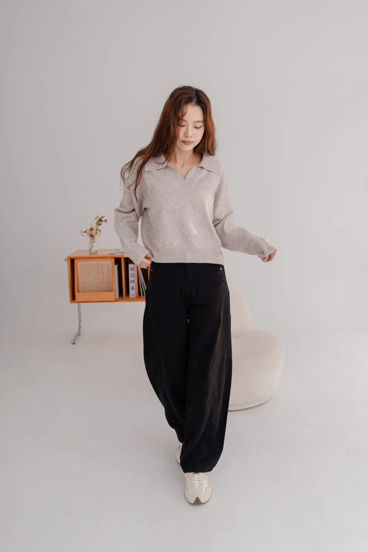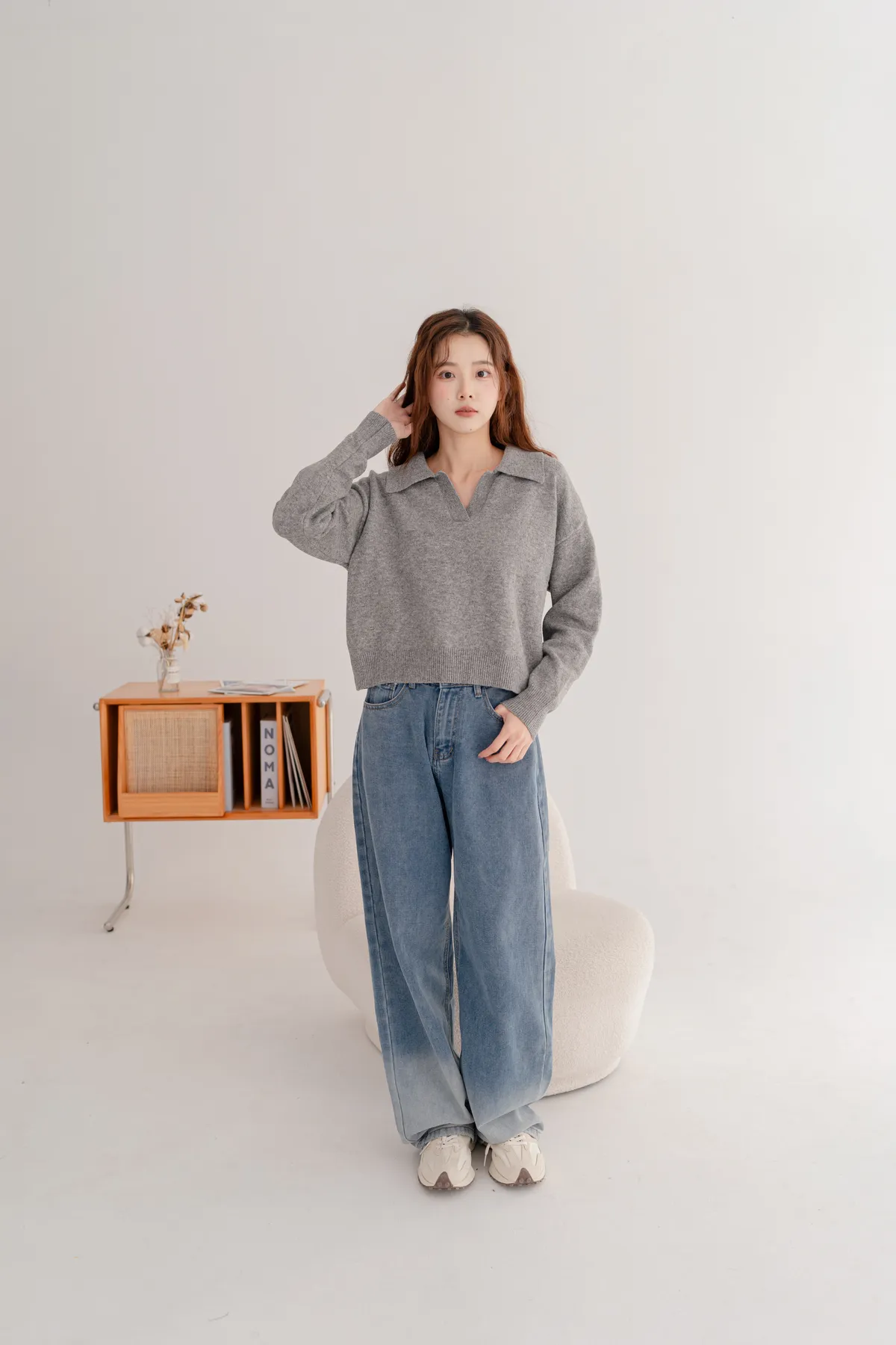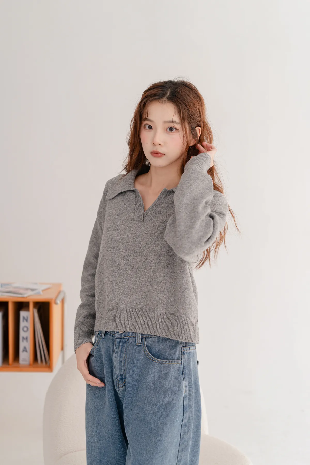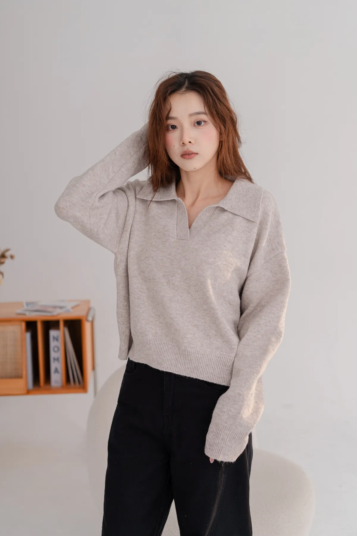 翻領短版素面毛衣