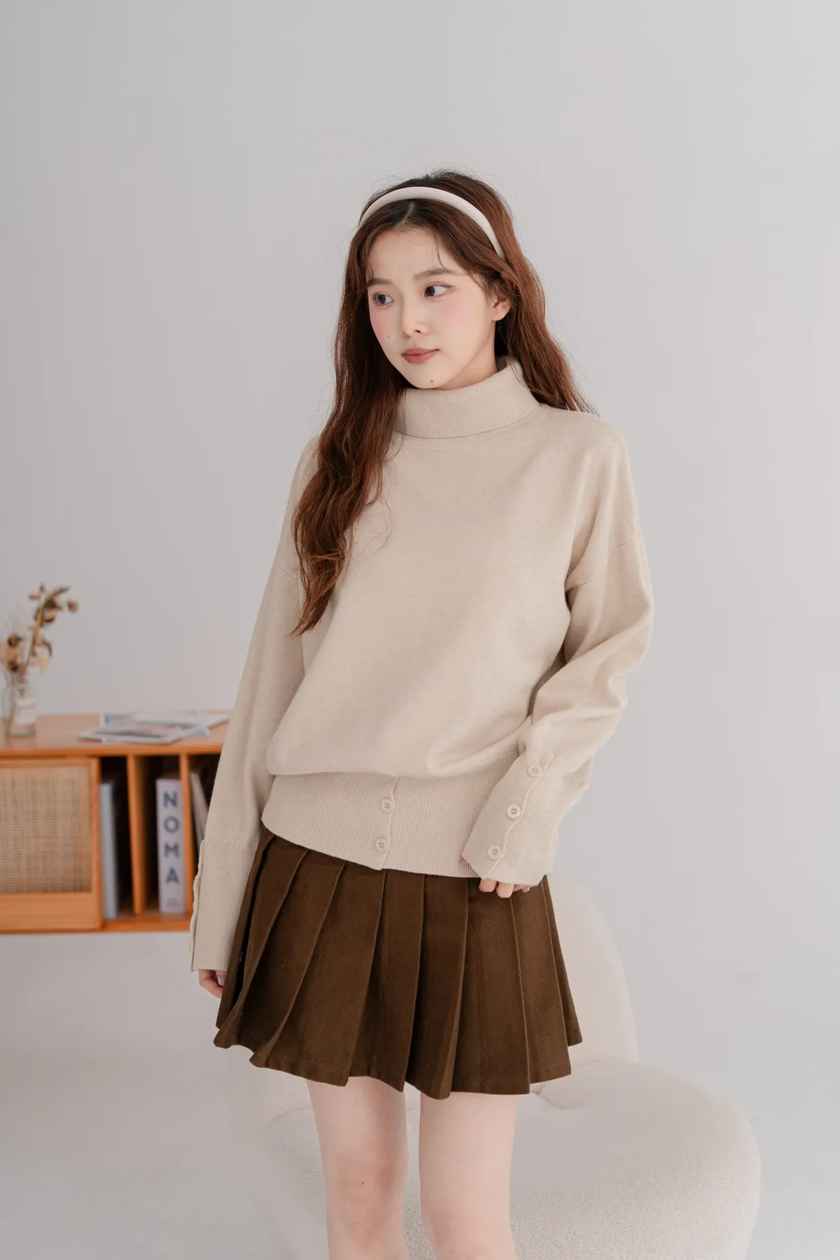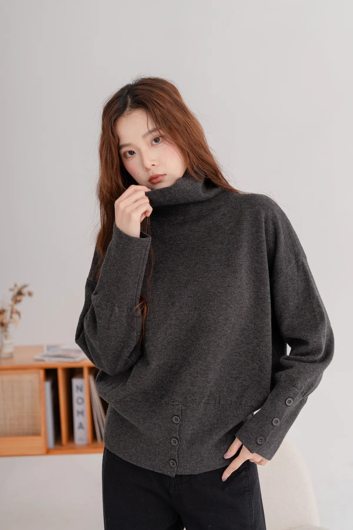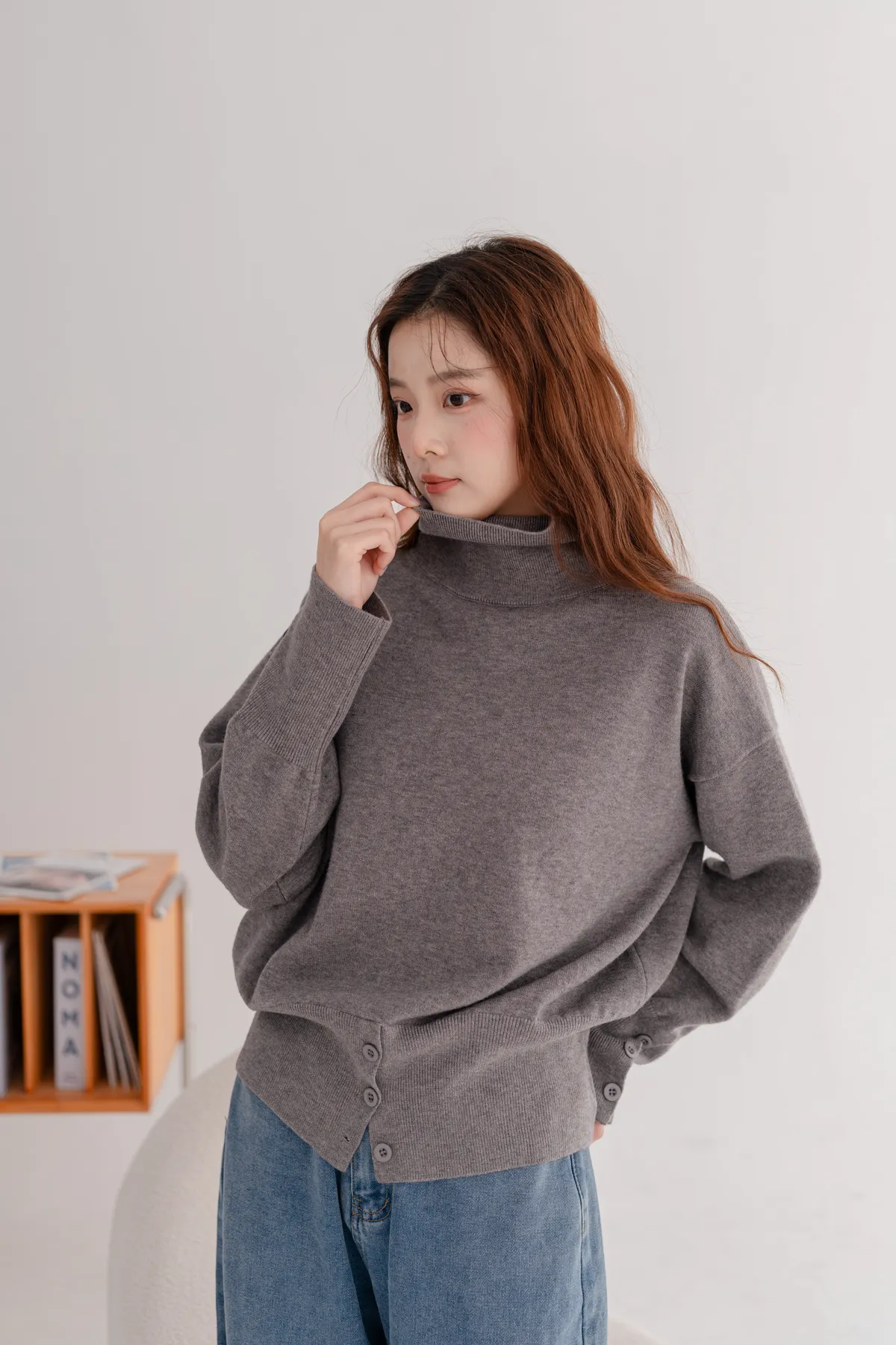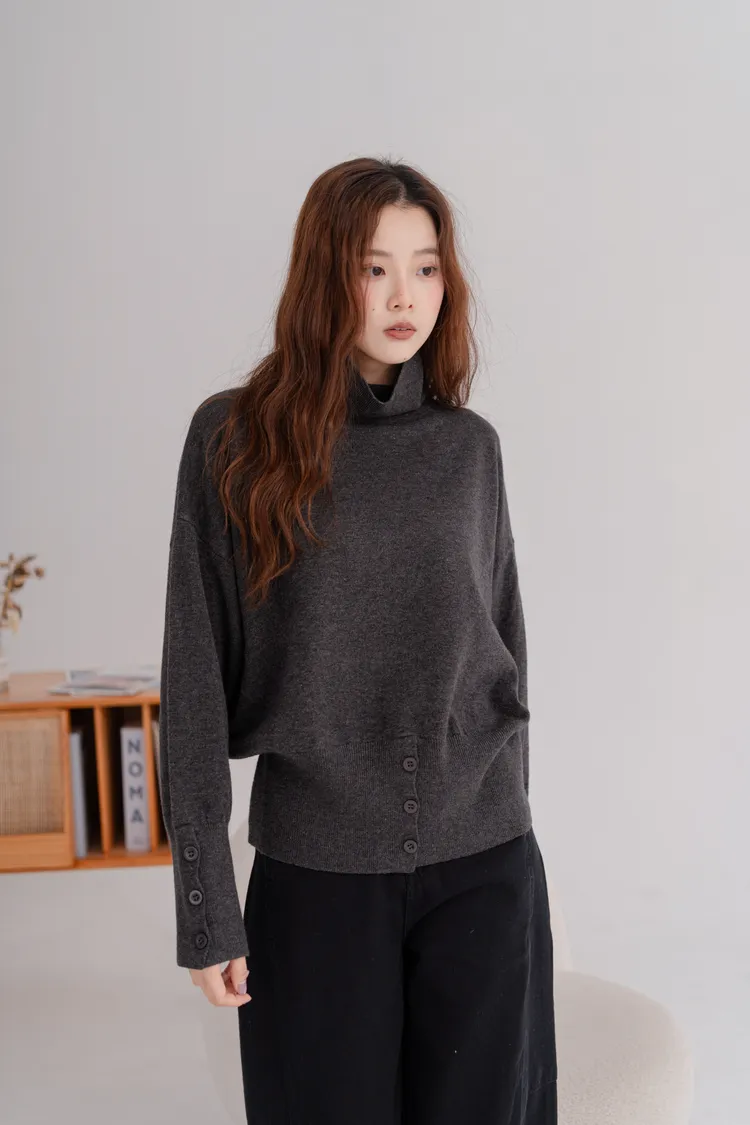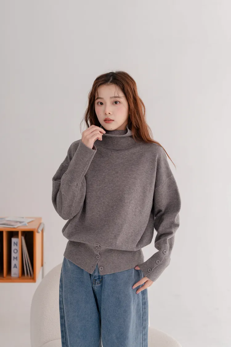 高領下排釦造型毛衣
