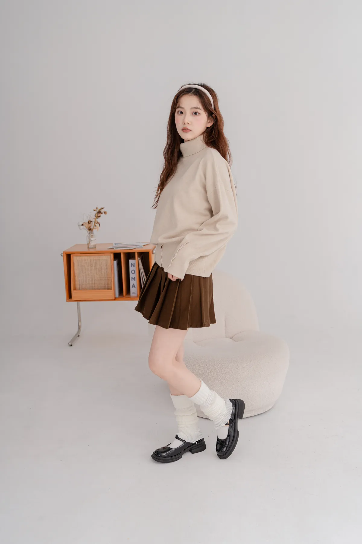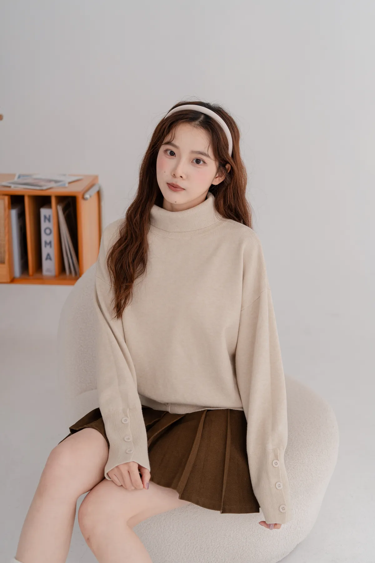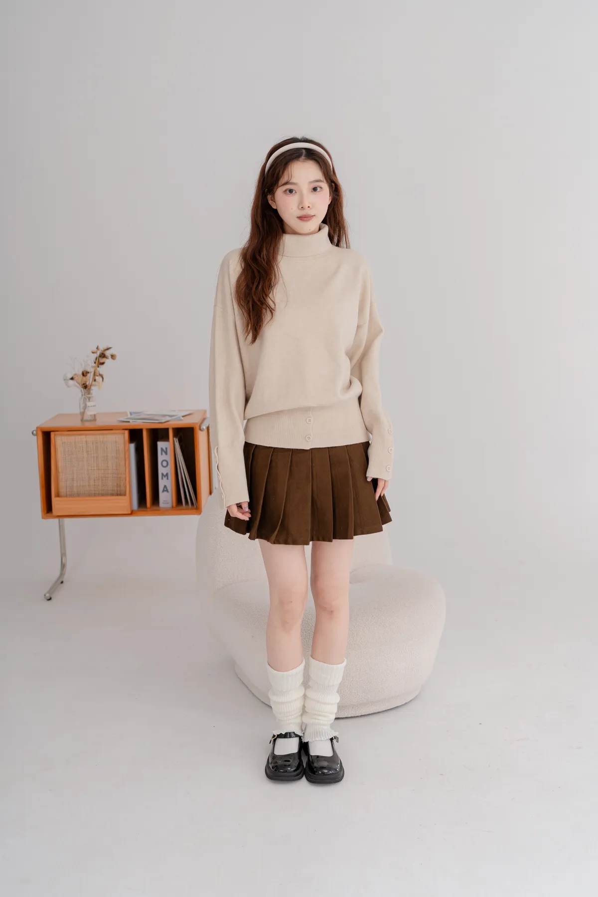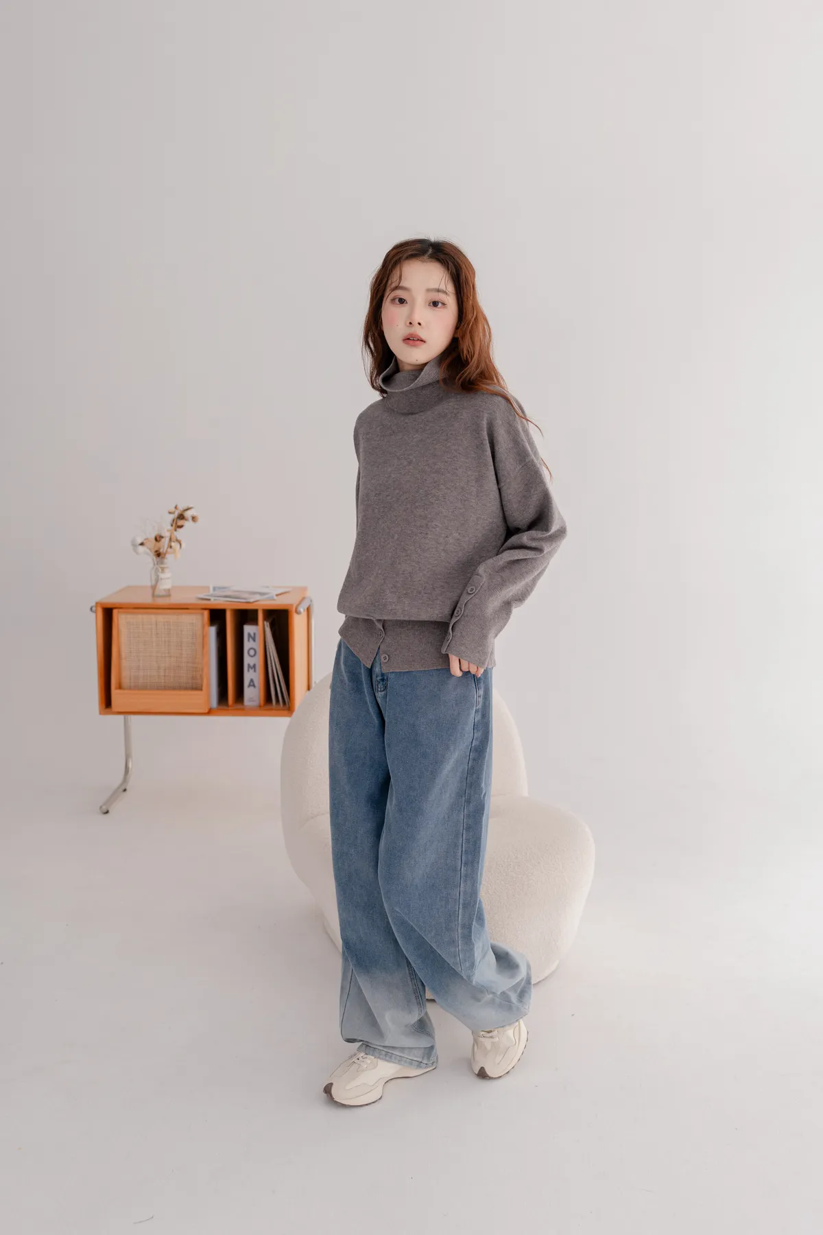 高領下排釦造型毛衣