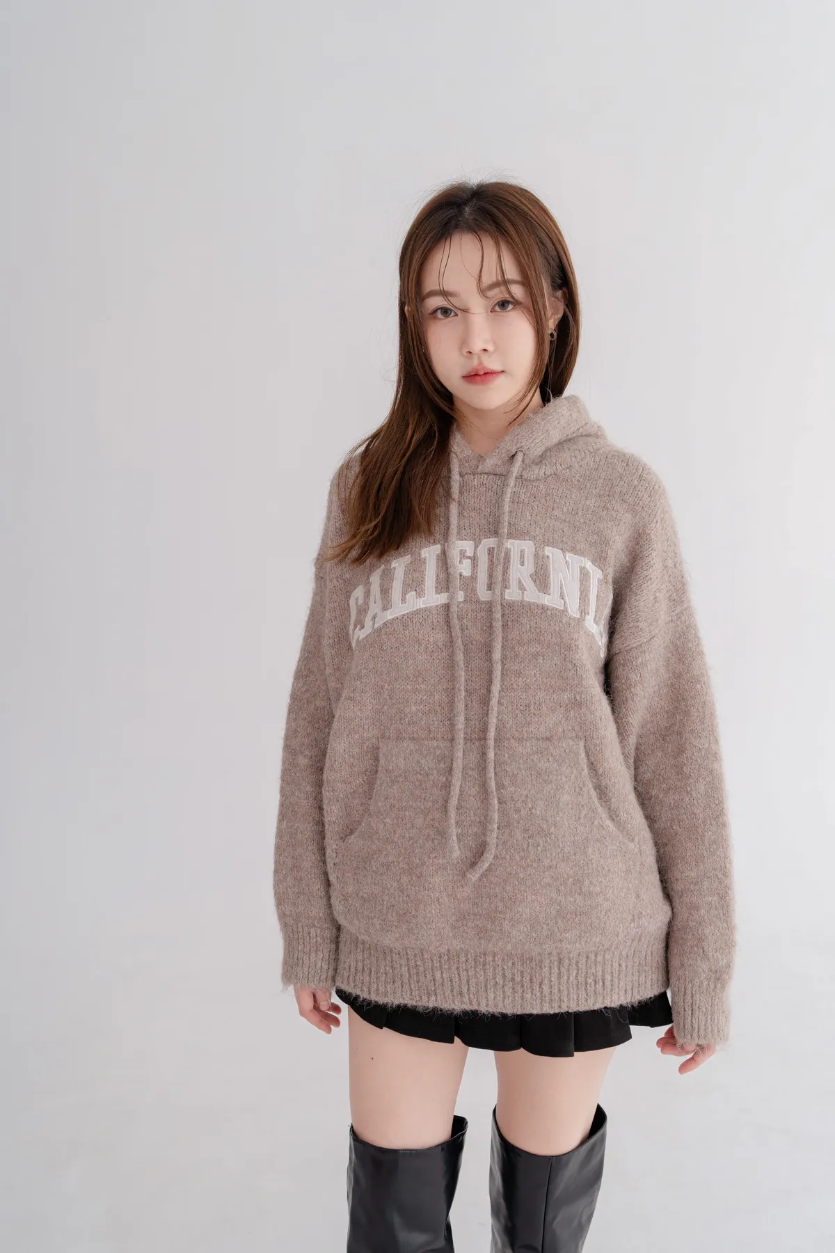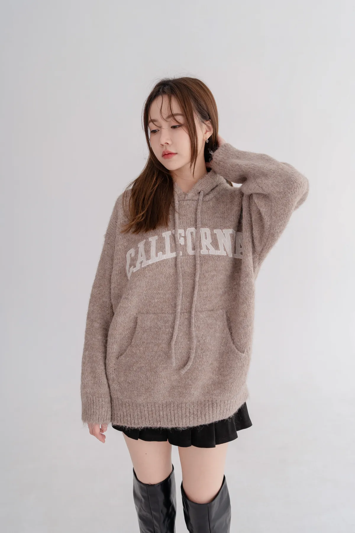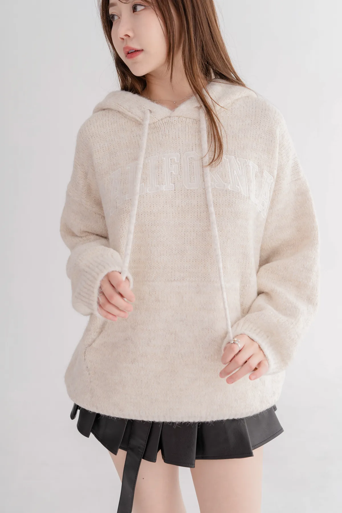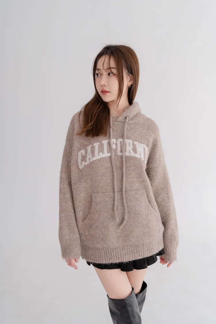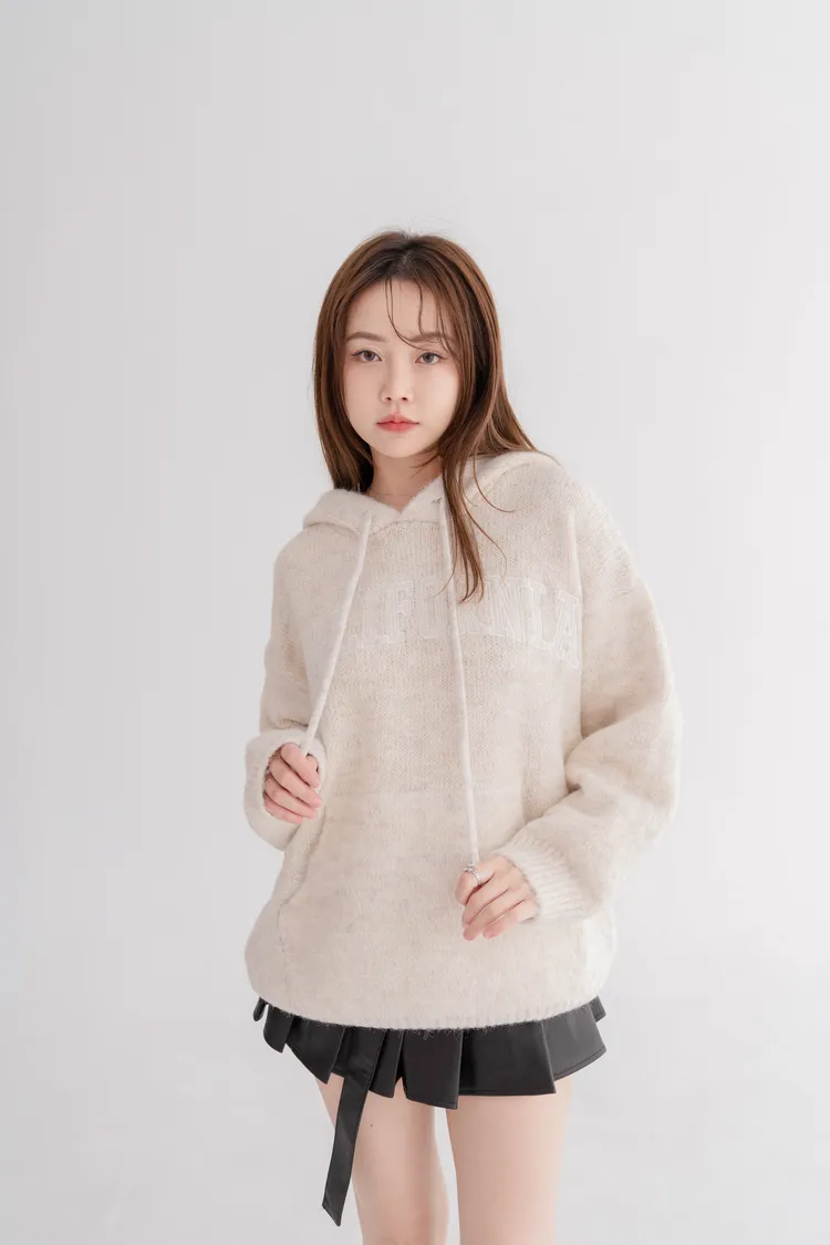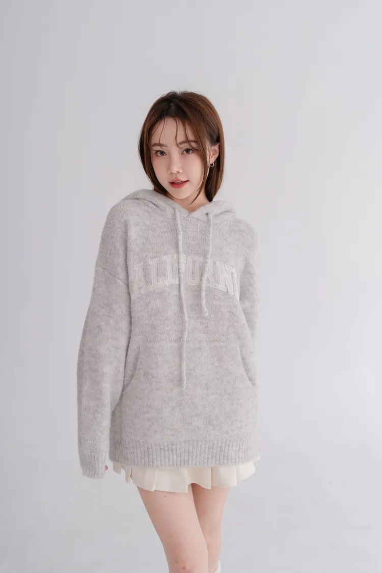 刺繡連帽寬鬆毛衣