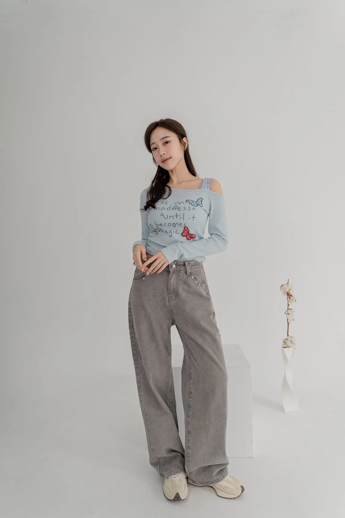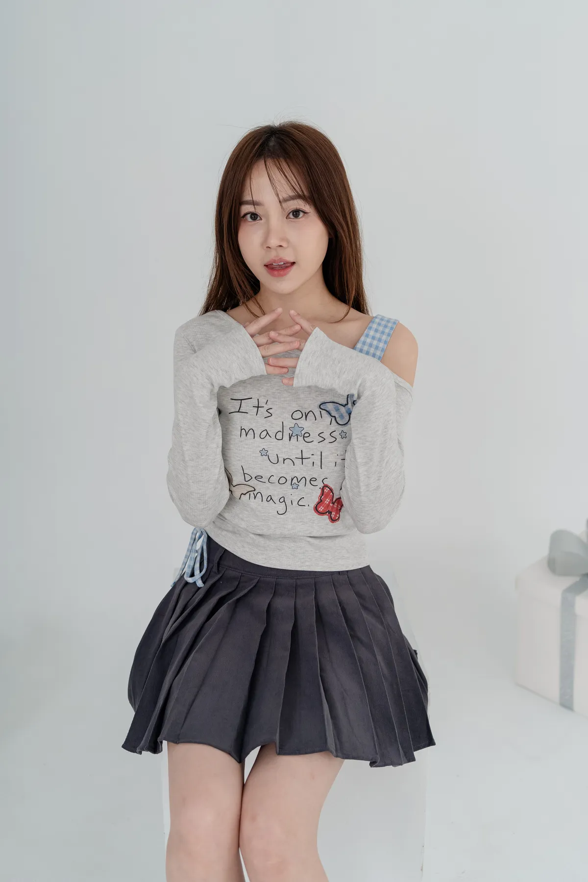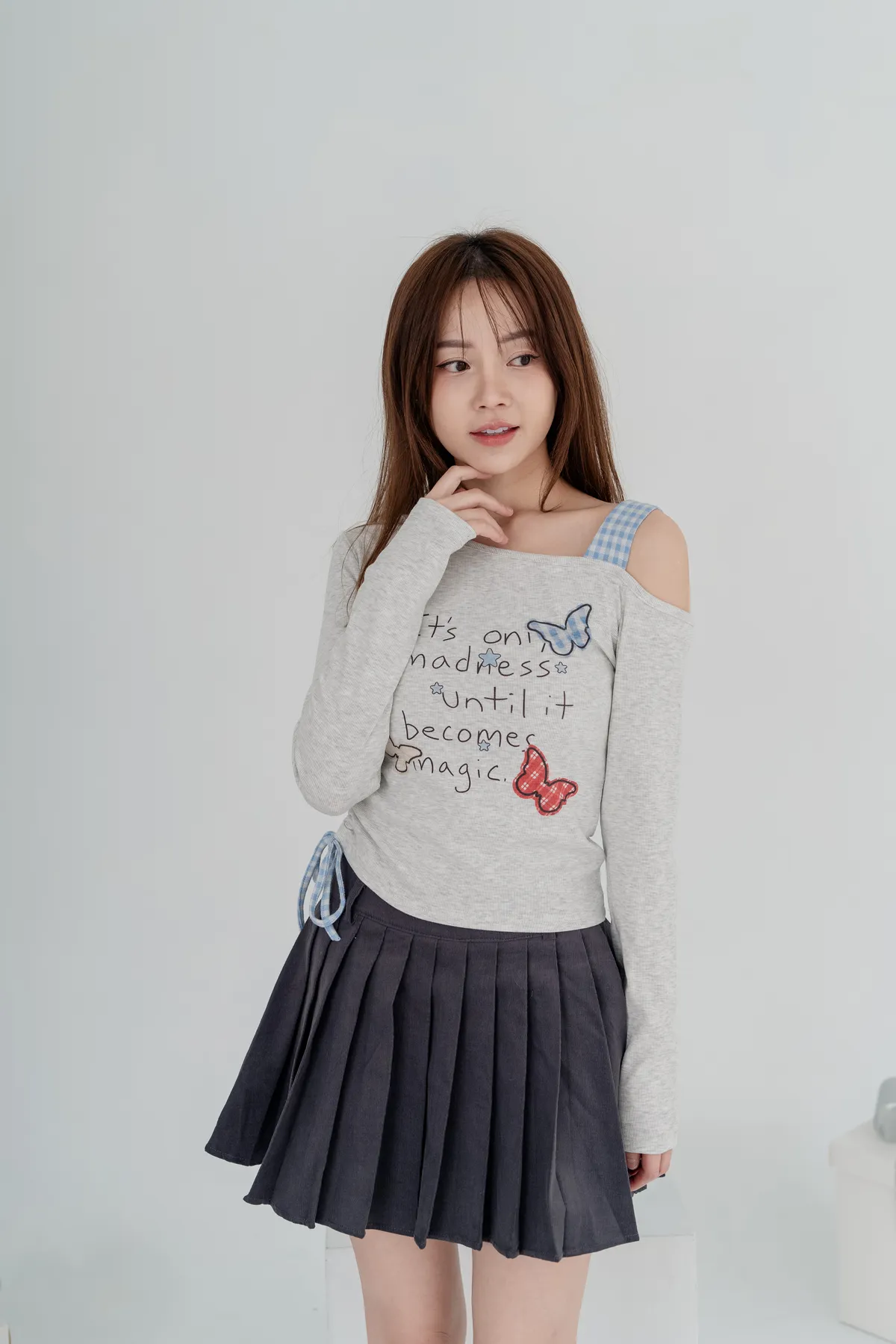 手寫感標語搭配蝴蝶圖案,傳達出青春、不設限的少女氣息。搭配短裙、百褶裙、牛仔褲都能輕鬆打造不同風格,是一件甜美、率性都能完美切換的高實穿單品。