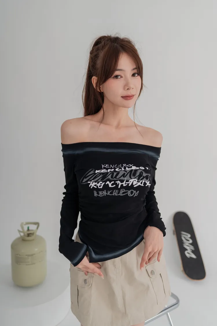 疊塗鴉字母印花,營造街頭感層次,彈性混棉面料,貼身舒適、具良好回彈性。