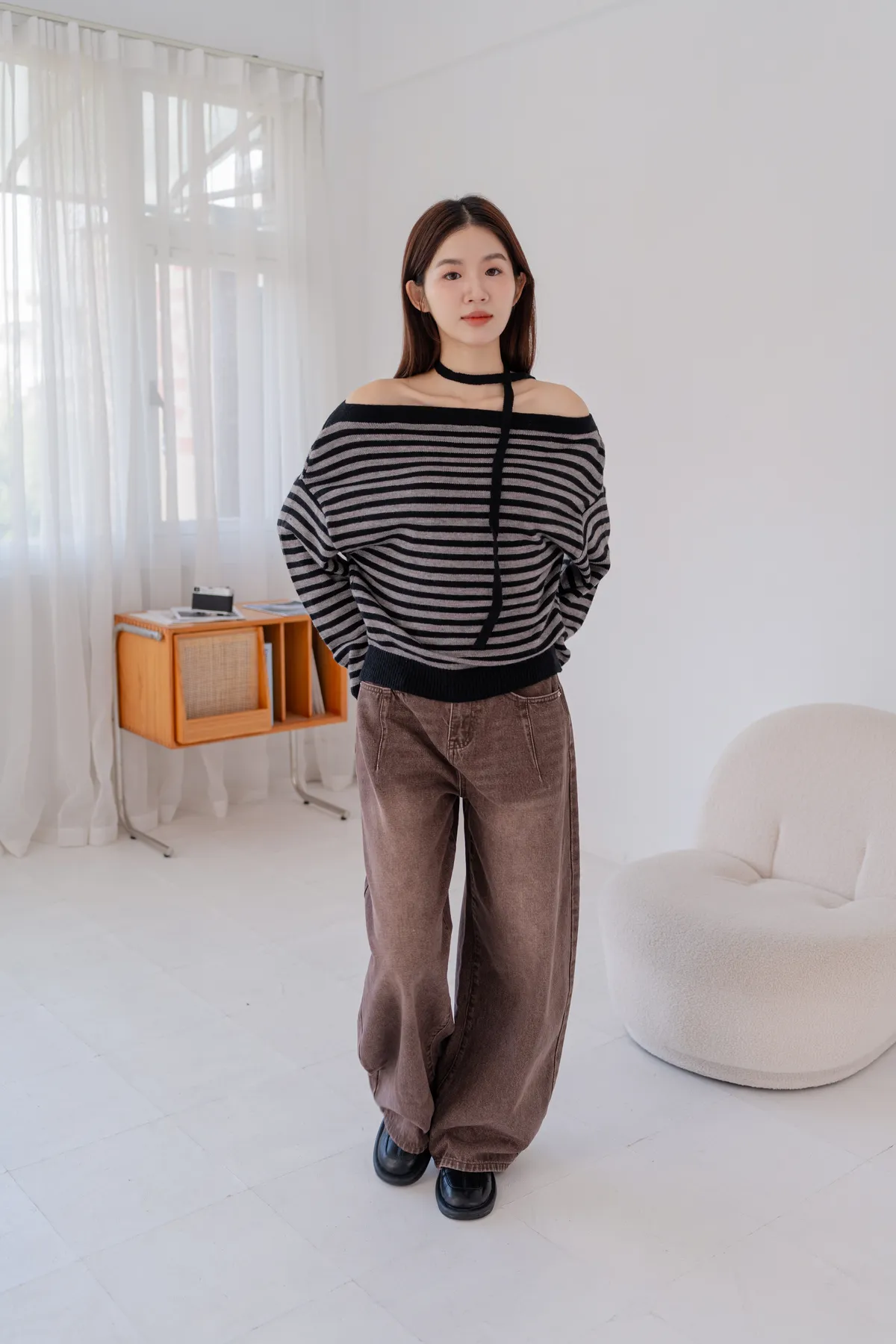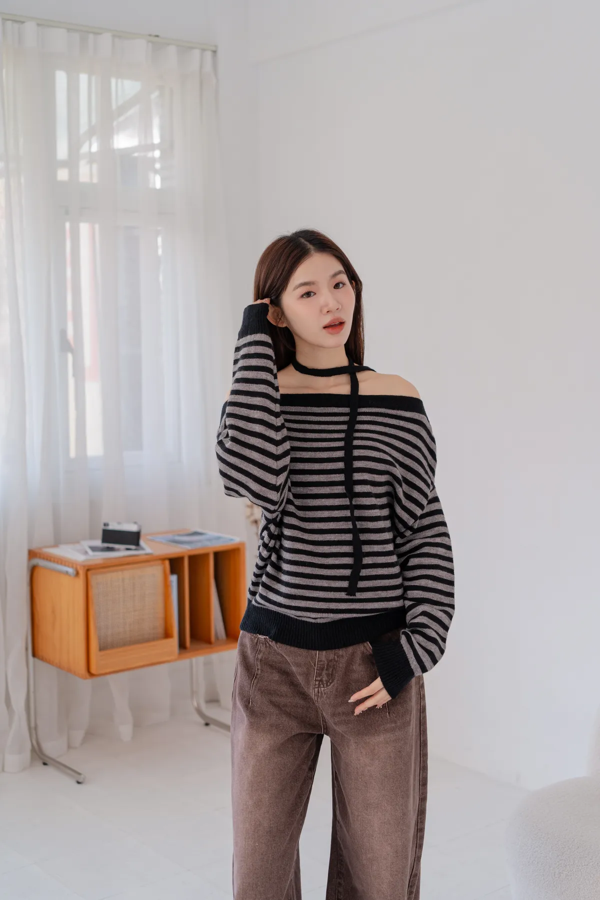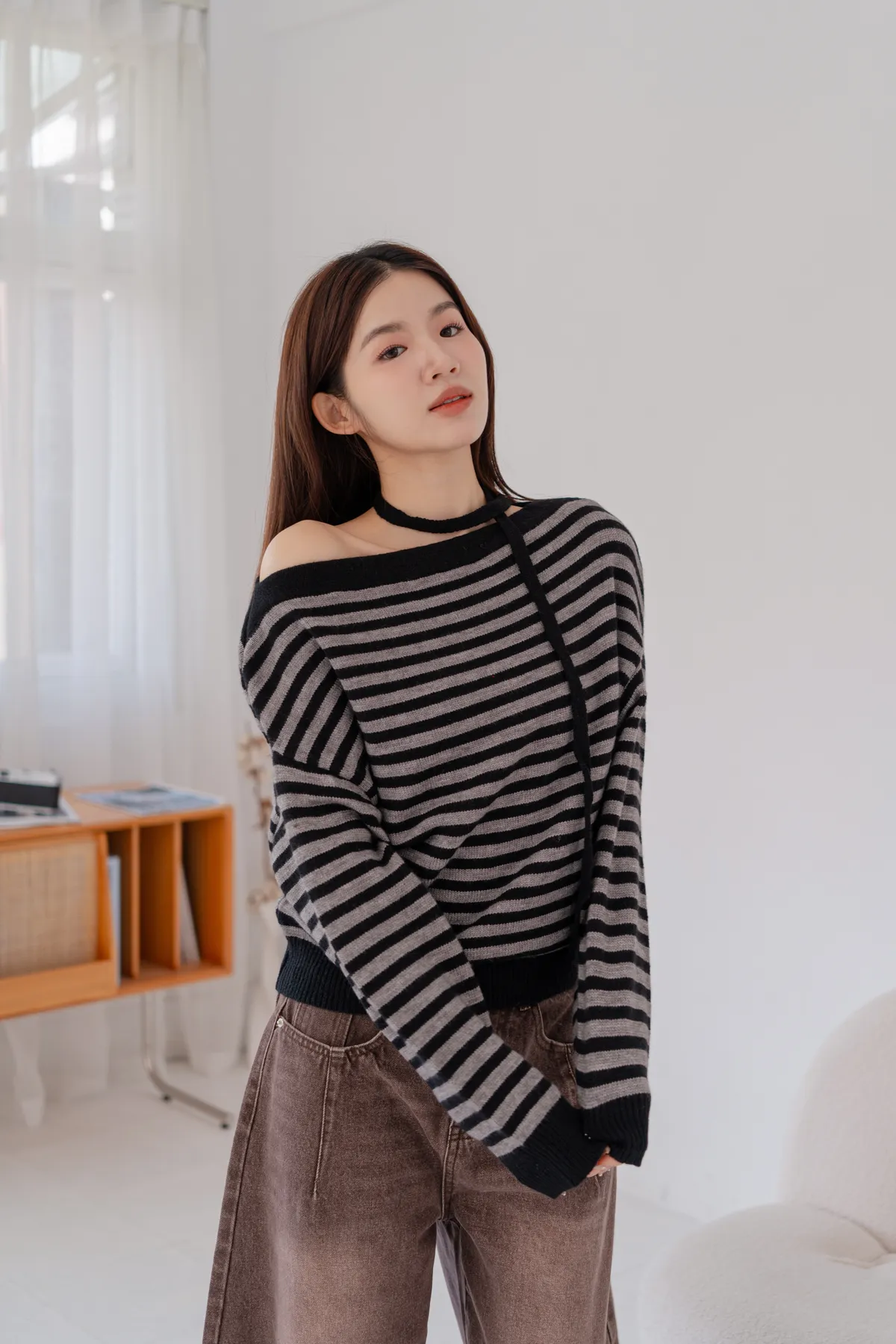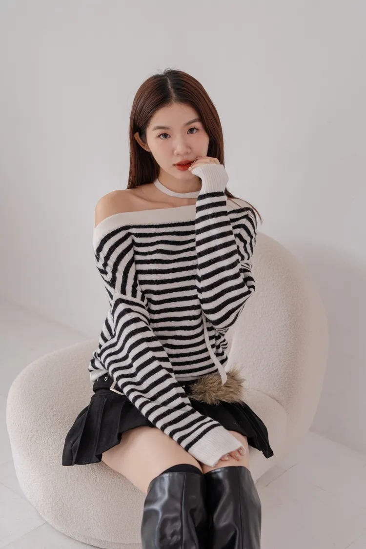 ㄧ字領橫條針織毛衣
