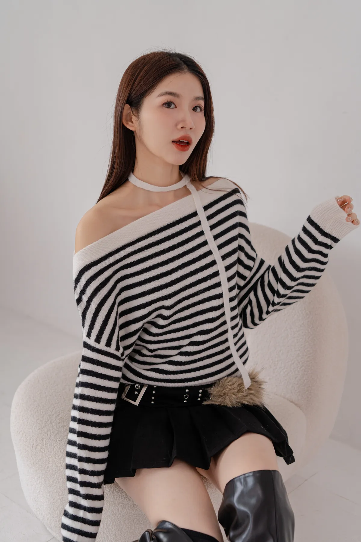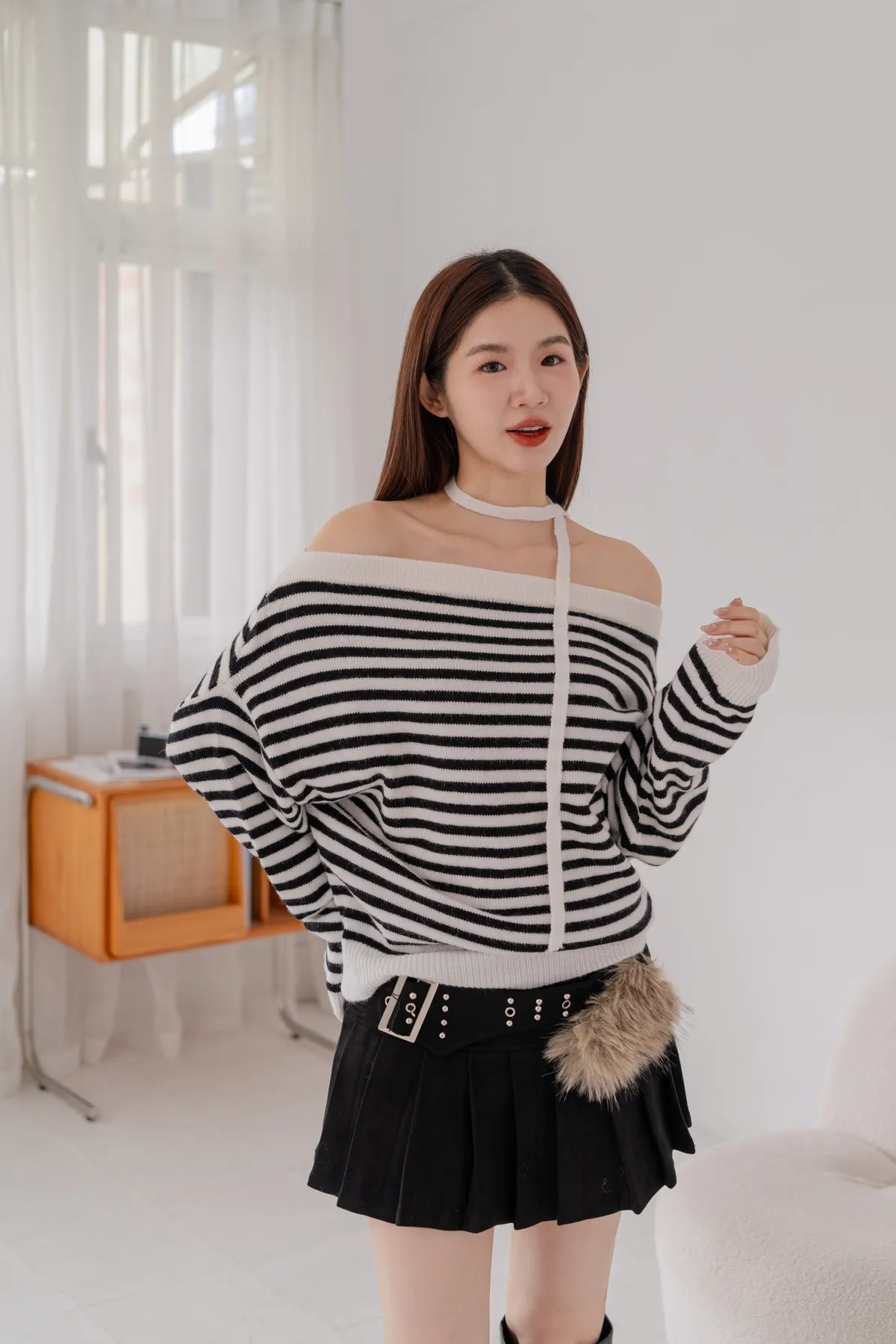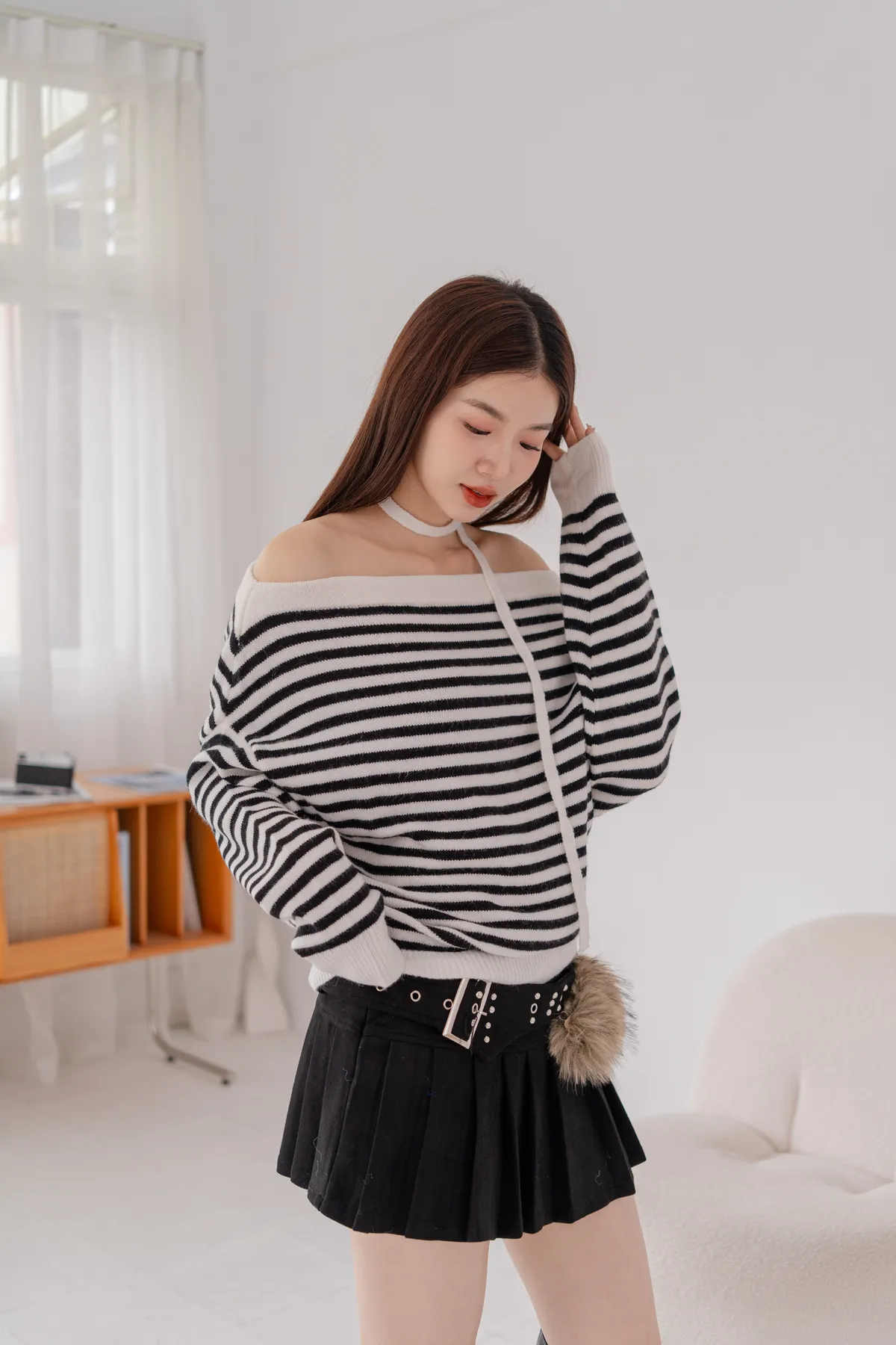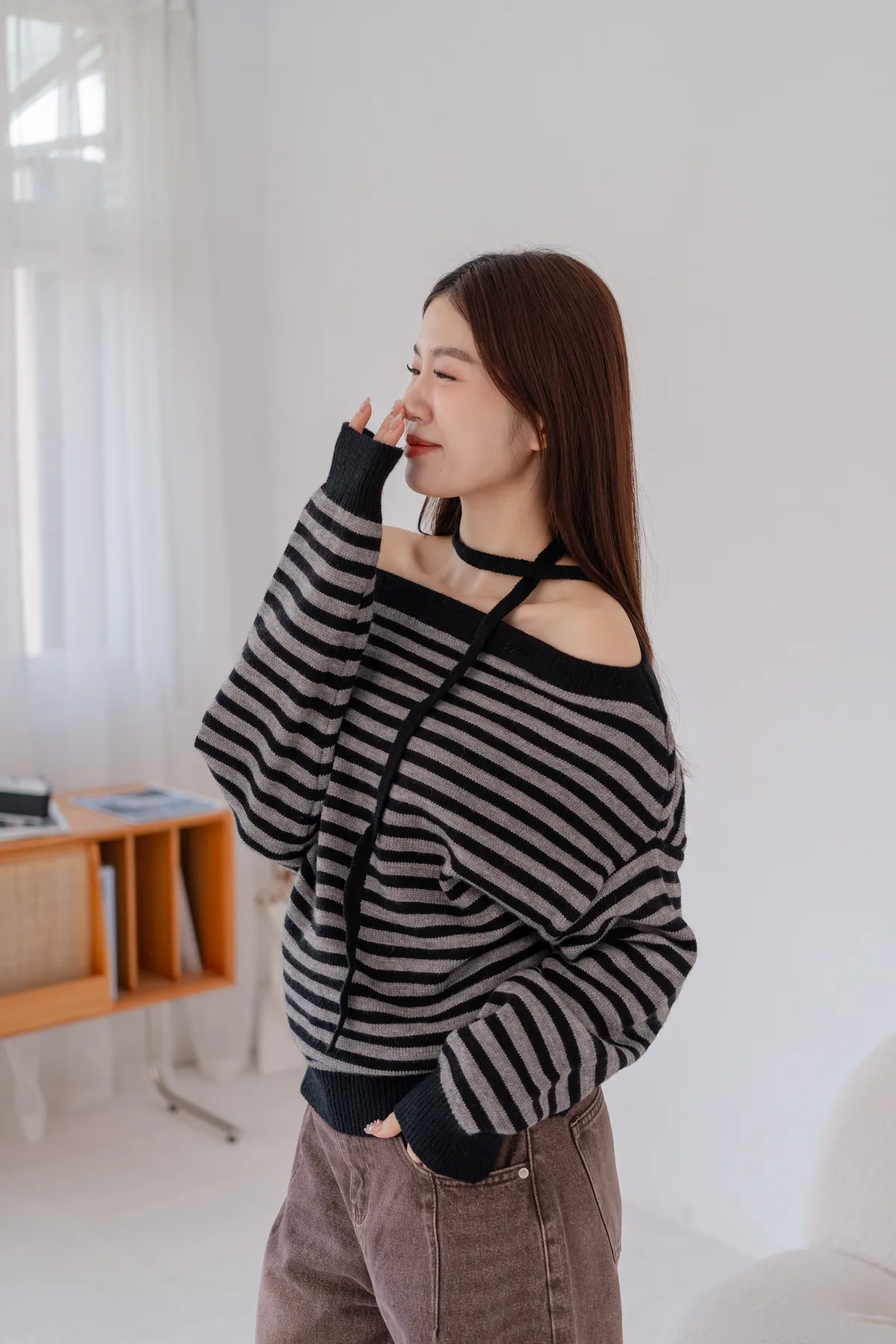 ㄧ字領橫條針織毛衣