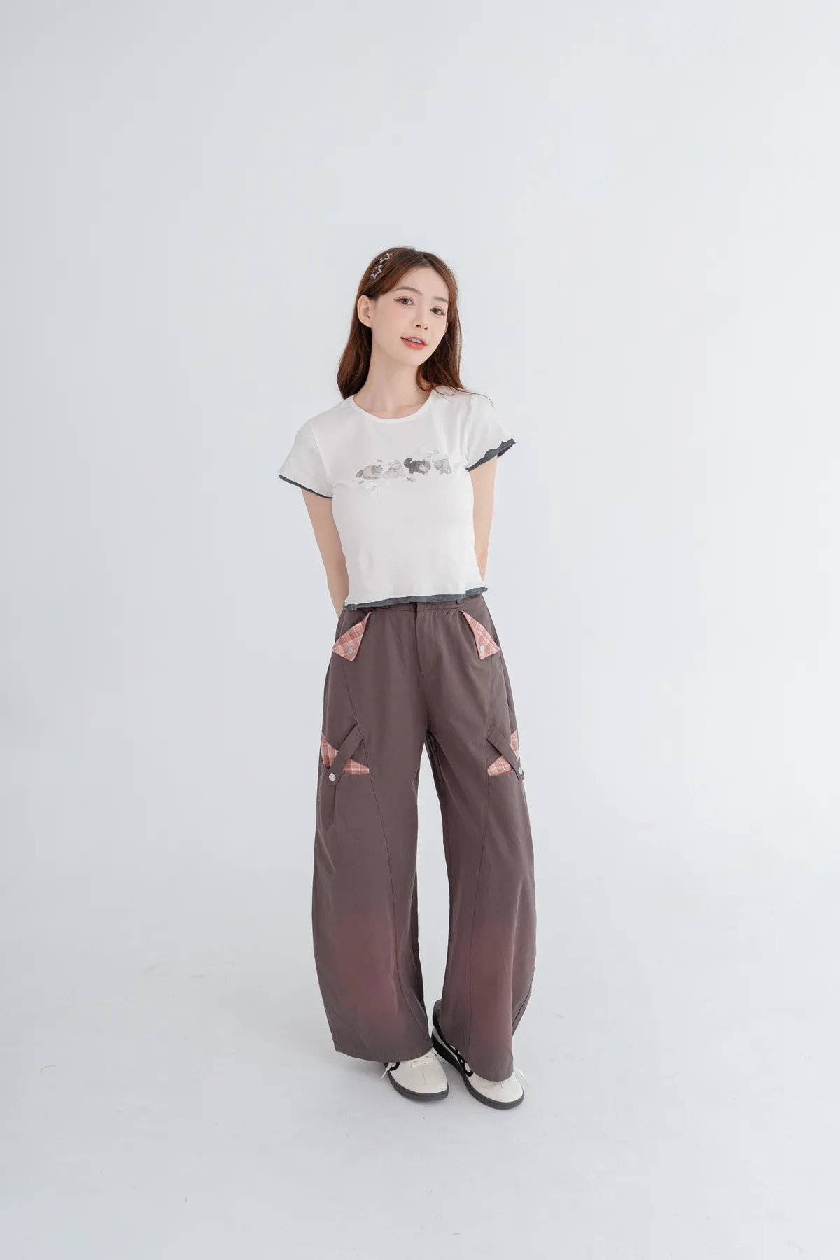 *袖口及下擺假兩件木耳邊設計