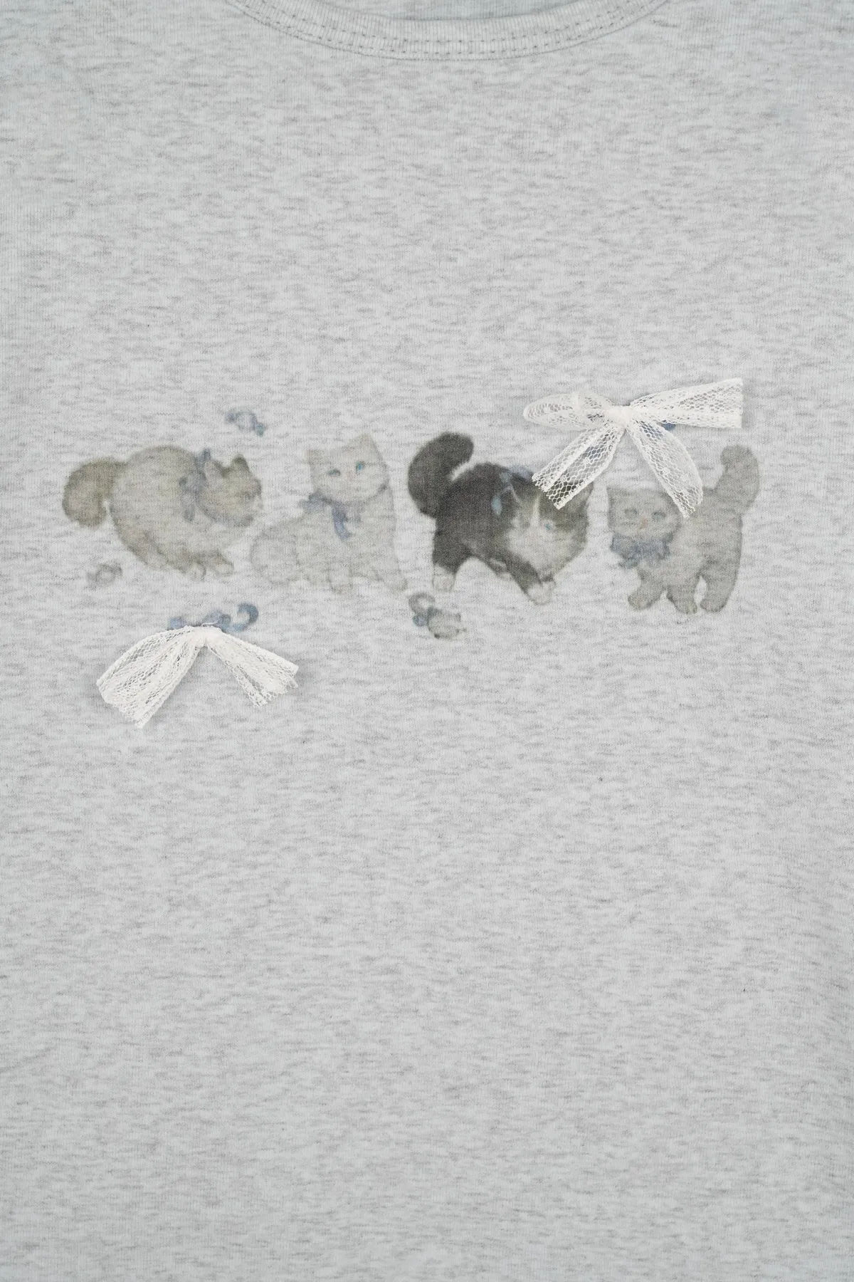 *軟萌貓咪印花,點綴蕾絲蝴蝶結