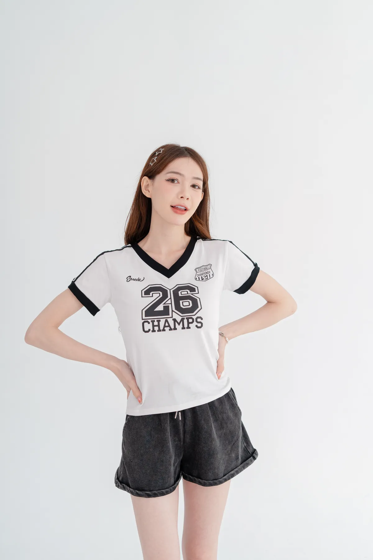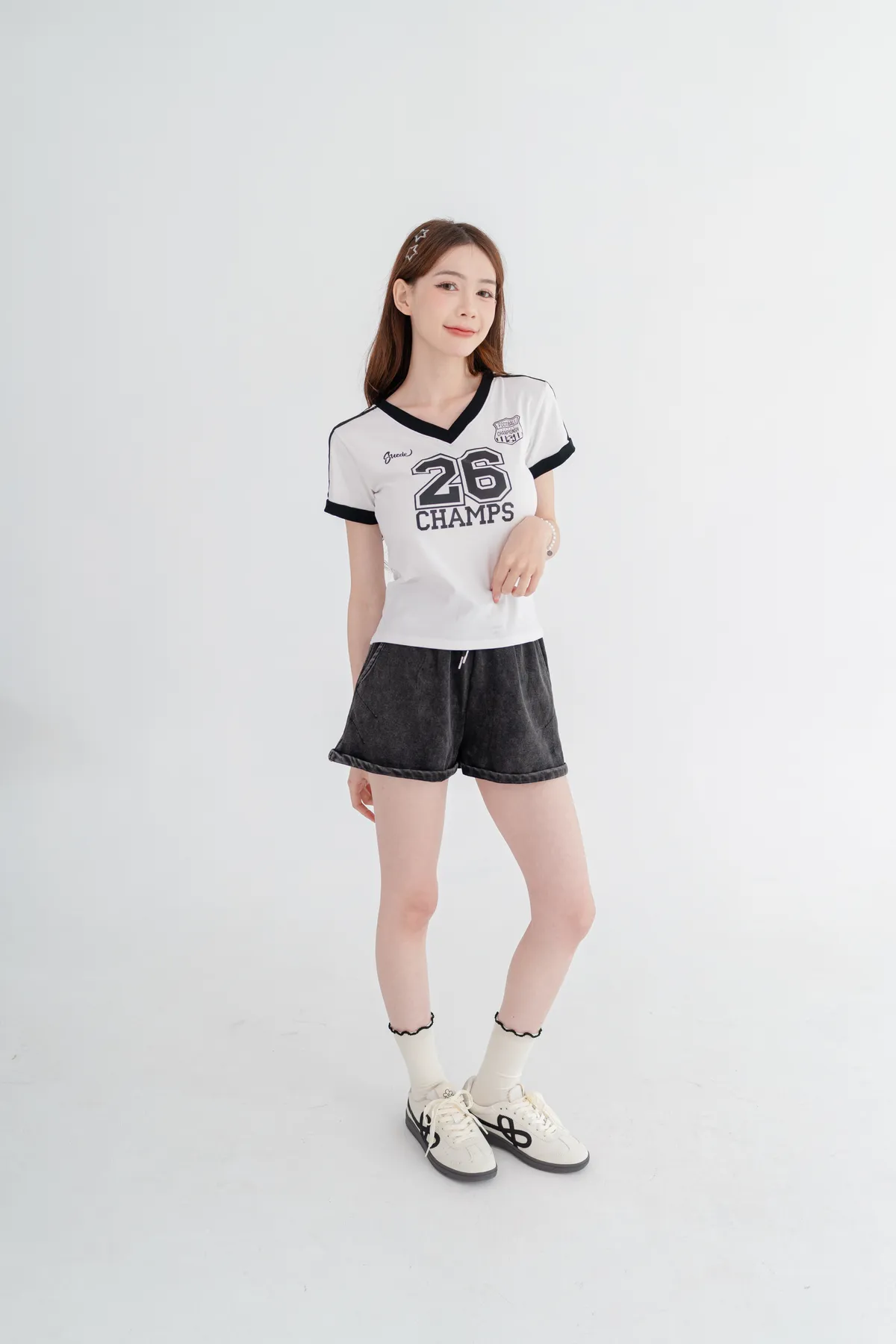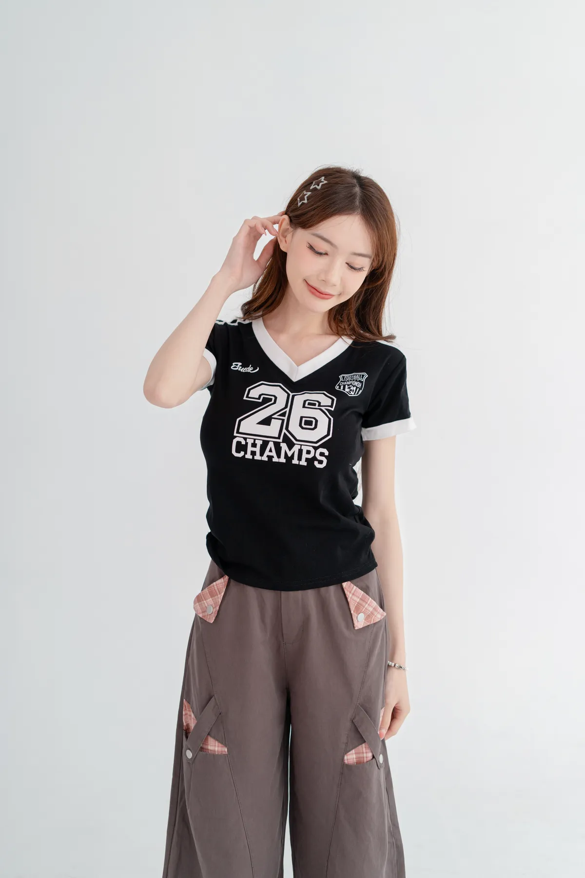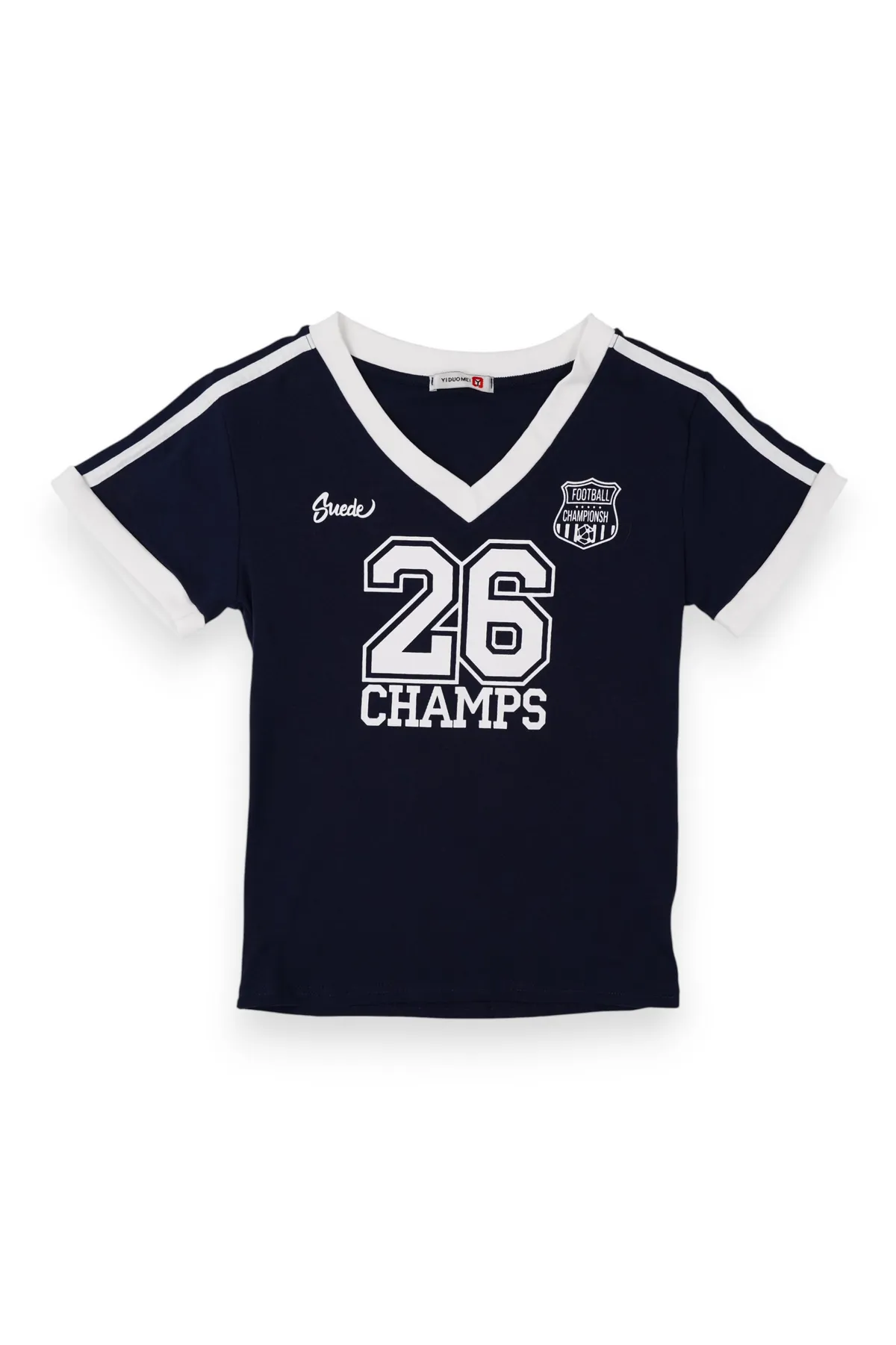 美式數字撞色V領T恤