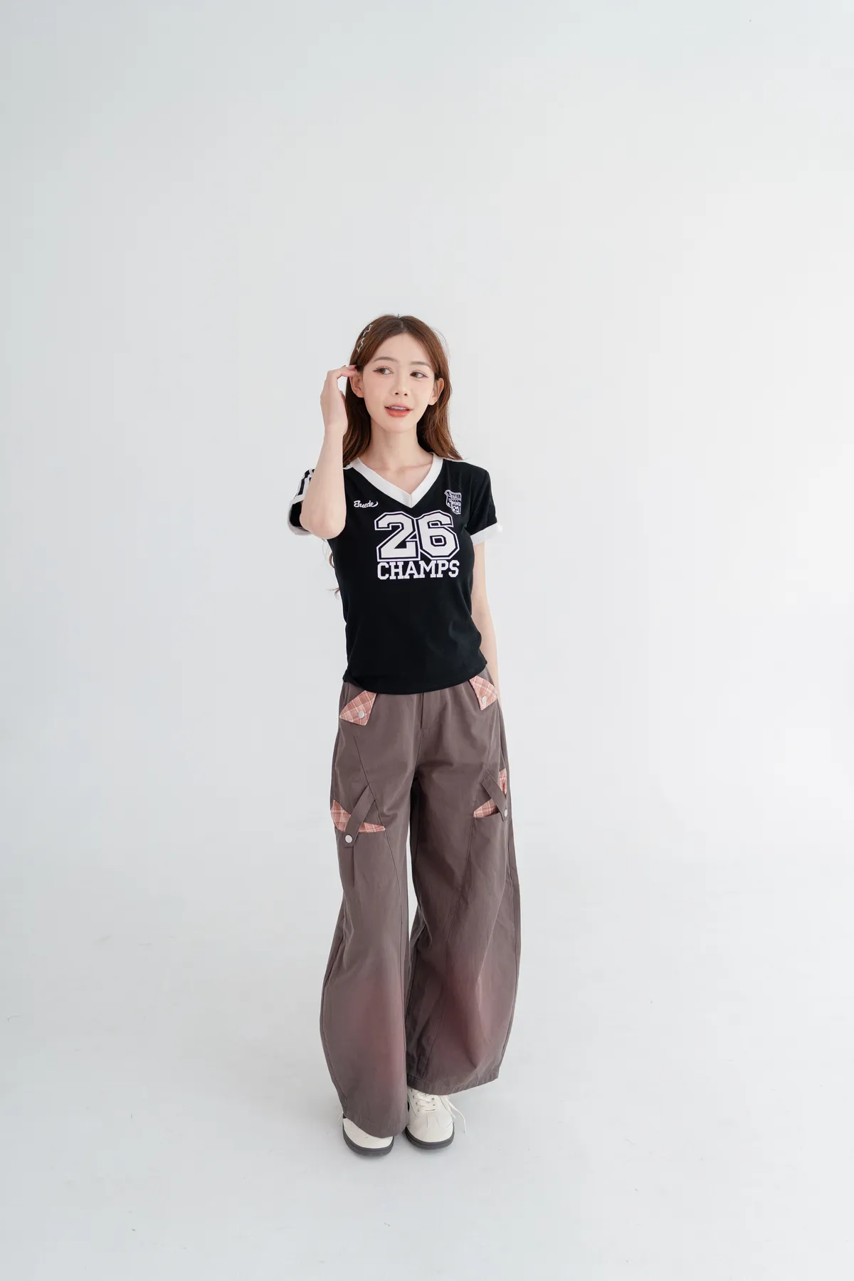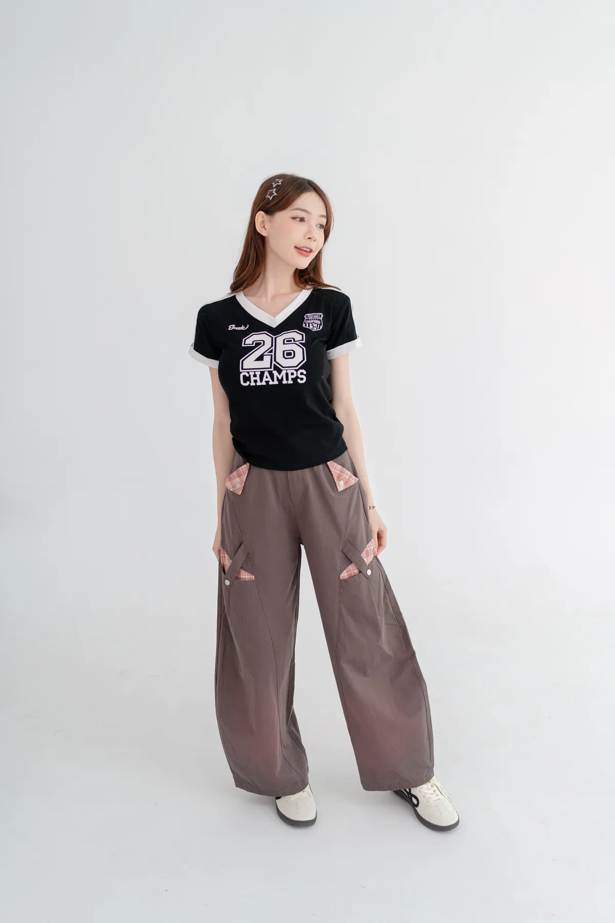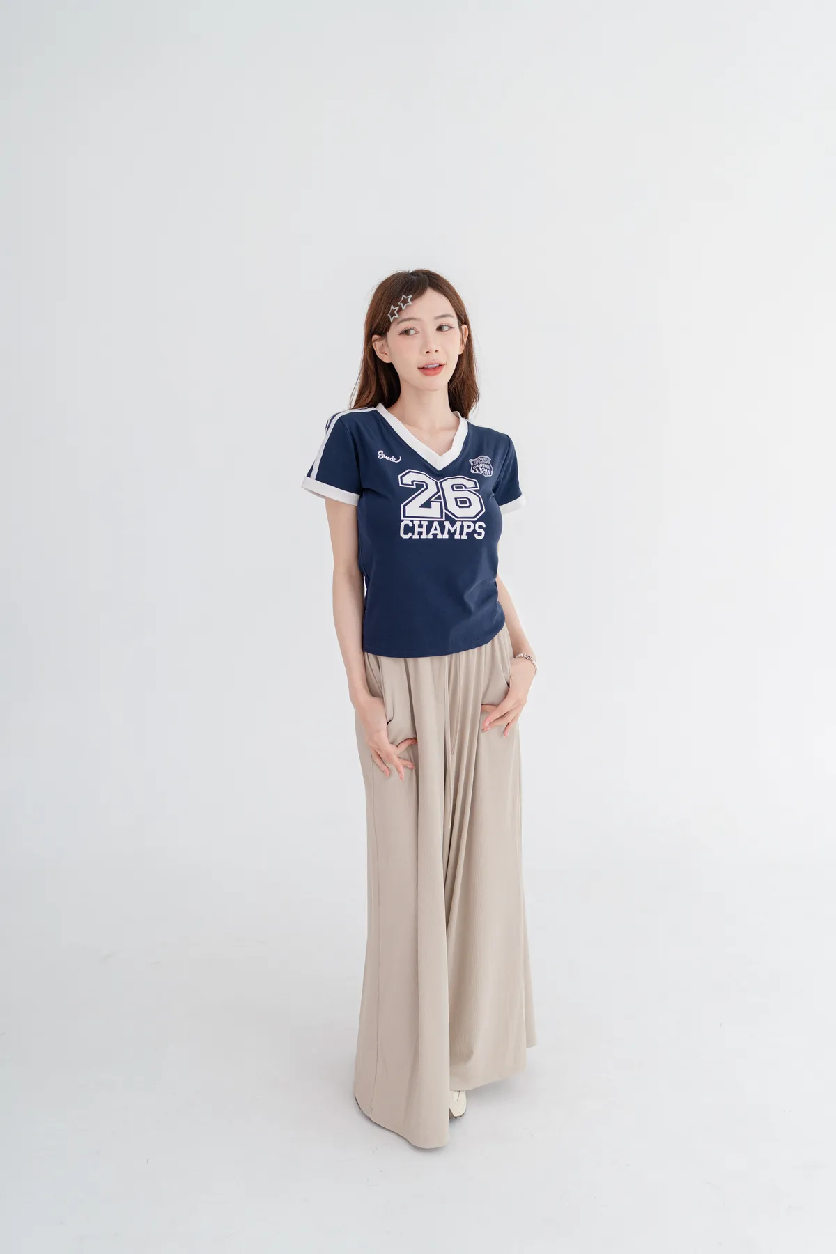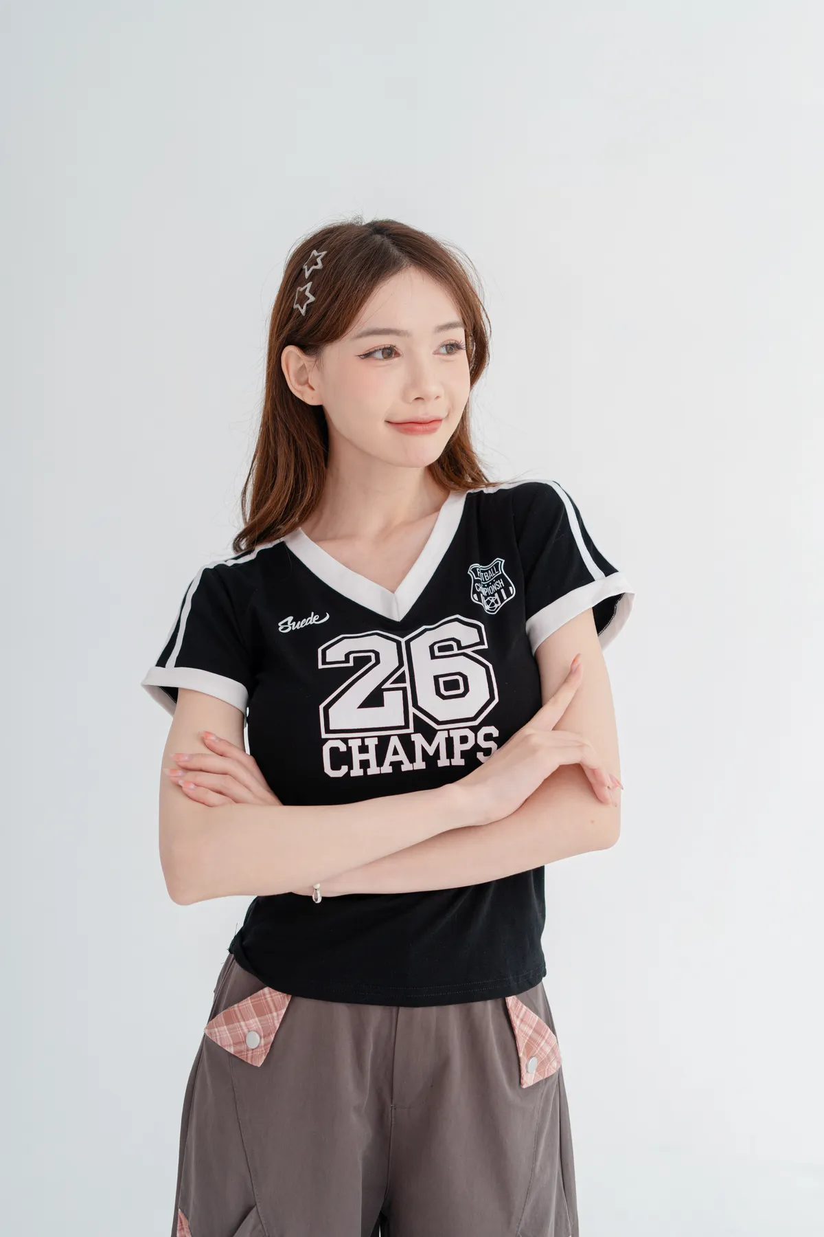 美式數字撞色V領T恤
