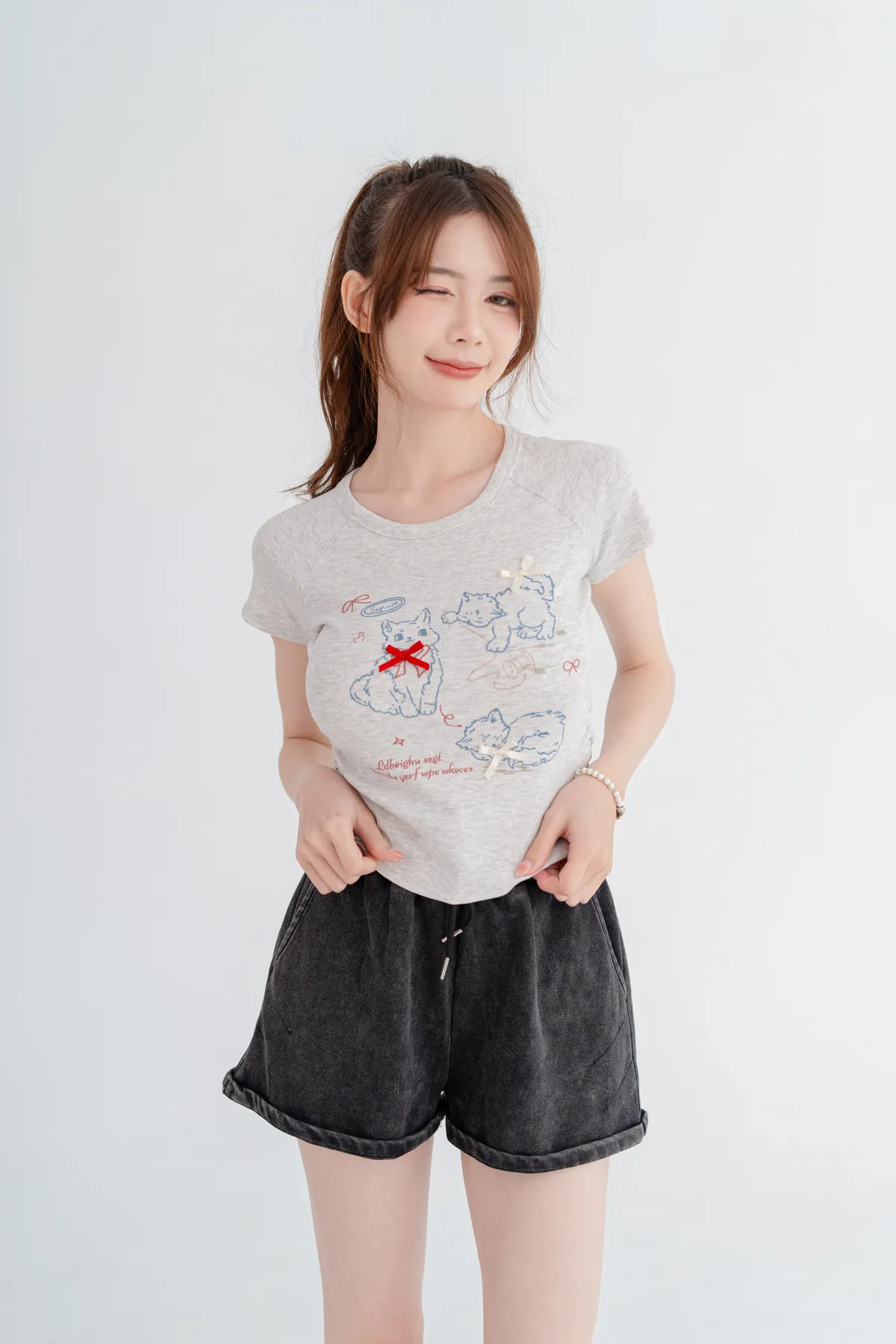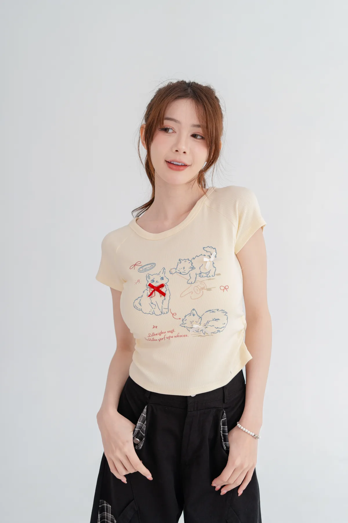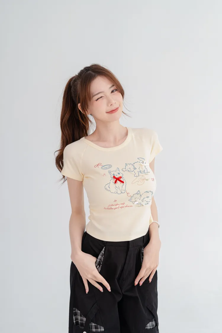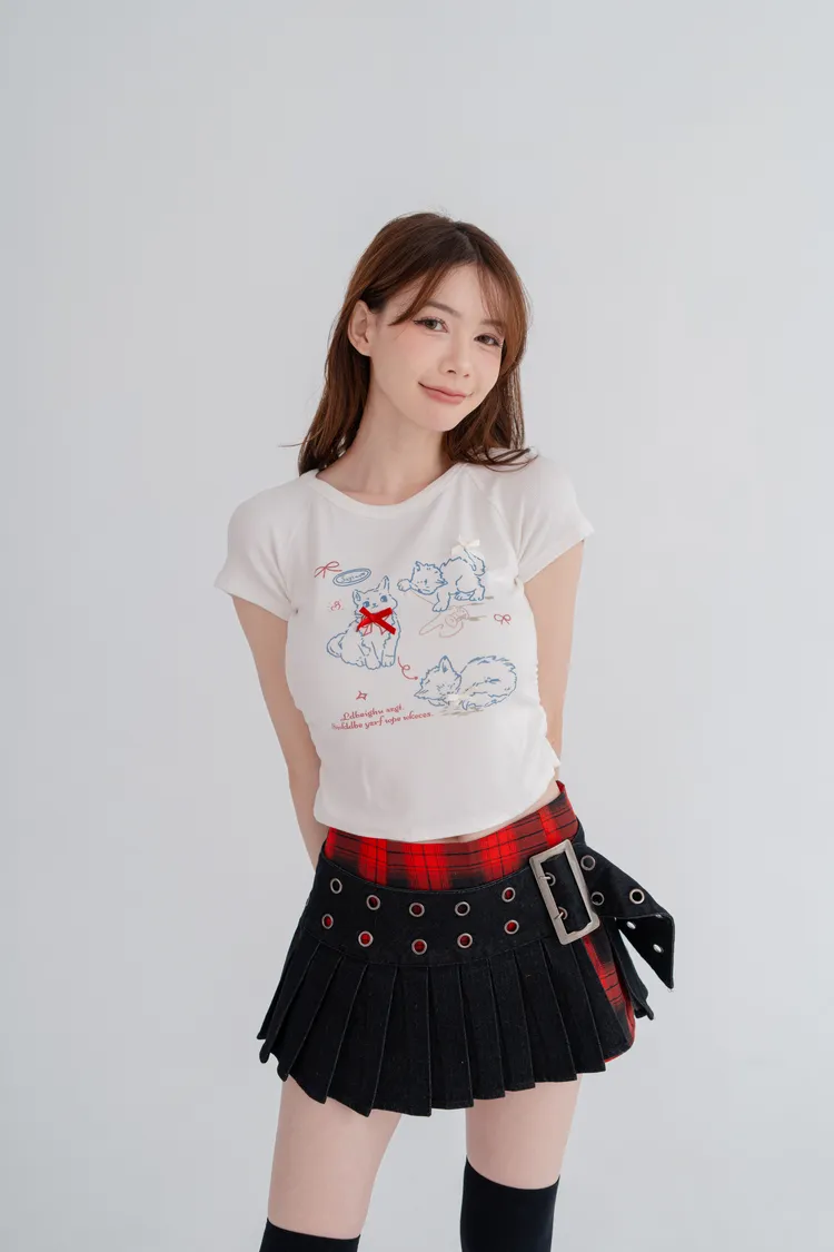 貓咪蝴蝶結彈性短T