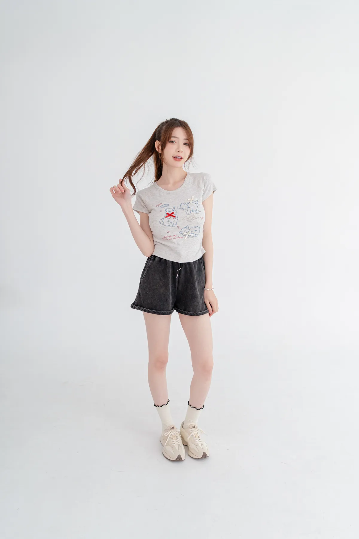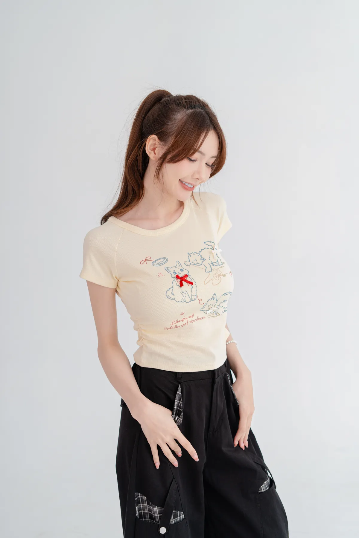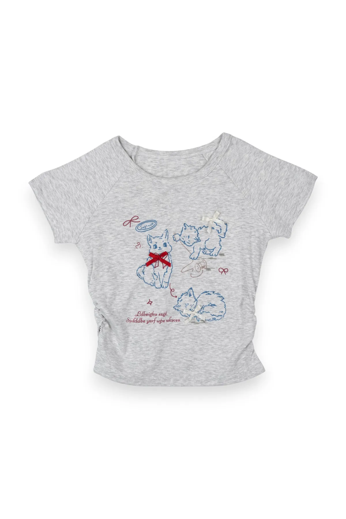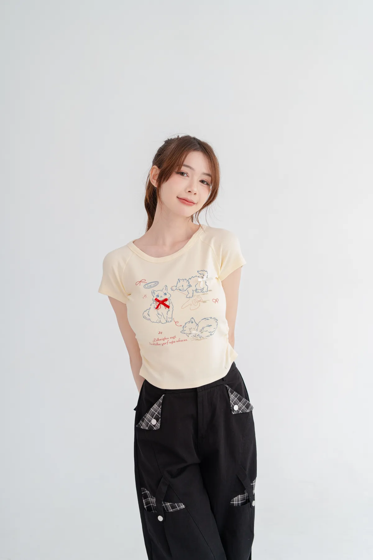 貓咪蝴蝶結彈性短T