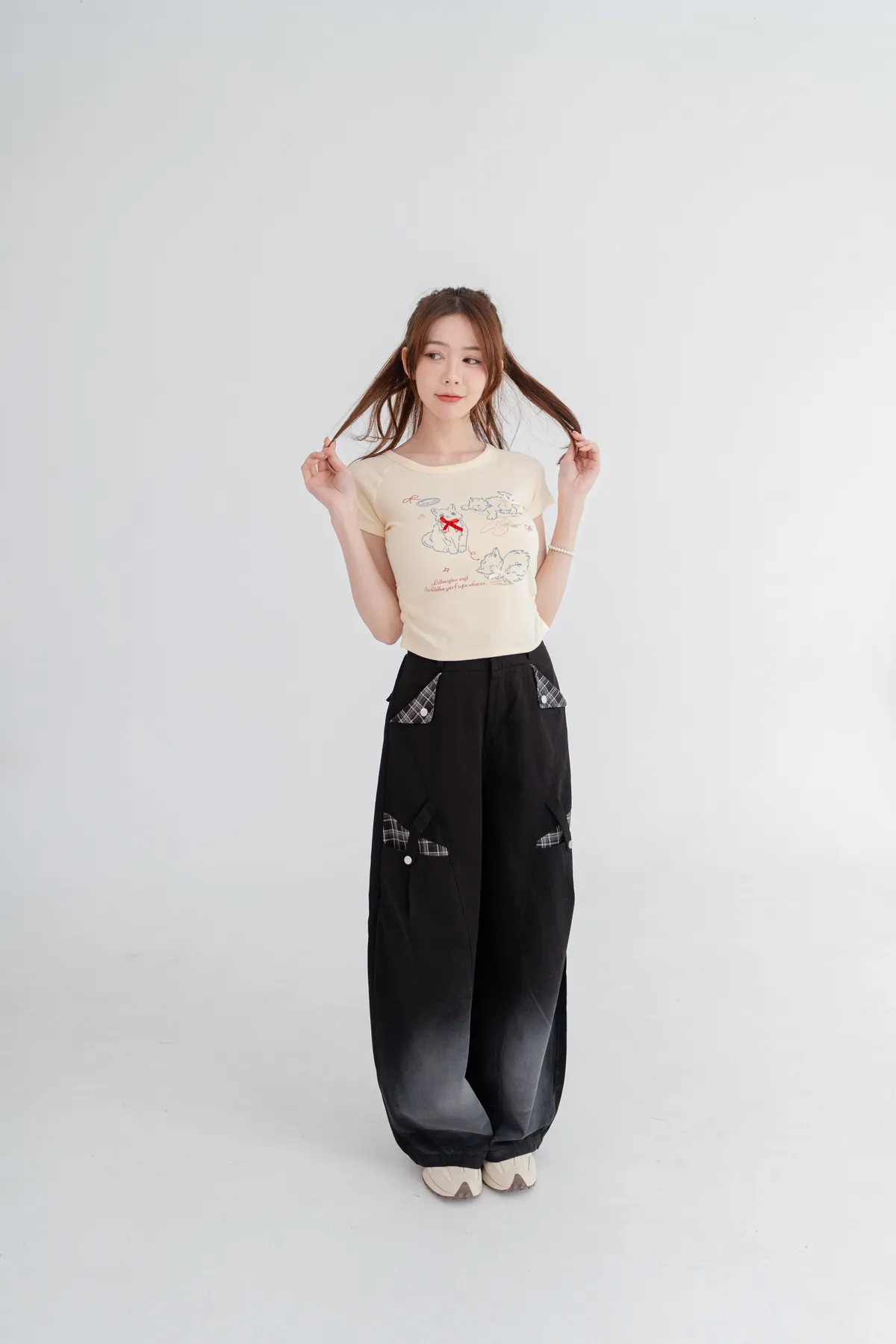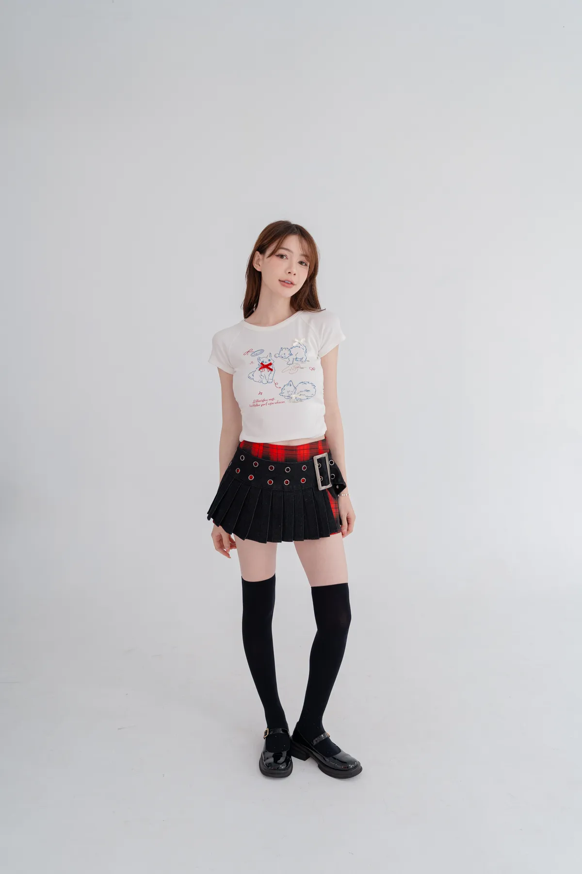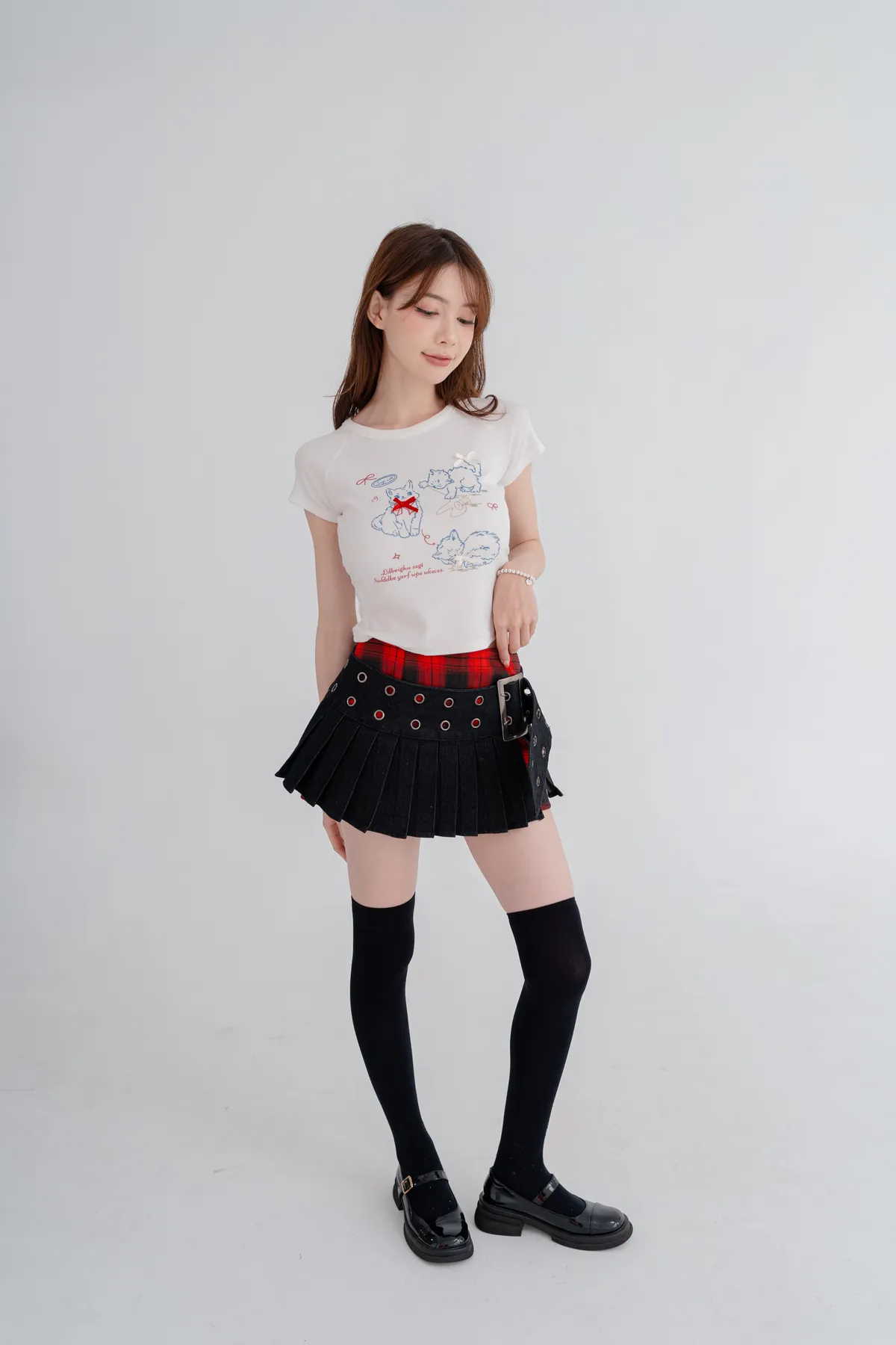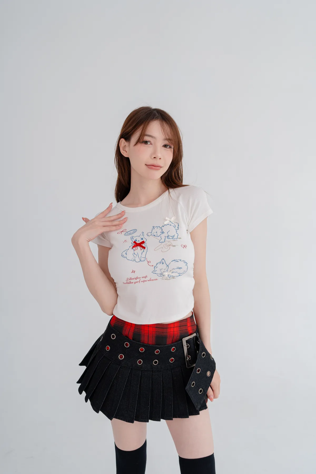 貓咪蝴蝶結彈性短T