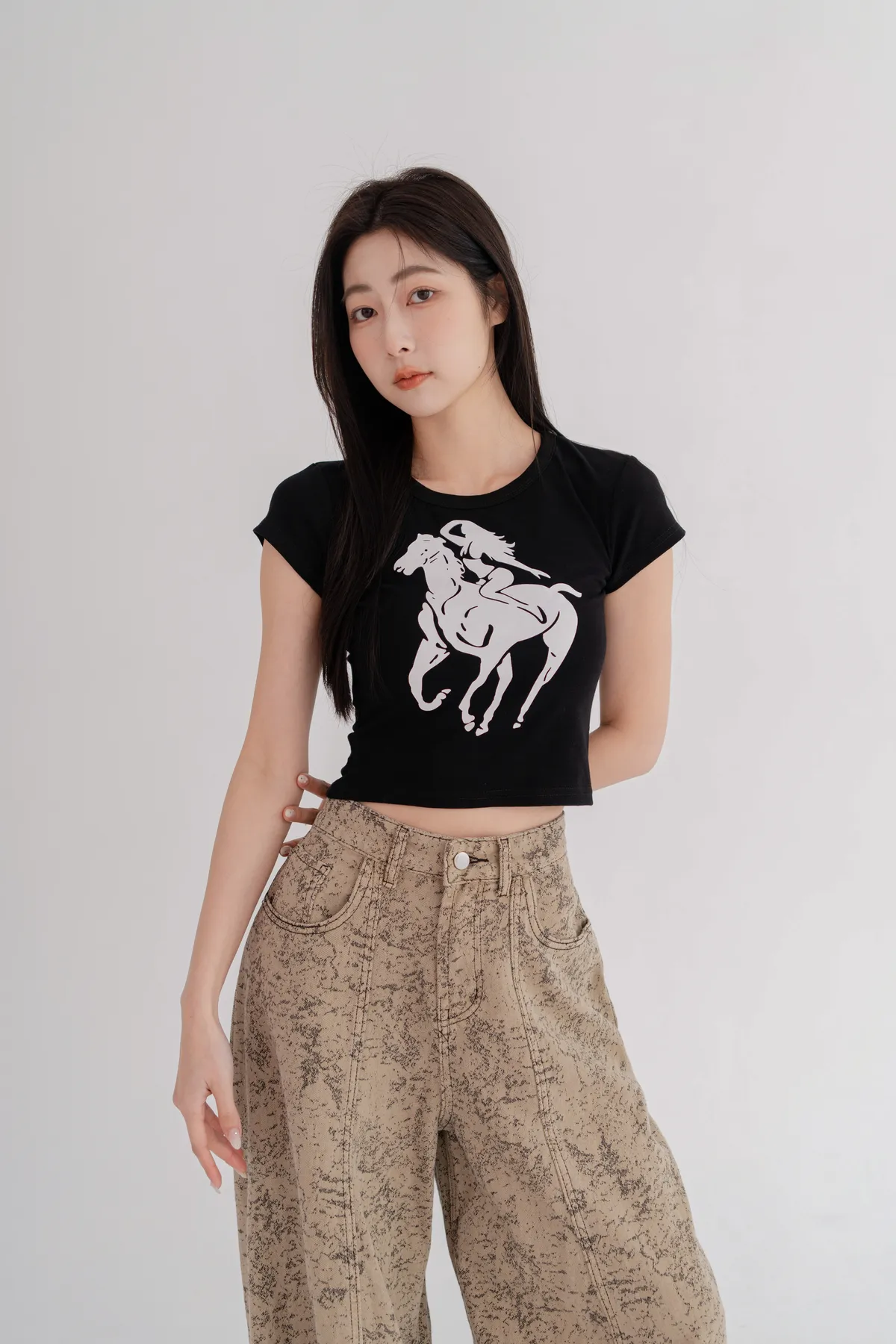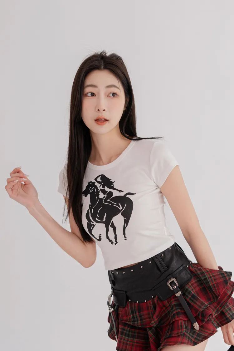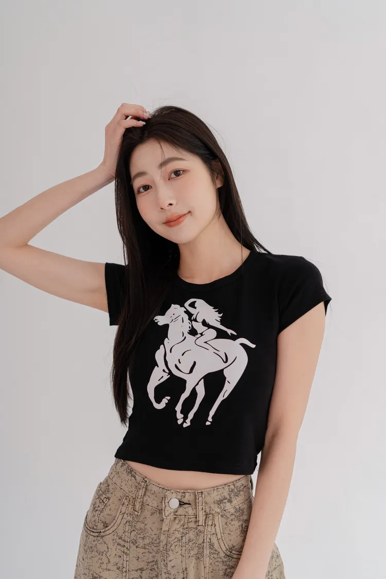 騎馬印圖合身短T
