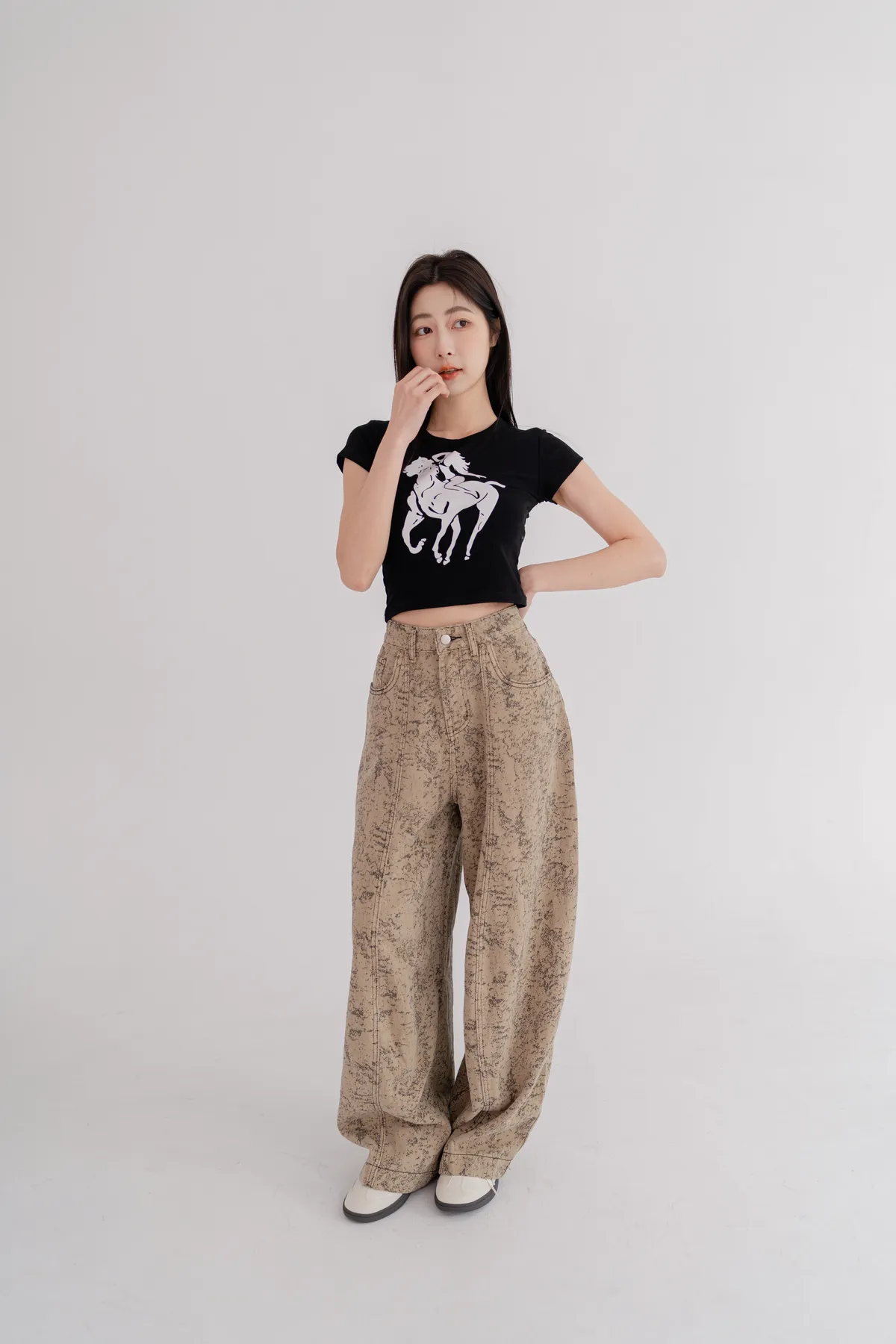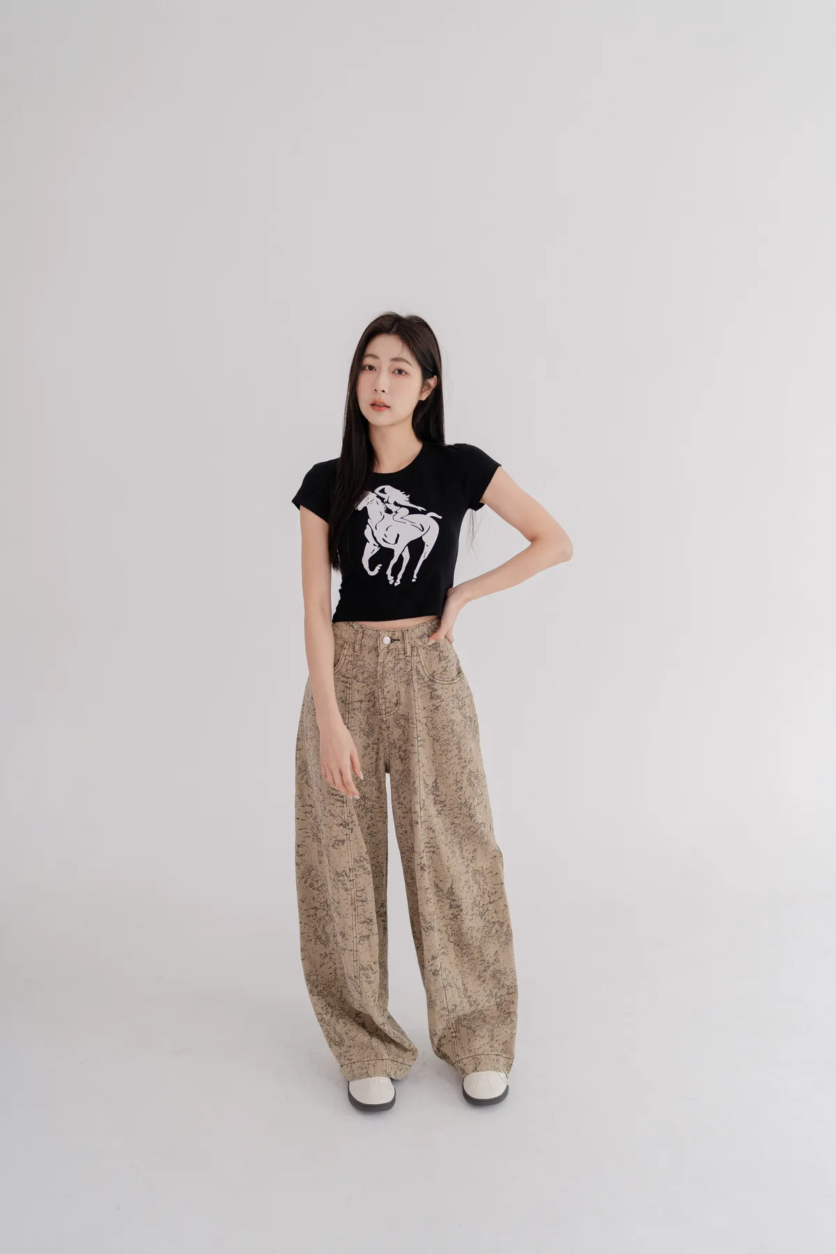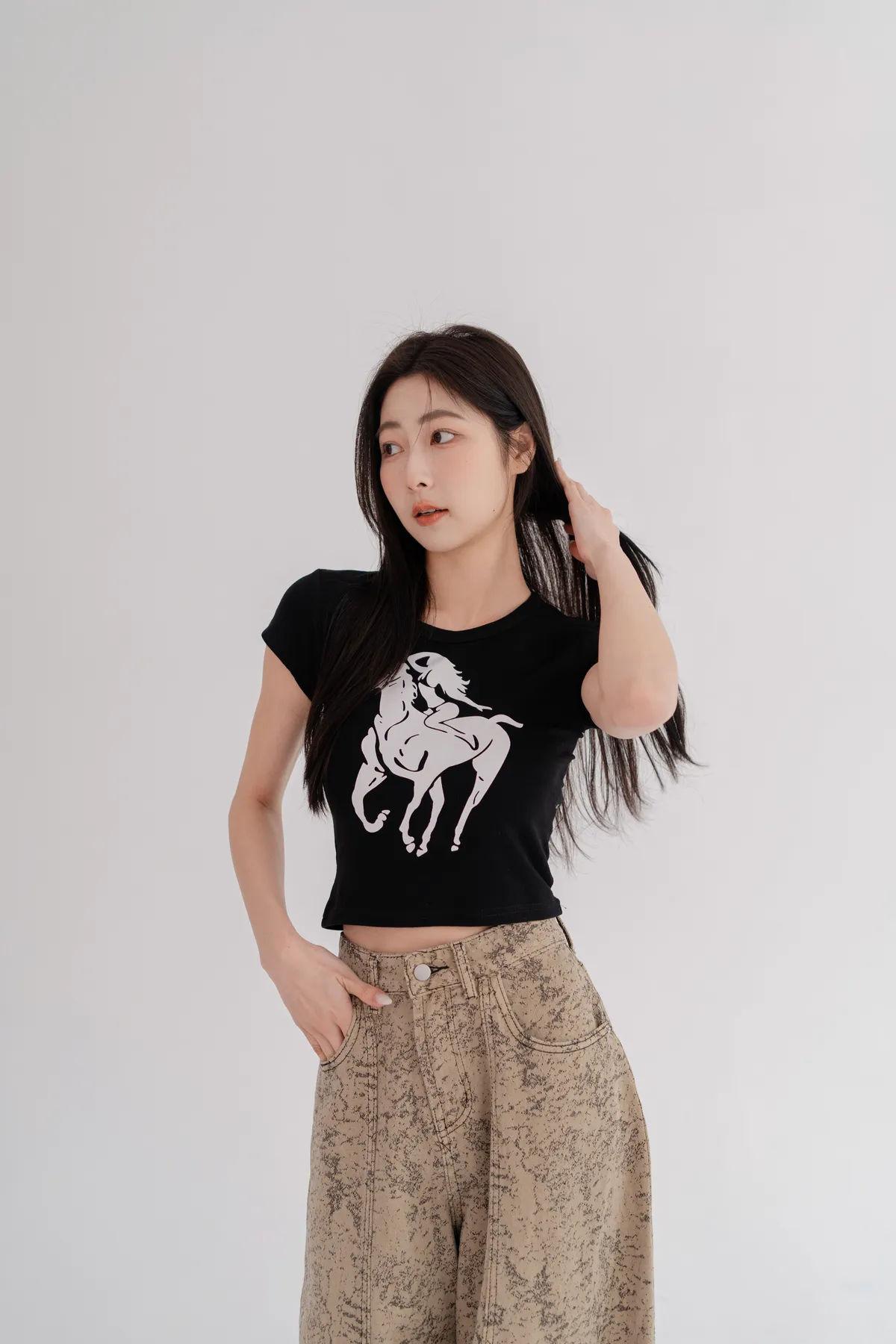 騎馬印圖合身短T