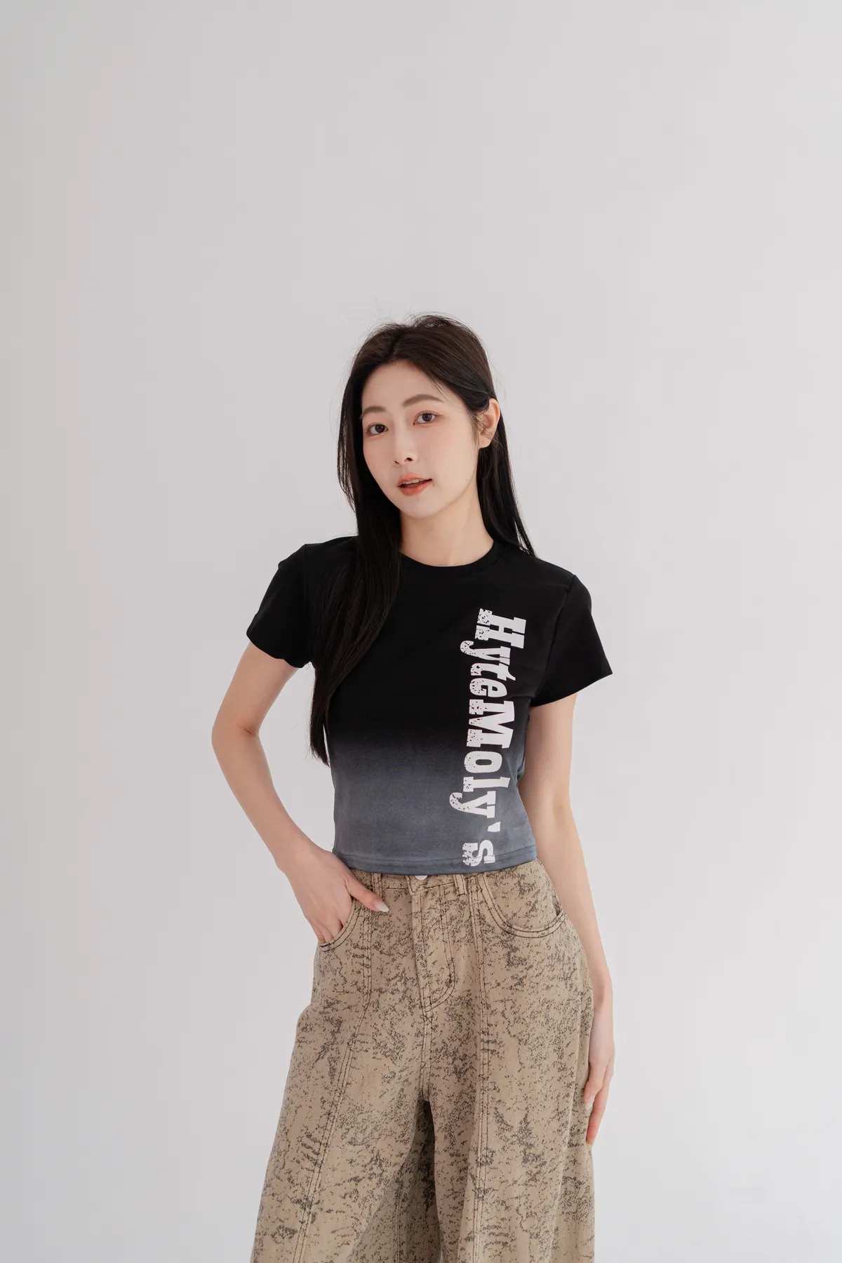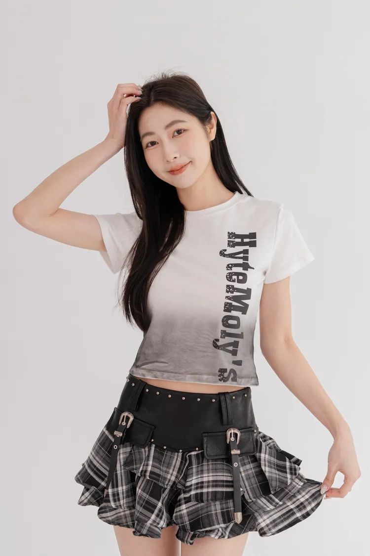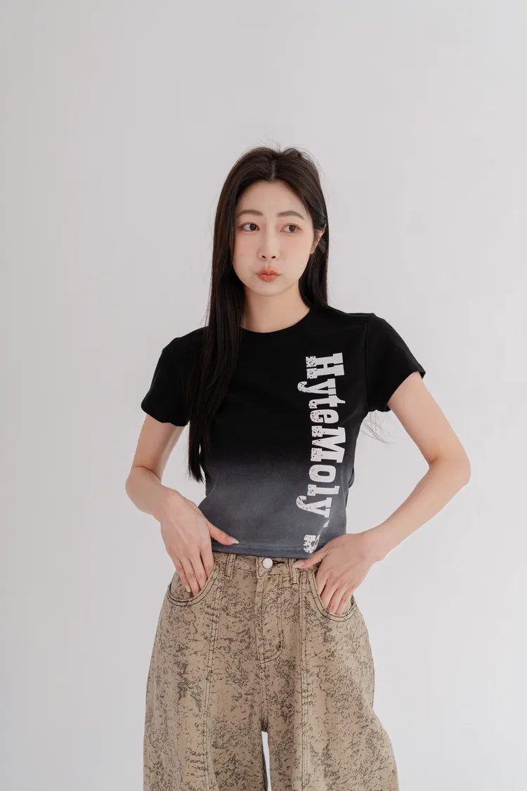 漸層字母短版T