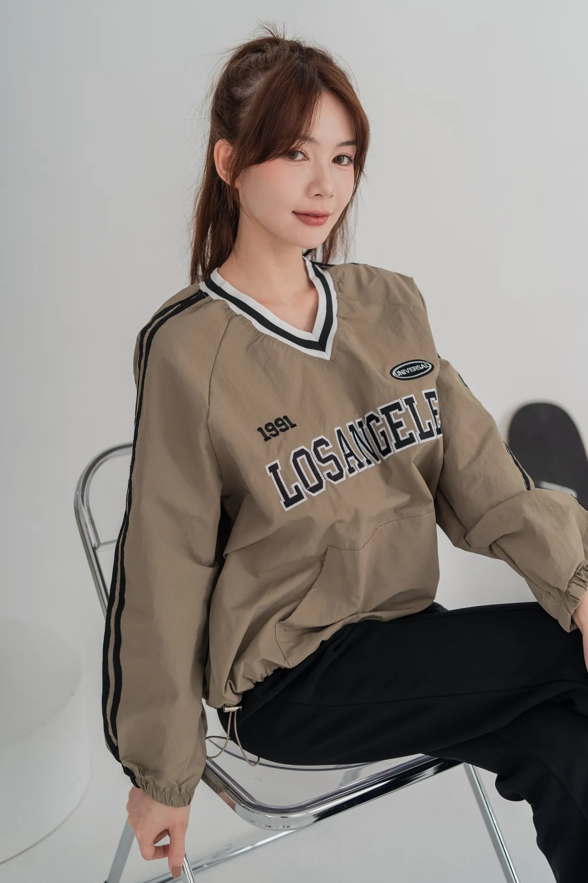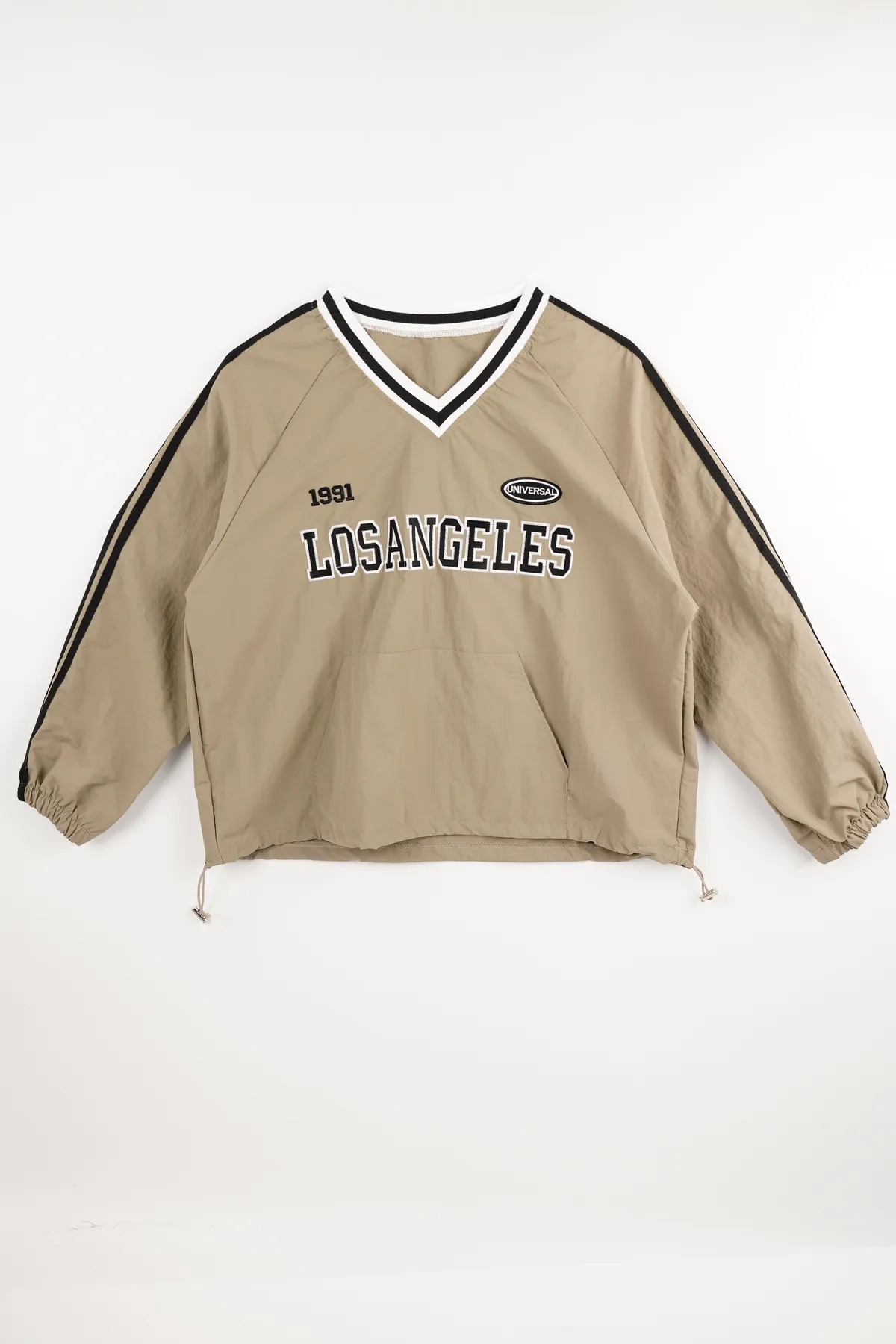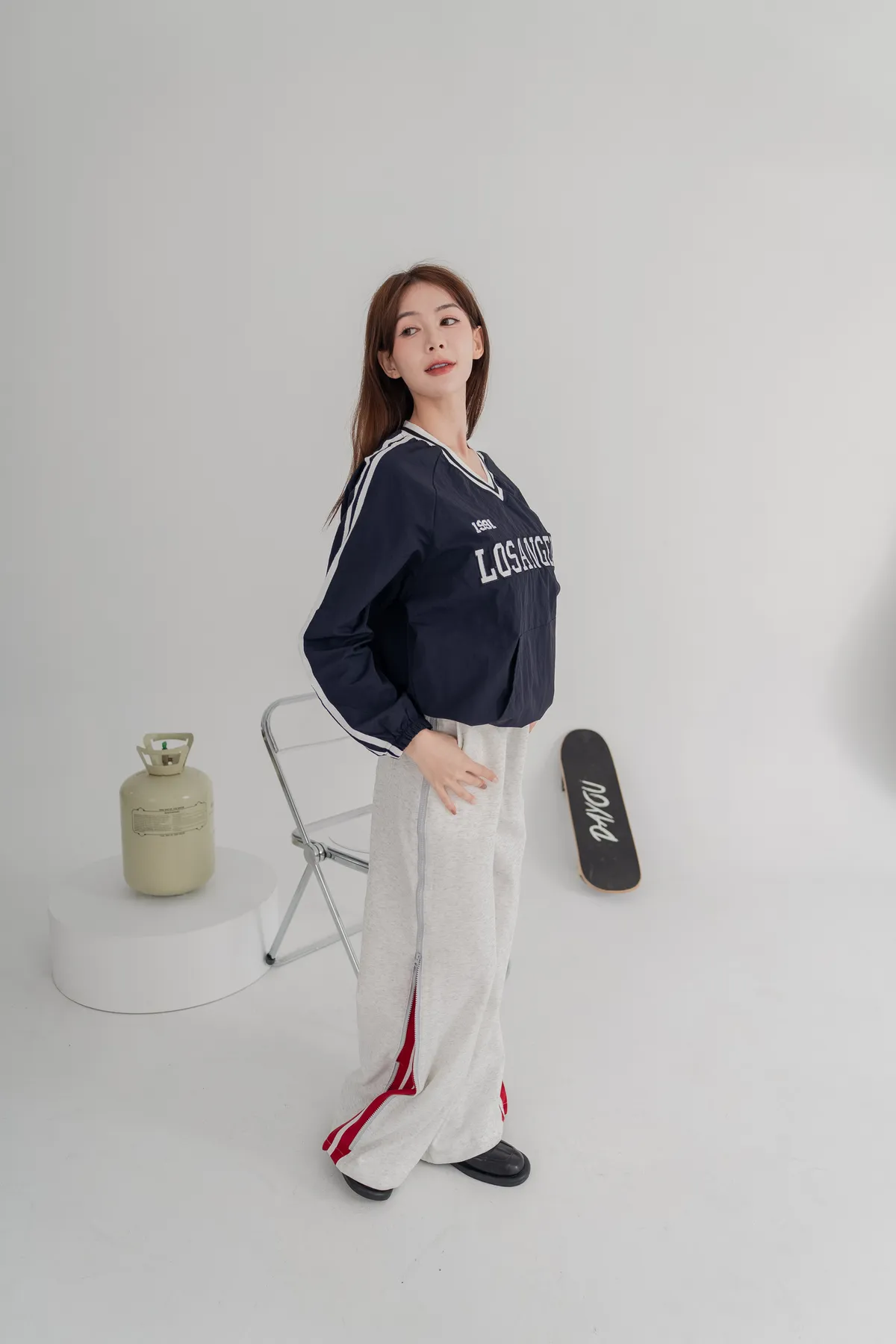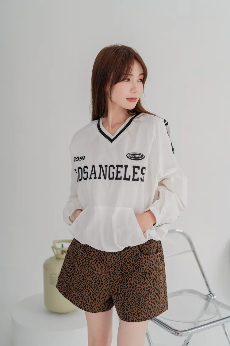 以美式學院風為靈感,這款上衣結合復古運動元素與俐落剪裁,胸前立體字母刺繡展現個性態度,V領撞色條紋設計修飾臉型與頸部線條,落肩版型與抽繩下擺設計,穿出自然的休閒輪廓。